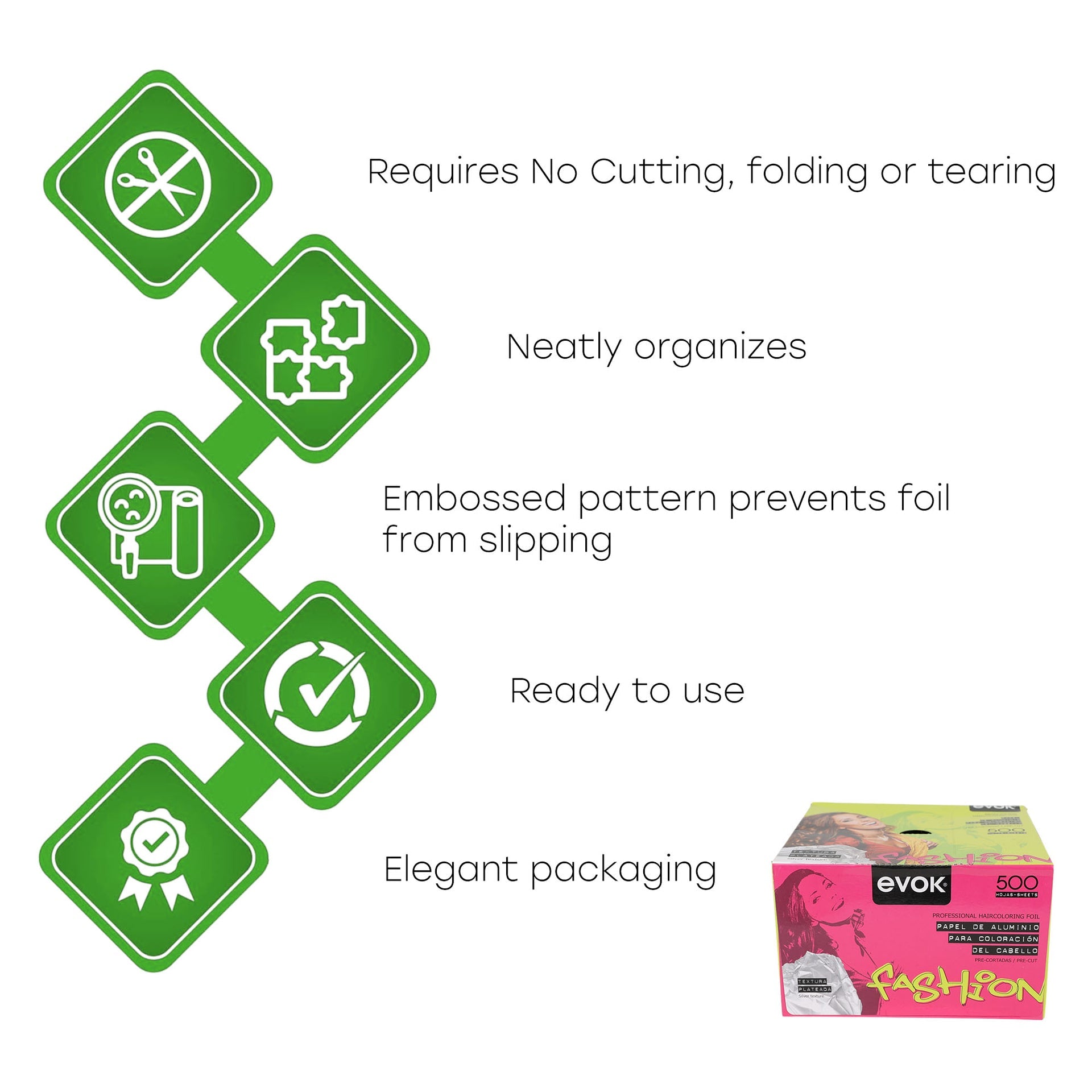Transform your colour application process with the Eson Evok Silver Texture Hair Foils, engineered specifically for professional salon use. The innovative embossed texture provides superior grip and prevents colour bleeding during processing, making these foils ideal for all highlighting and freehand techniques. Each sheet is precisely cut to generous 273x130mm dimensions, offering ample workspace for even the most ambitious colour projects. The professional-grade thickness ensures reliable performance and maintains integrity throughout the chemical process, whilst the textured surface prevents slippage and ensures precise placement.