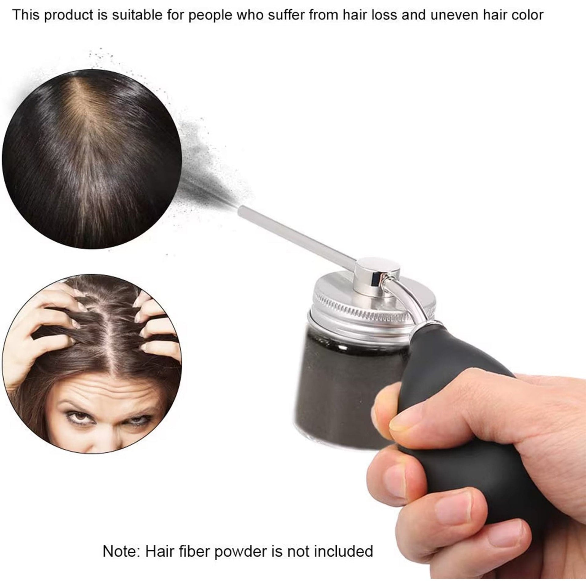 Perfect for professional hairstylists and individuals seeking precise application of hair fibres for coverage and volume enhancement. Ideal for both salon environments and personal grooming routines.