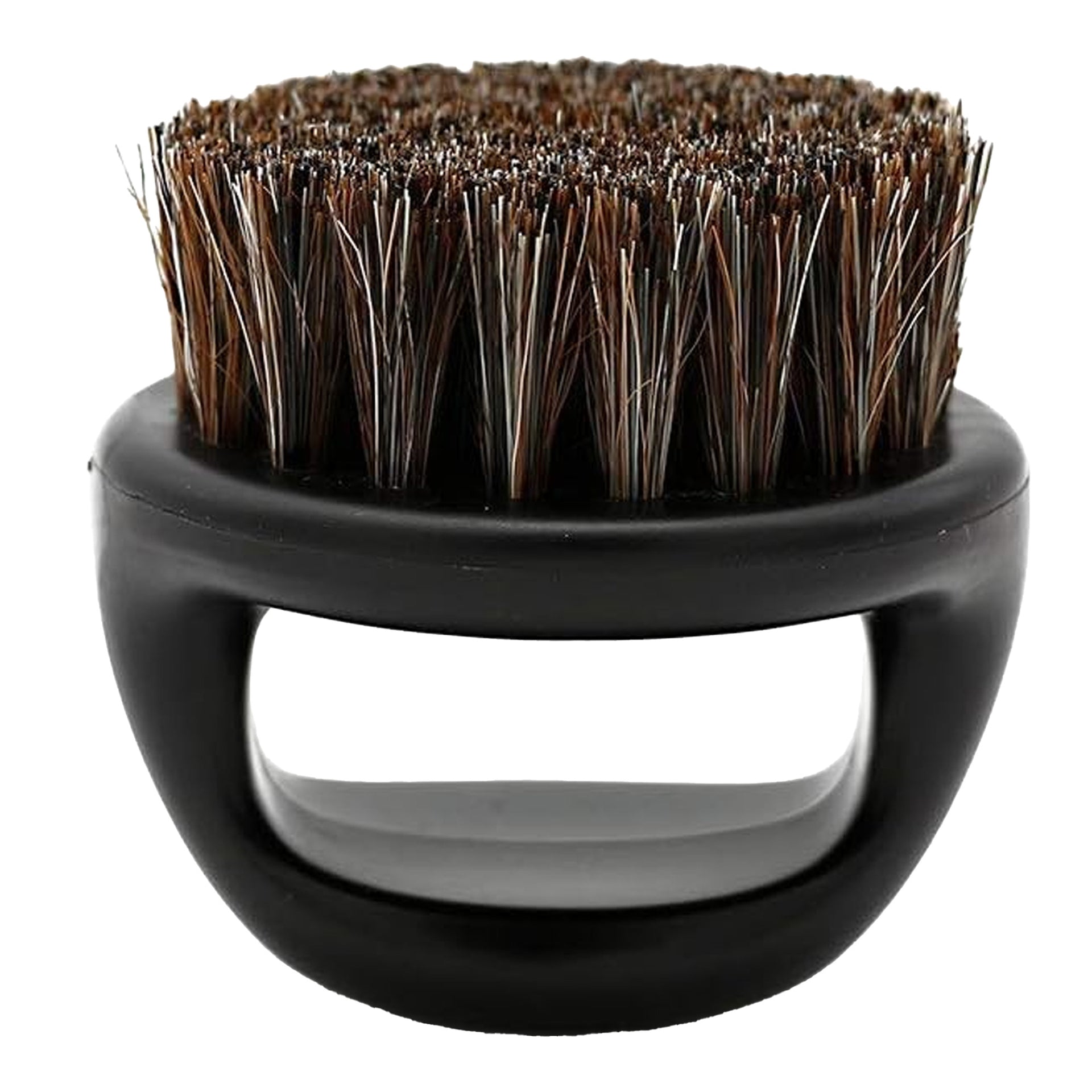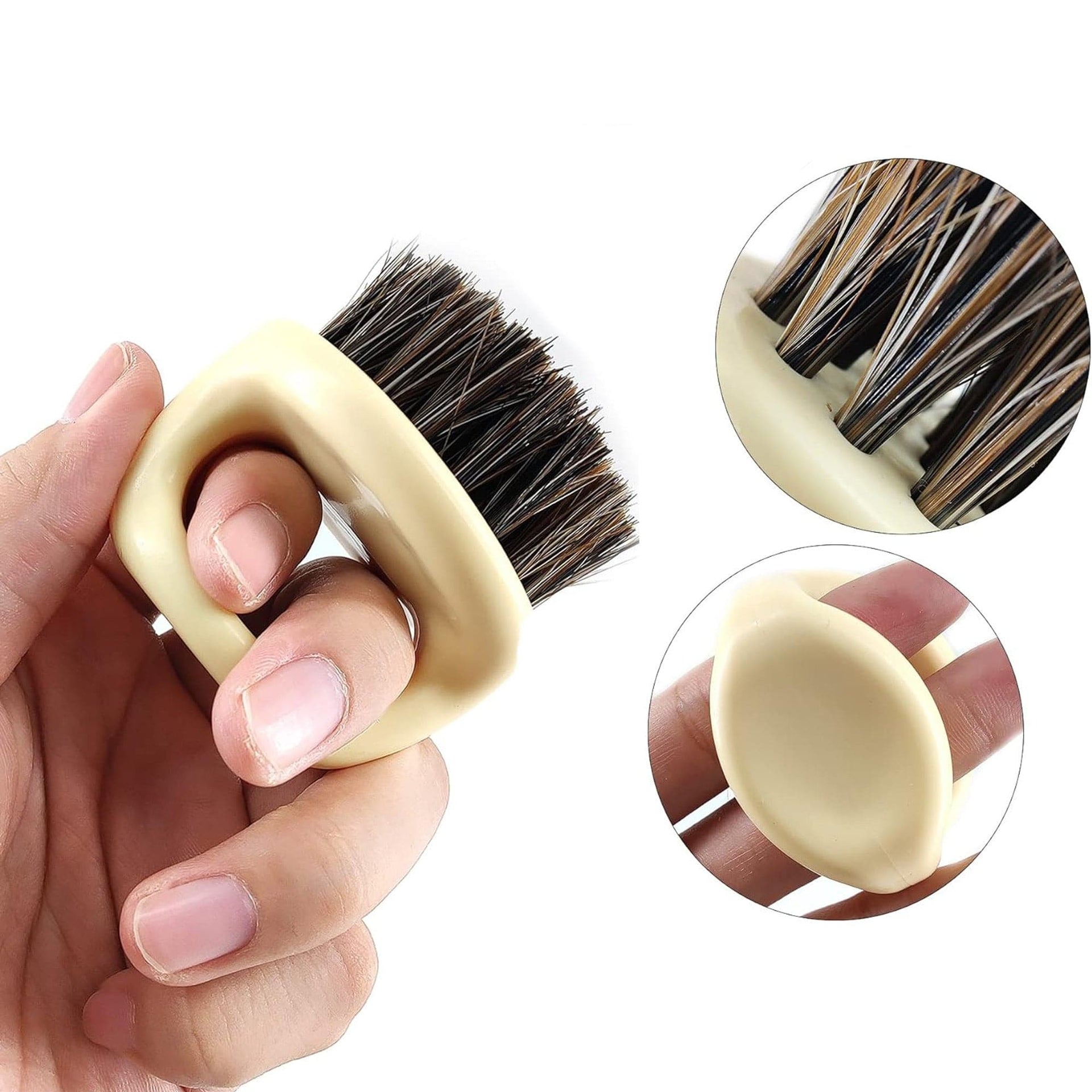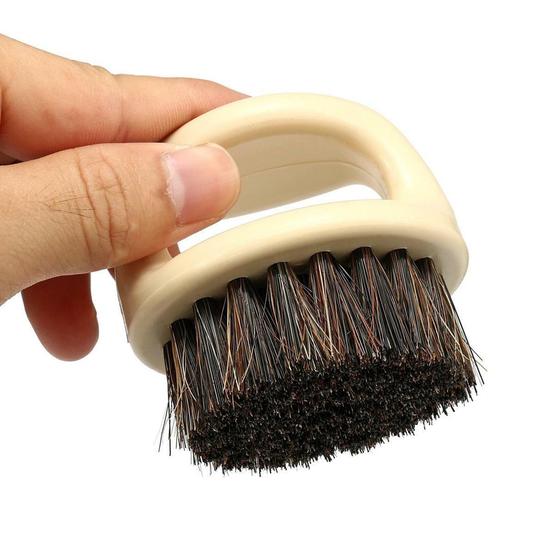 Introducing the ultimate tool for maintaining a well-groomed beard, the Eson - Finger Beard Brush 6x6cm. This grooming accessory features an innovative and ergonomic design that fits perfectly over your fingers, offering unparalleled control and precision for detailed styling. Its compact size makes it an ideal companion for both home and travel, ensuring you can keep your beard looking its best wherever you are. The soft yet effective 100% horsehair bristles are perfect for detangling and softening facial hair, helping to promote an even growth pattern.