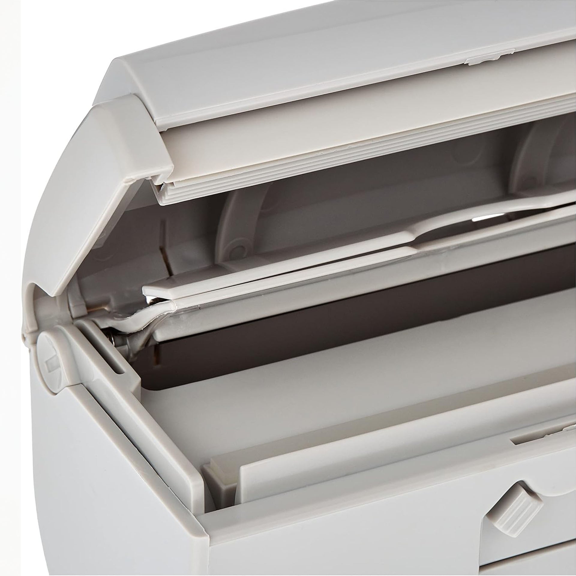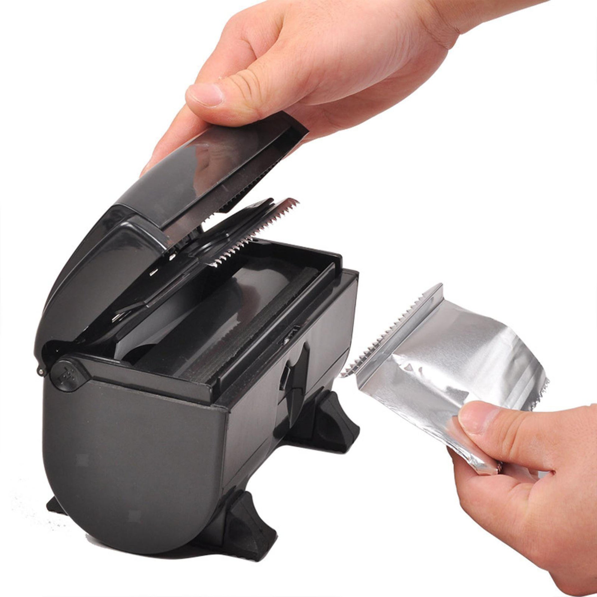 Load foil roll into dispenser, pull to desired length, and press cutting lid down firmly to create perfectly sized sheets with ready-made folds.