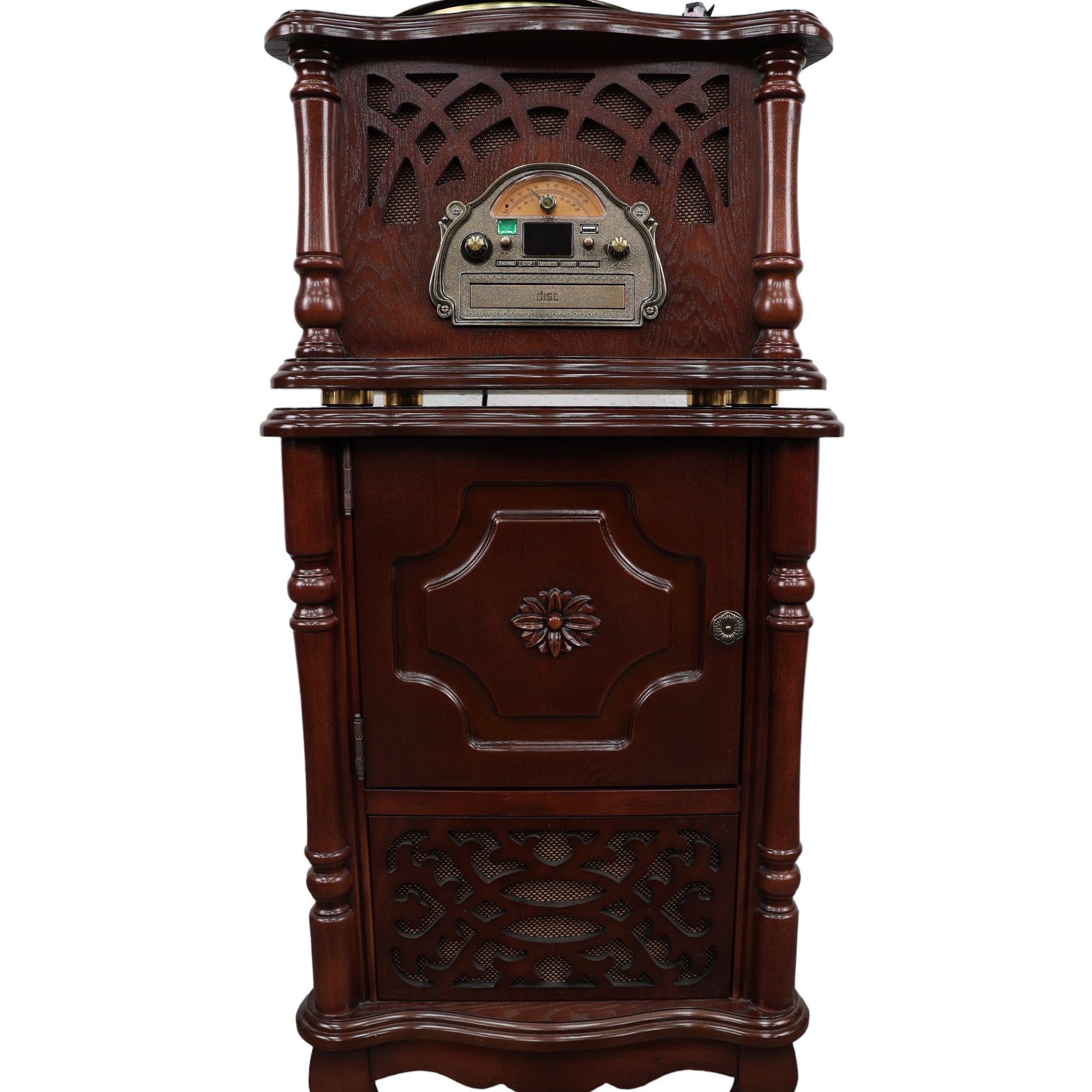 - Dual-speed phonograph supporting 33/45 RPM and compatible with multiple record formats.