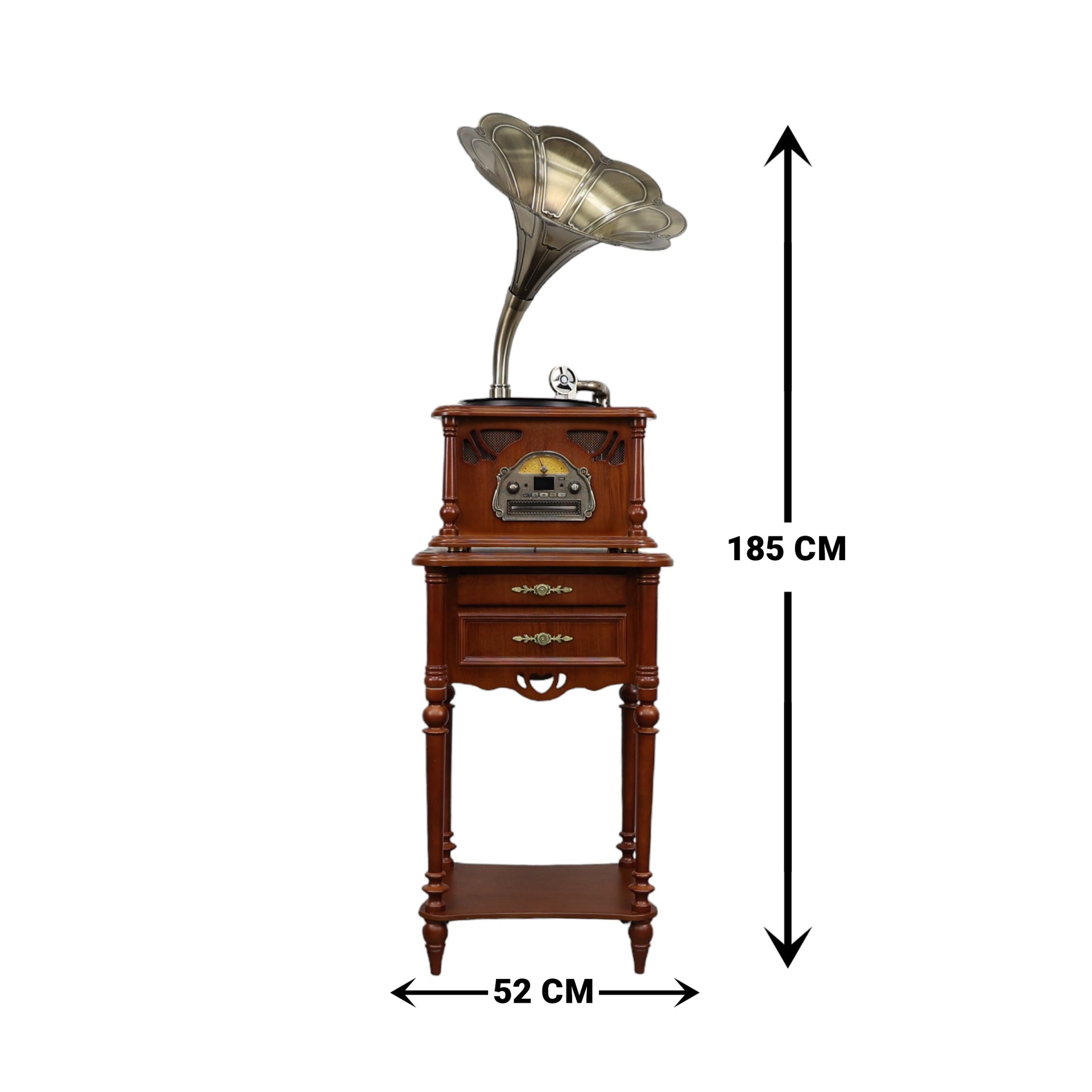 The Eson - Gramophone Speaker Wireless Remote Control Wooden Shelf 185cm is ideal for vintage decor enthusiasts, music lovers, and anyone looking to add a touch of elegance and history to their home. It’s perfect for living rooms, bedrooms, studies, or any space that can benefit from a classic and sophisticated audio device.