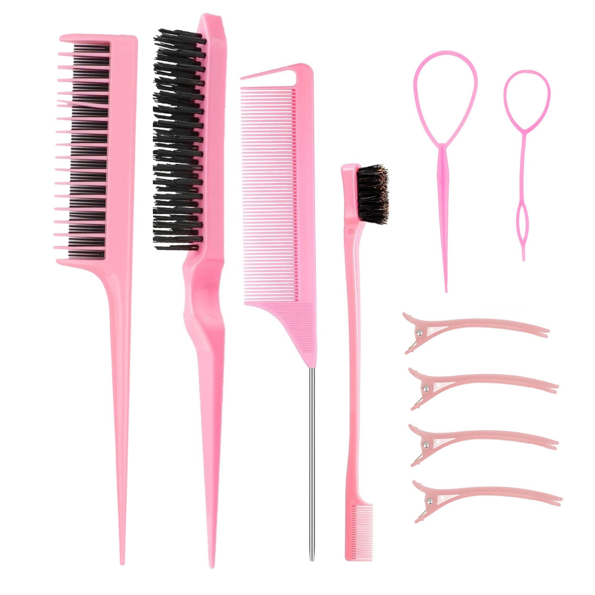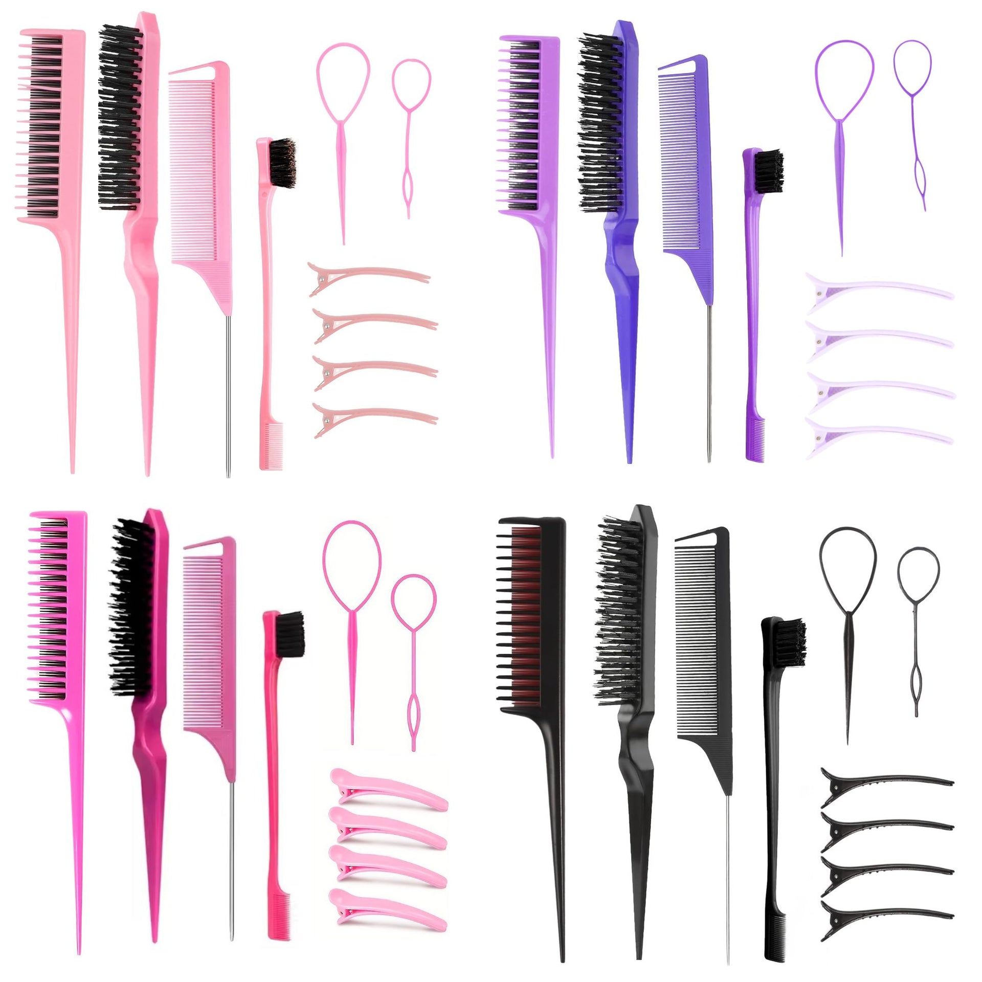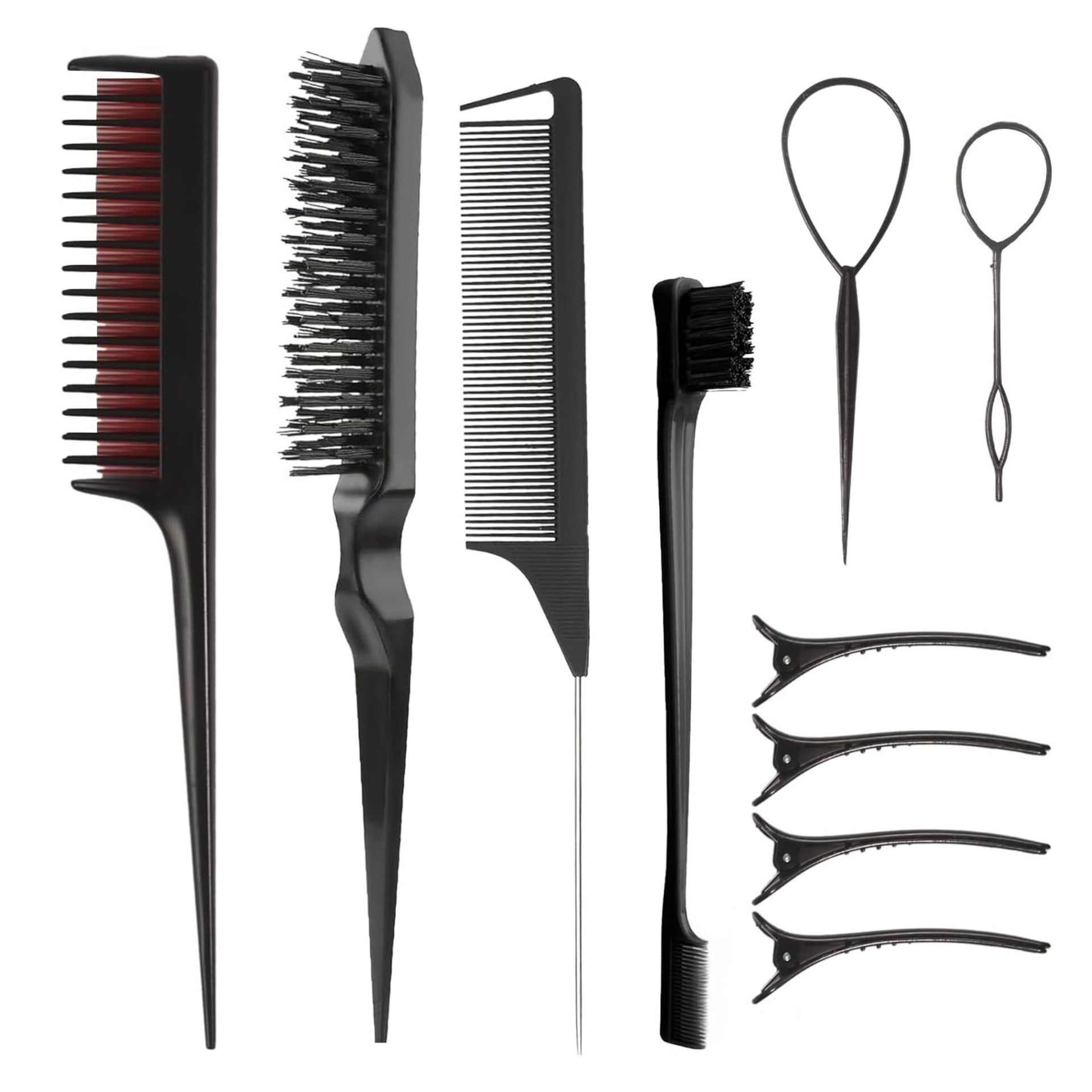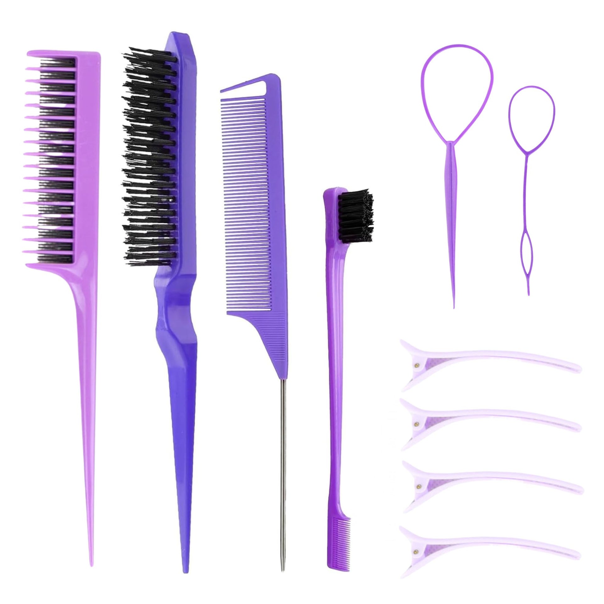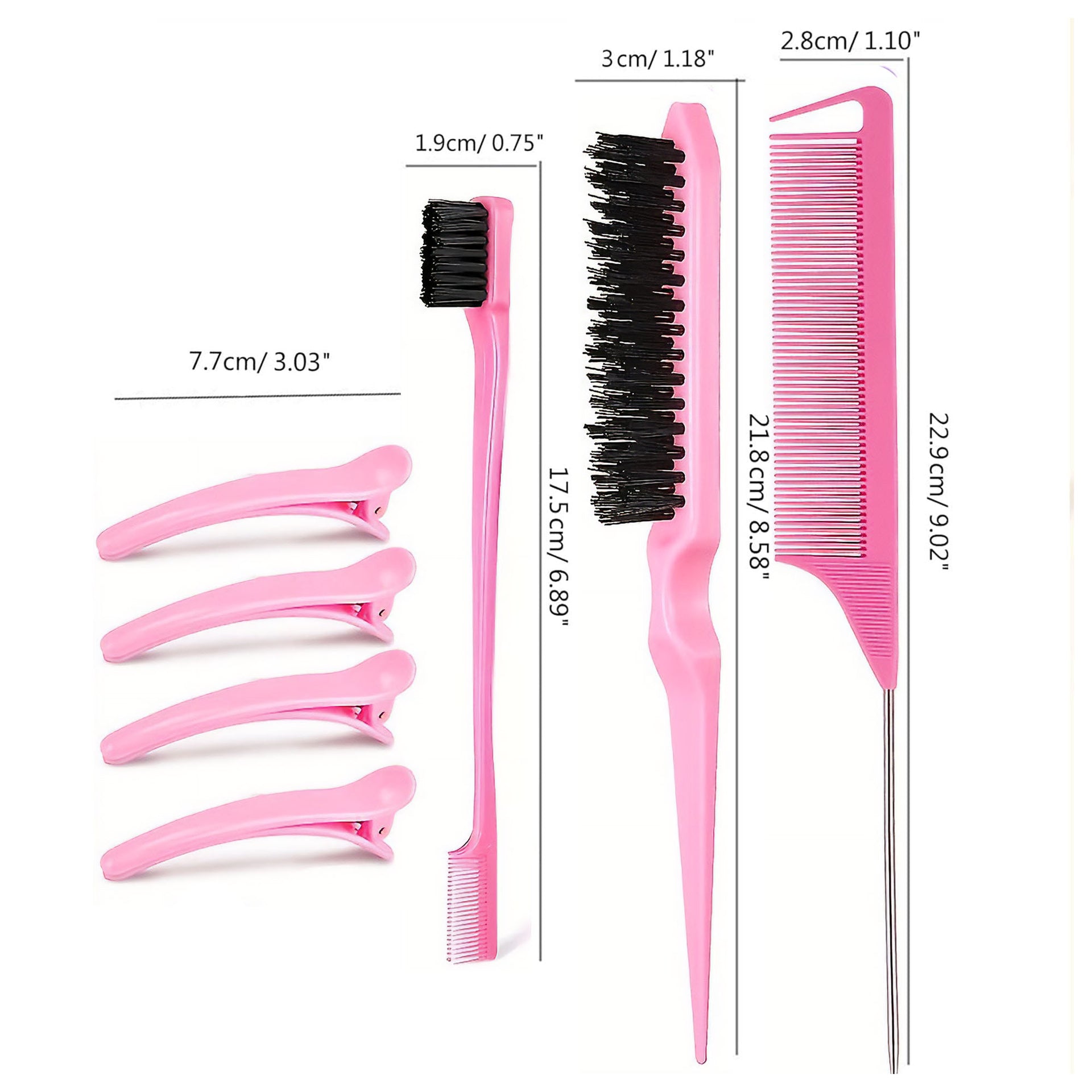[Tail Comb] Use for precise partings and detailed work. [Edge Brush] Perfect for smoothing and defining edges. [Sectioning Clips] Secure hair sections for controlled styling.