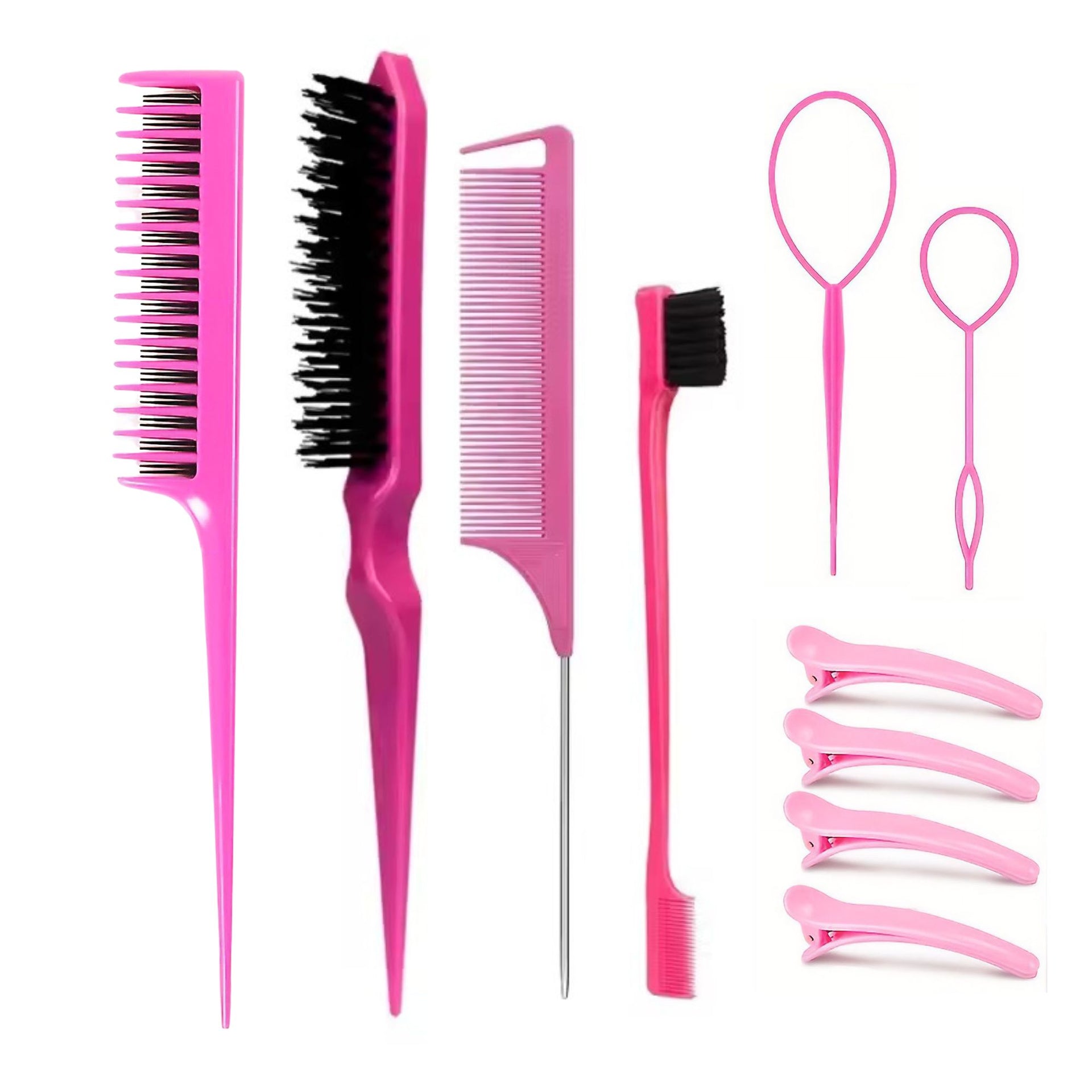 Transform your styling routine with the Eson Hair Styling Set, a comprehensive 10-piece collection designed for professional-quality hair care and styling. The Professional Styling Kit includes precision-engineered combs and sturdy sectioning clips, each crafted to meet diverse styling needs from detailed edge work to comprehensive sectioning. Available in four sophisticated colours (Pink, Purple, Fuchsia, Black), this versatile set combines functionality with style to enhance your hair care arsenal.