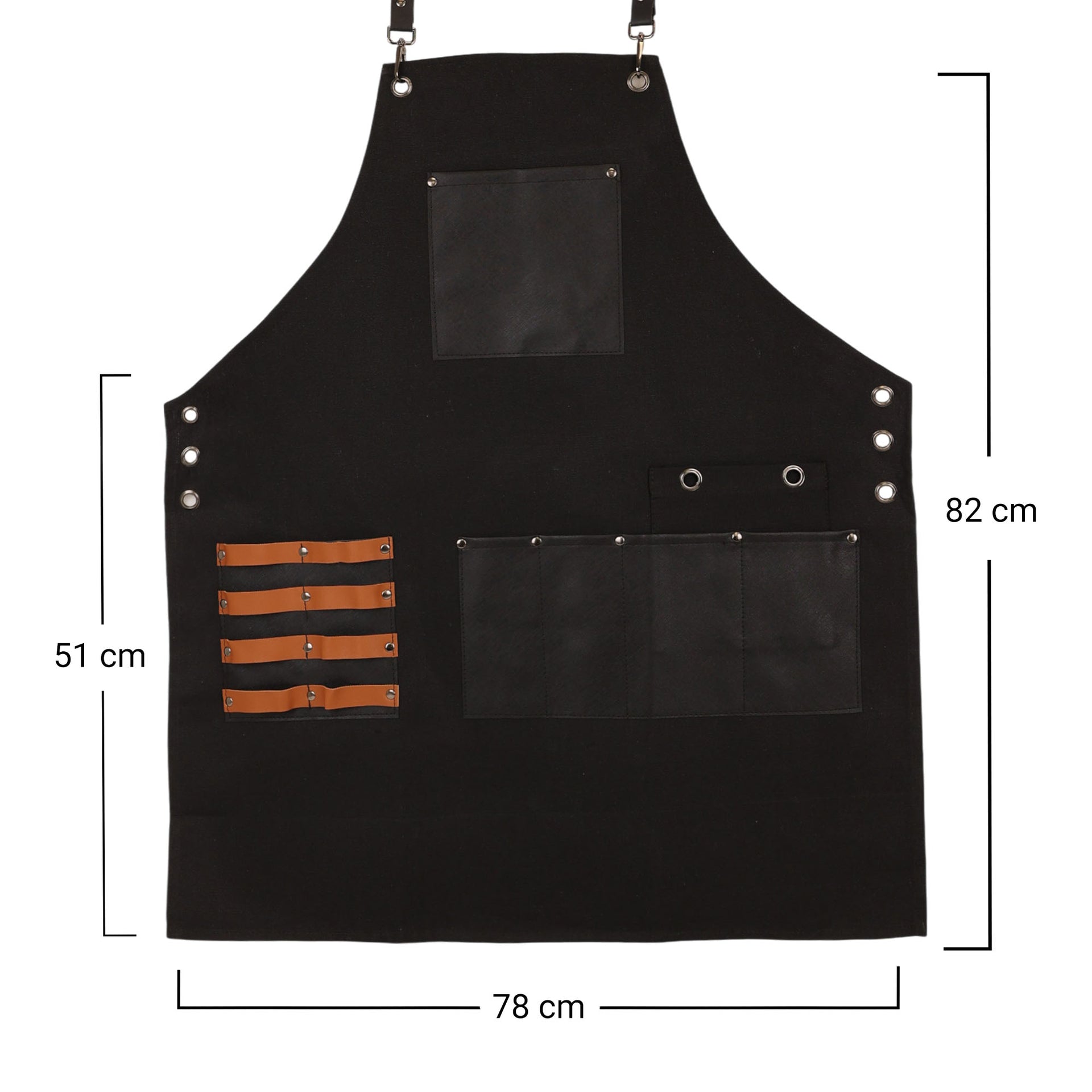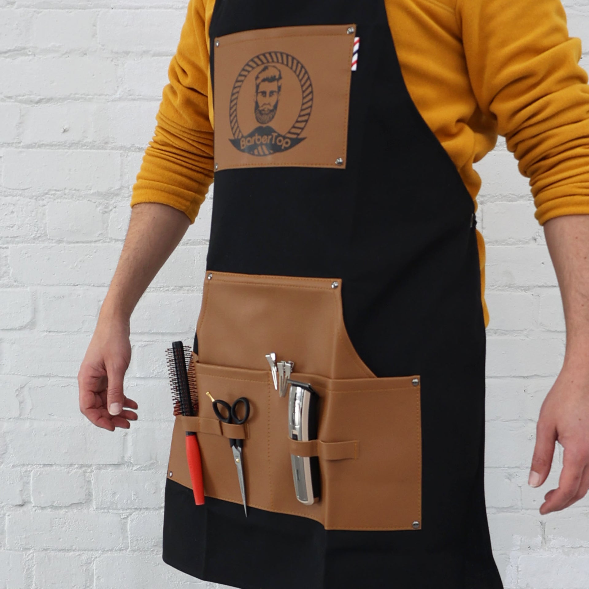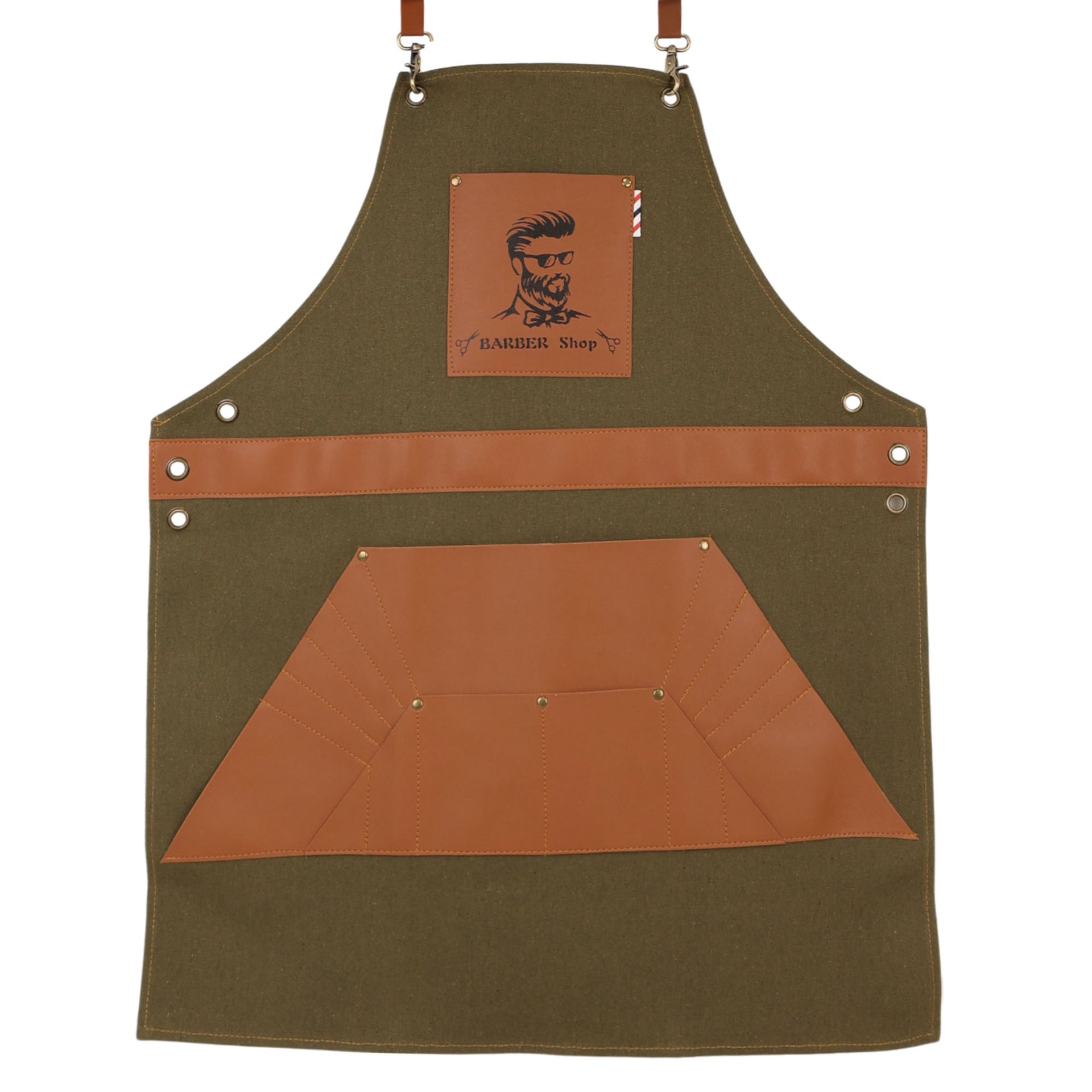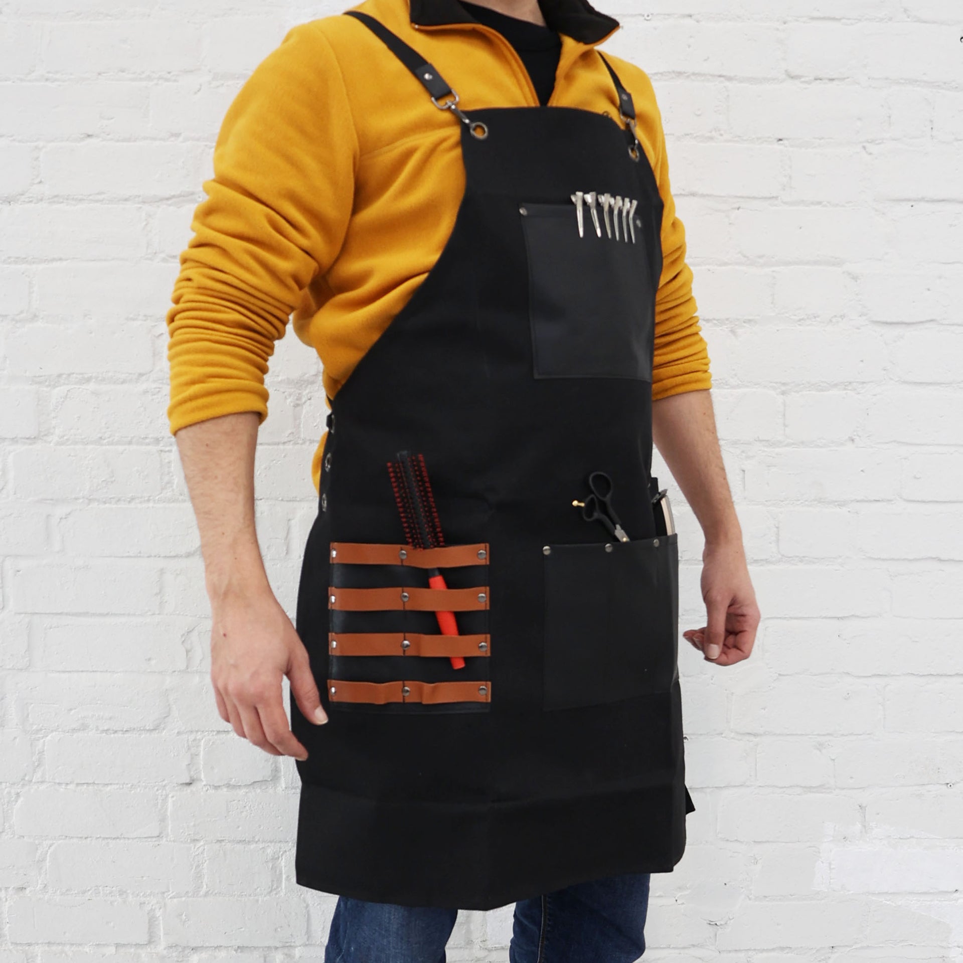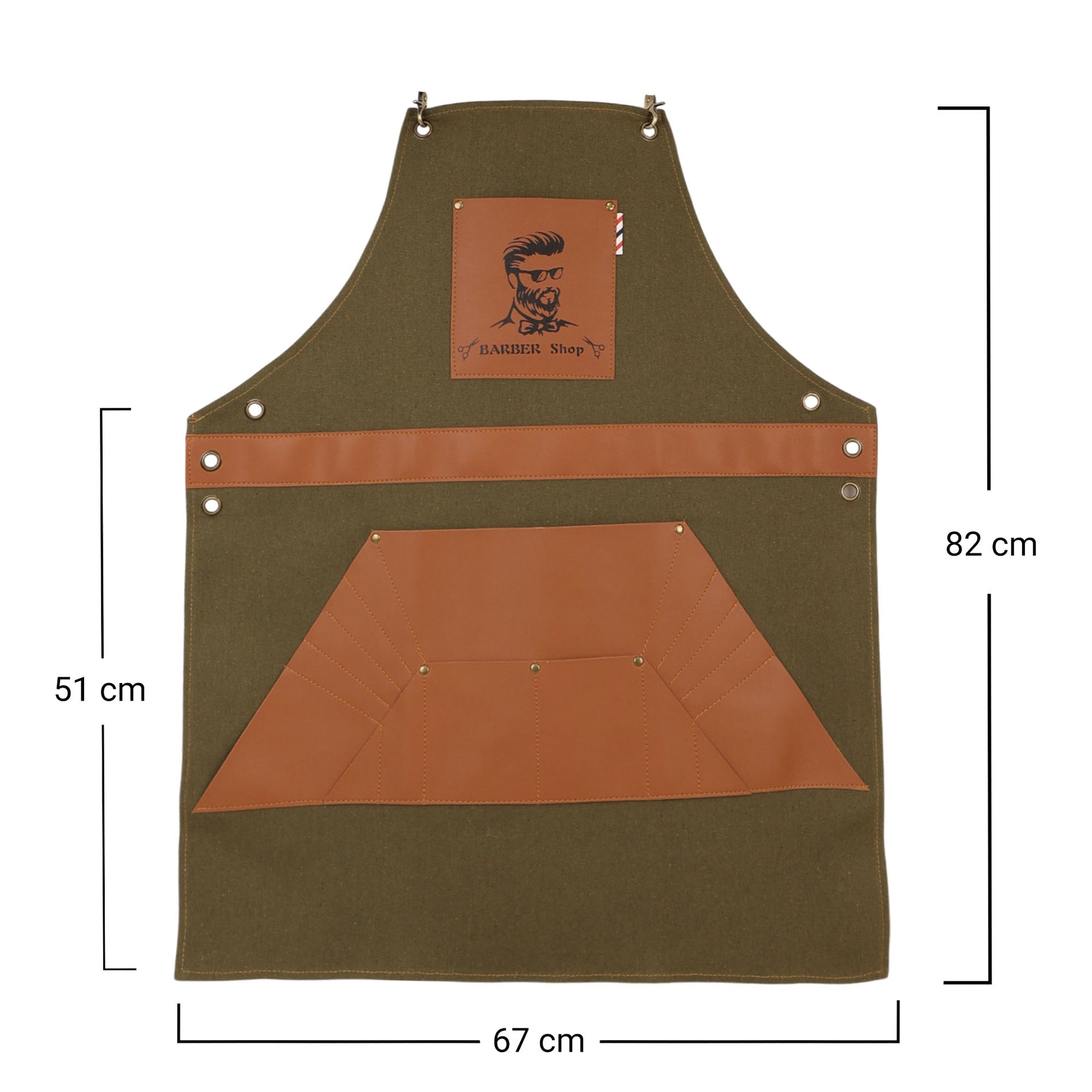 Perfect for professional barbers, hairstylists, and craftspeople seeking a premium-quality apron that combines style with practical functionality.