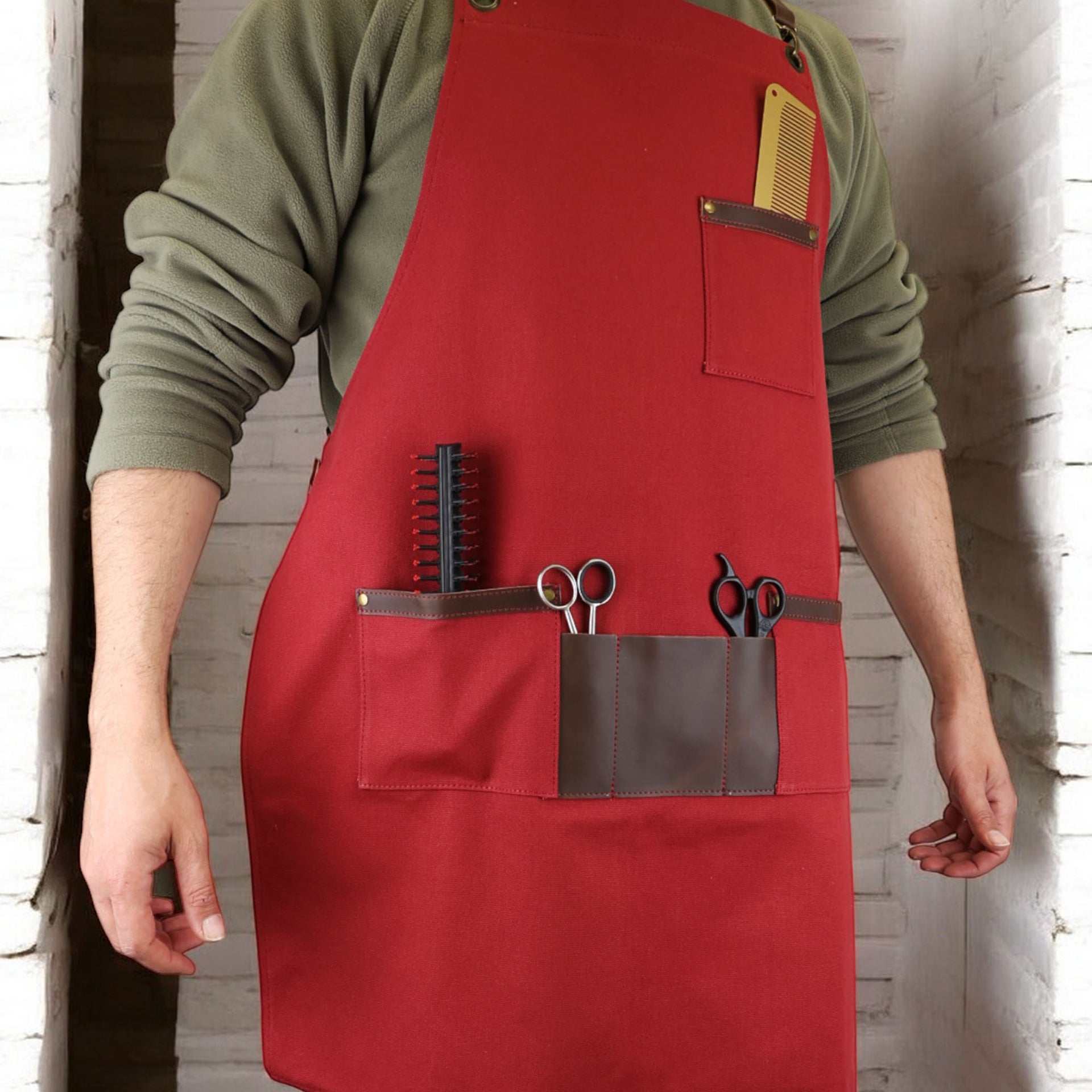 Perfect for professional hairstylists and barbers seeking a premium-quality apron that combines luxury materials with practical functionality.