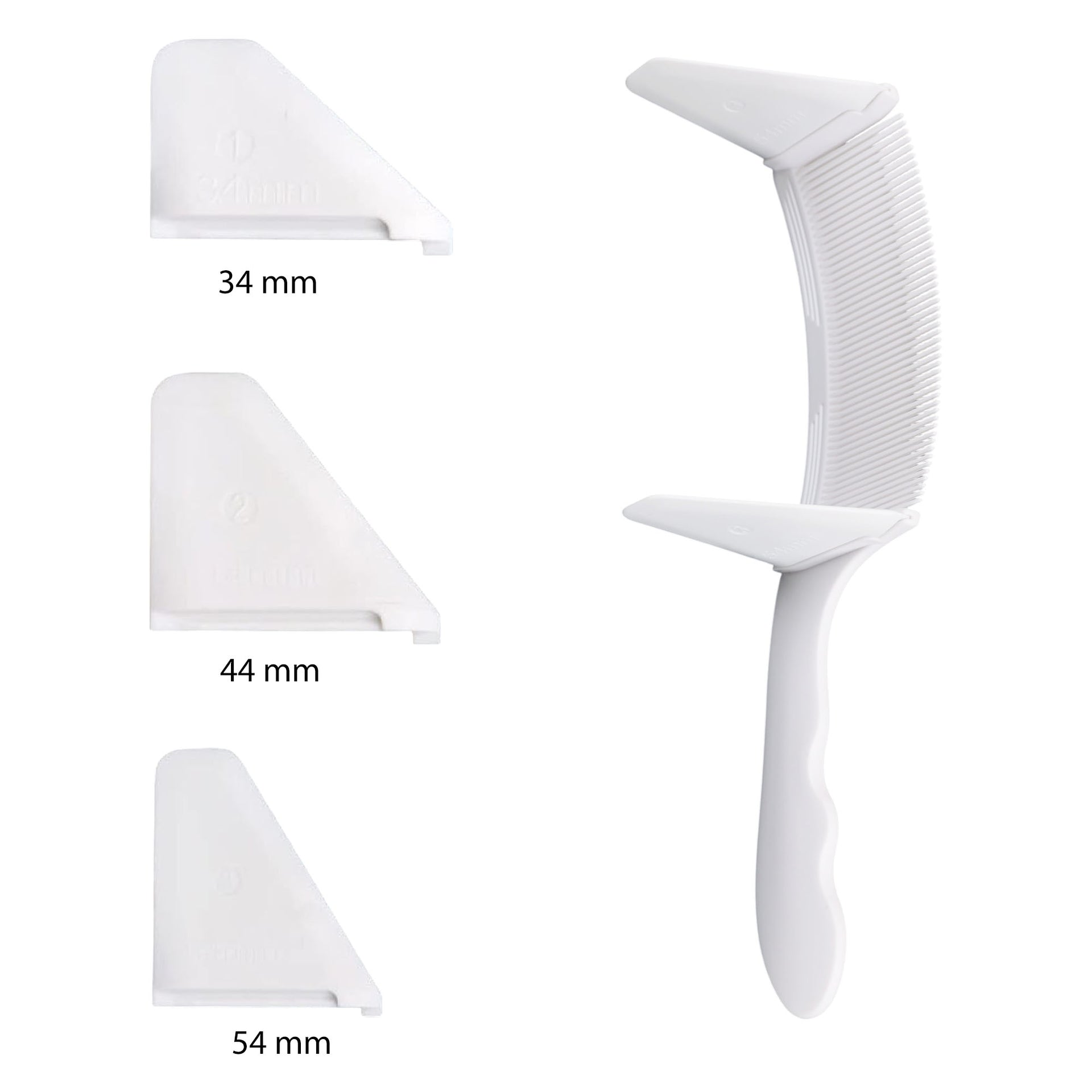 Transform your cutting technique with the Eson Professional Cutting Comb, featuring innovative three-tier measurement guides at 34mm, 44mm, and 54mm for precise sectioning and cutting. The ergonomically designed Precision Guide Comb combines professional-grade durability with exceptional control, making it an essential tool for creating precise, consistent cuts. Each tooth is expertly engineered to glide smoothly through hair whilst maintaining perfect tension for superior control.