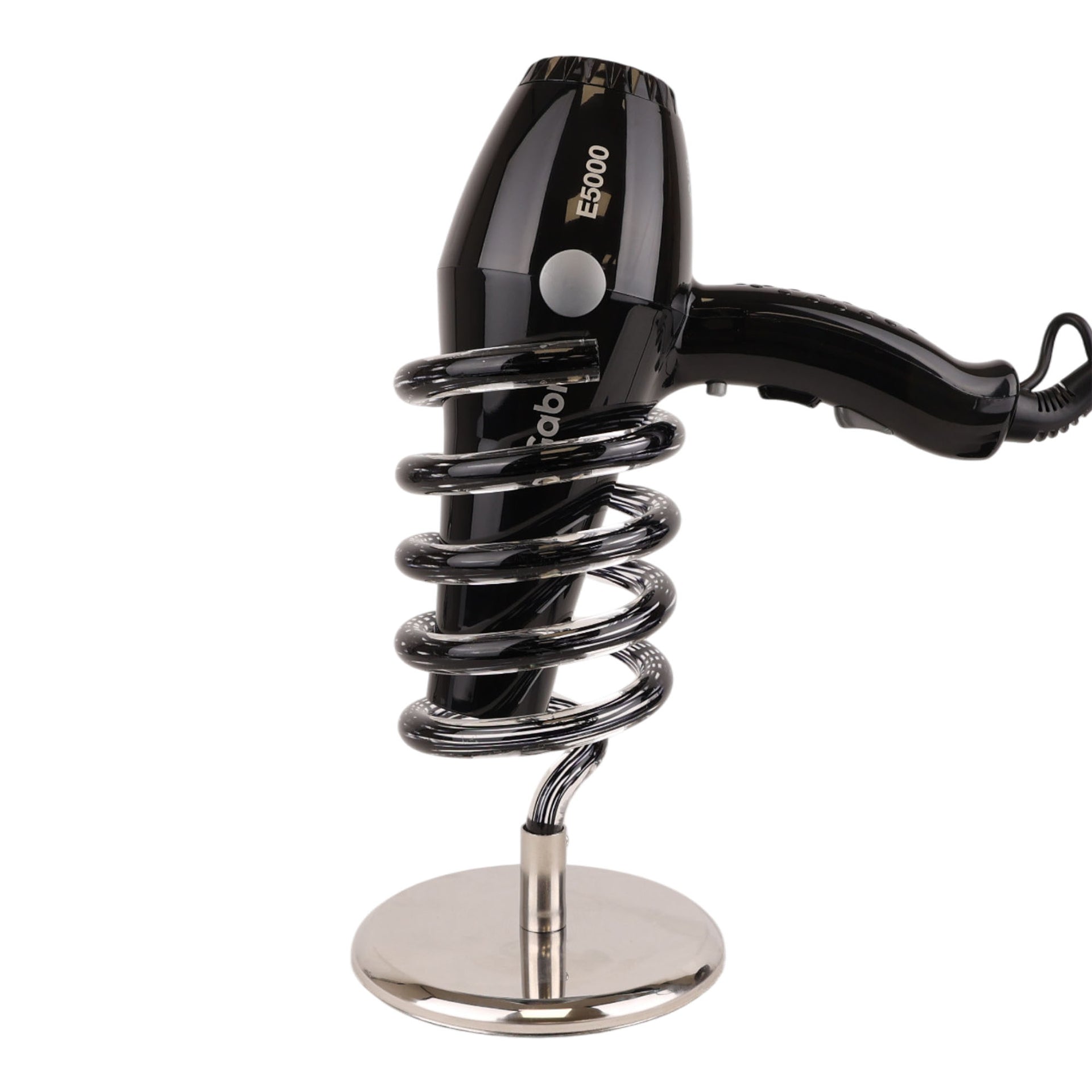 Enhance your styling setup with the Eson Hair Dryer Stand, a professional desktop holder designed to keep your hair dryer securely positioned on your styling station. The professional-grade design features a sturdy metal base that provides excellent stability, paired with a solid acrylic spiral holder that keeps your hair dryer in place at your desired angle. This essential styling accessory helps organise your workspace by providing a dedicated spot for your hair dryer, making it perfect for both professional salons and home styling stations.