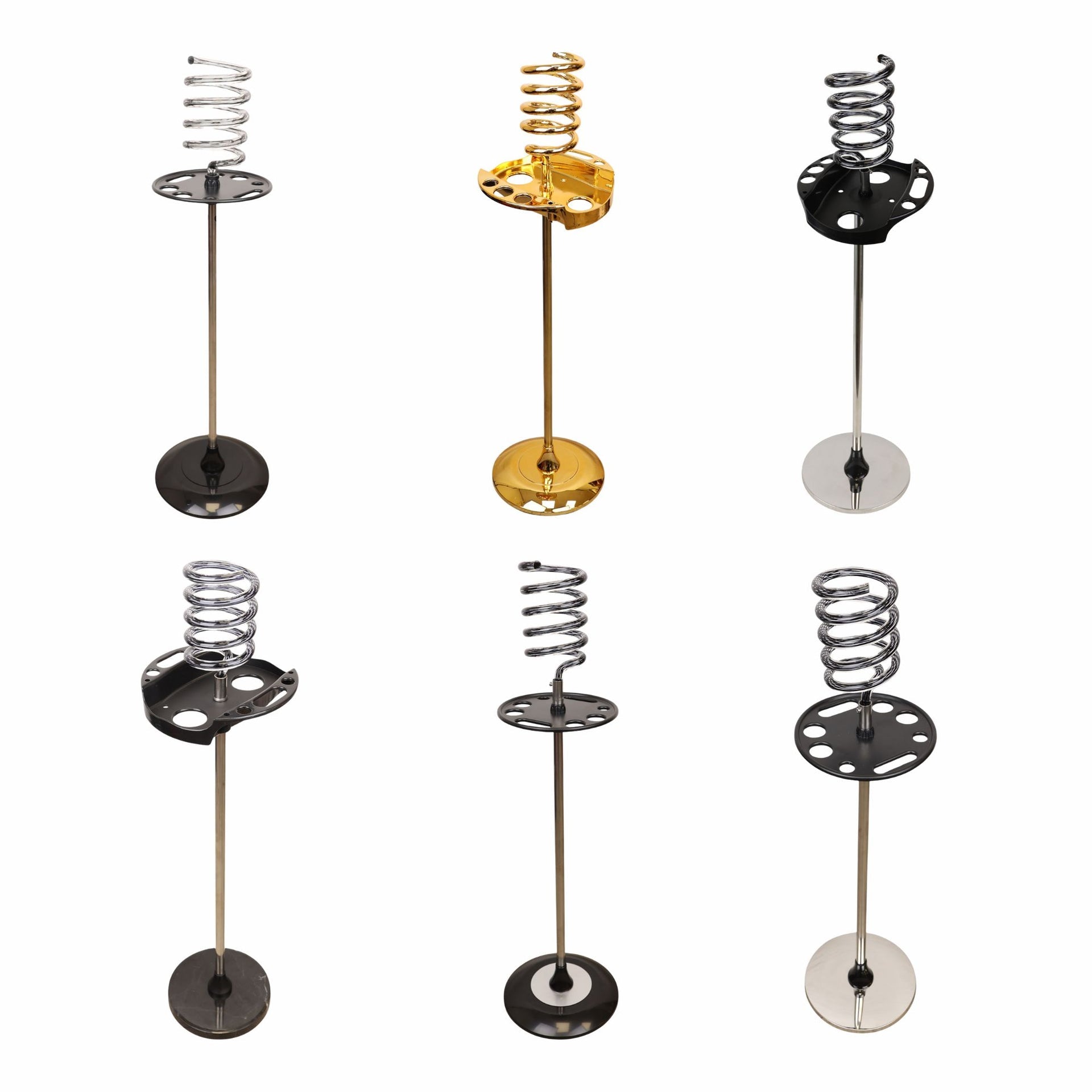 Position stand in desired location ensuring stable footing, adjust height if applicable, place styling tools in designated holders. (Gold/Silver variants: Clean with soft, dry cloth) (Black variants: Suitable for damp cloth cleaning)