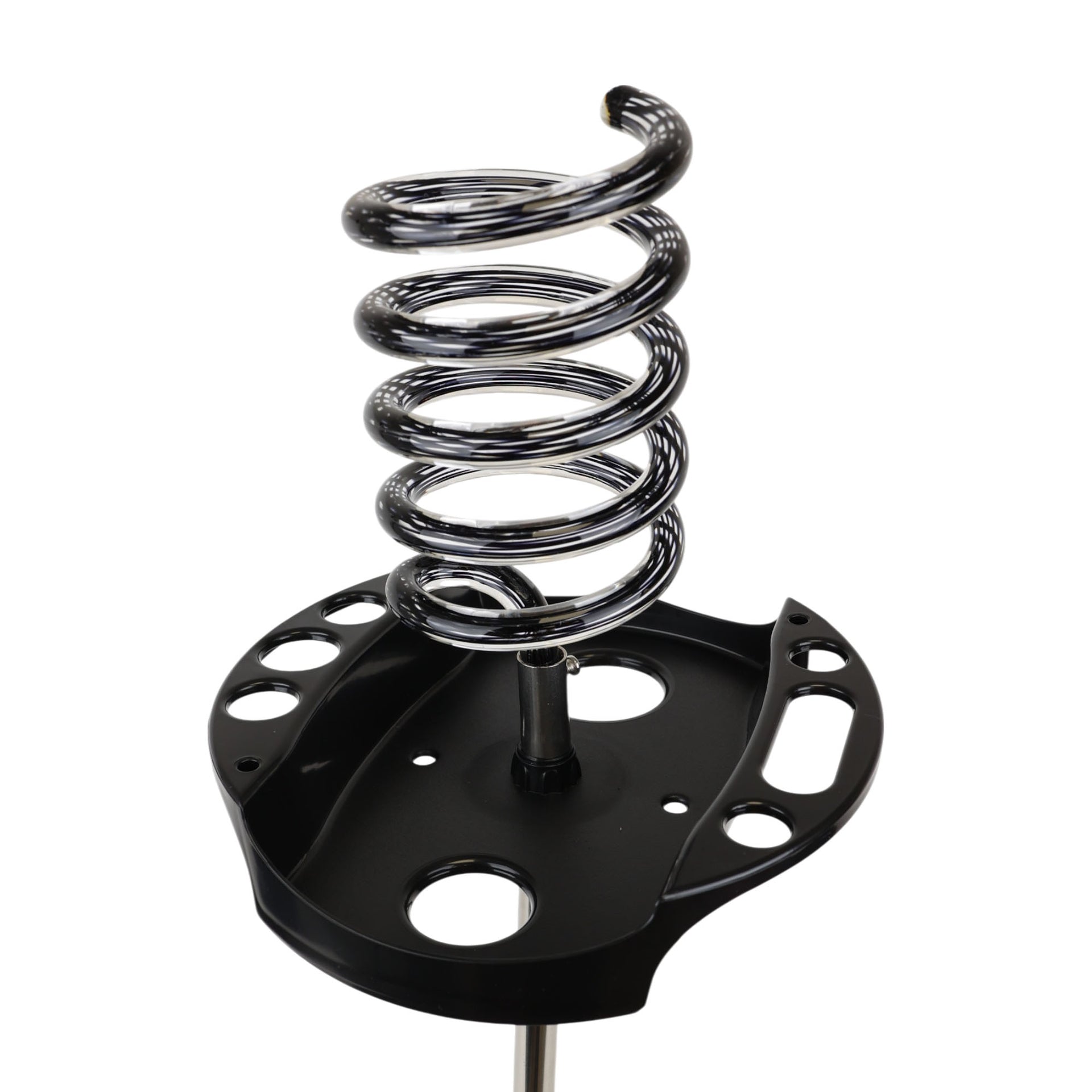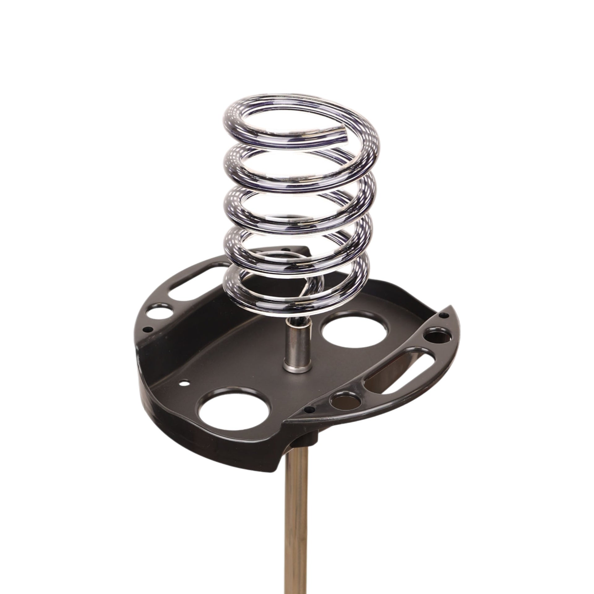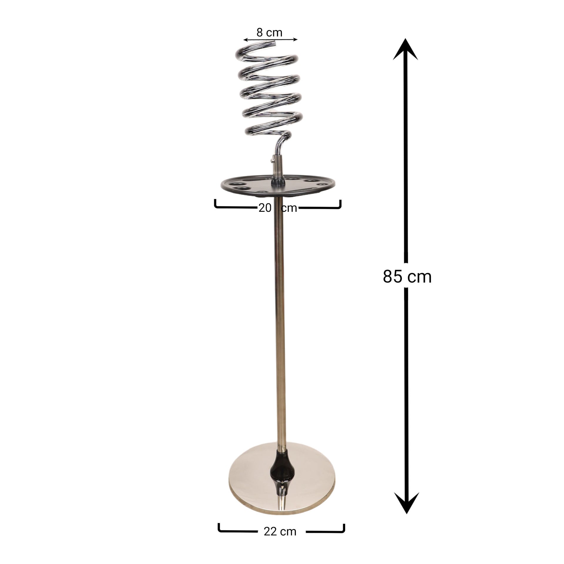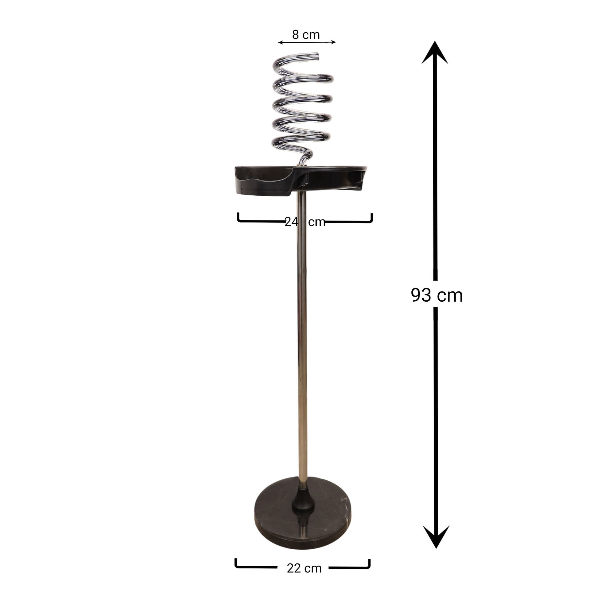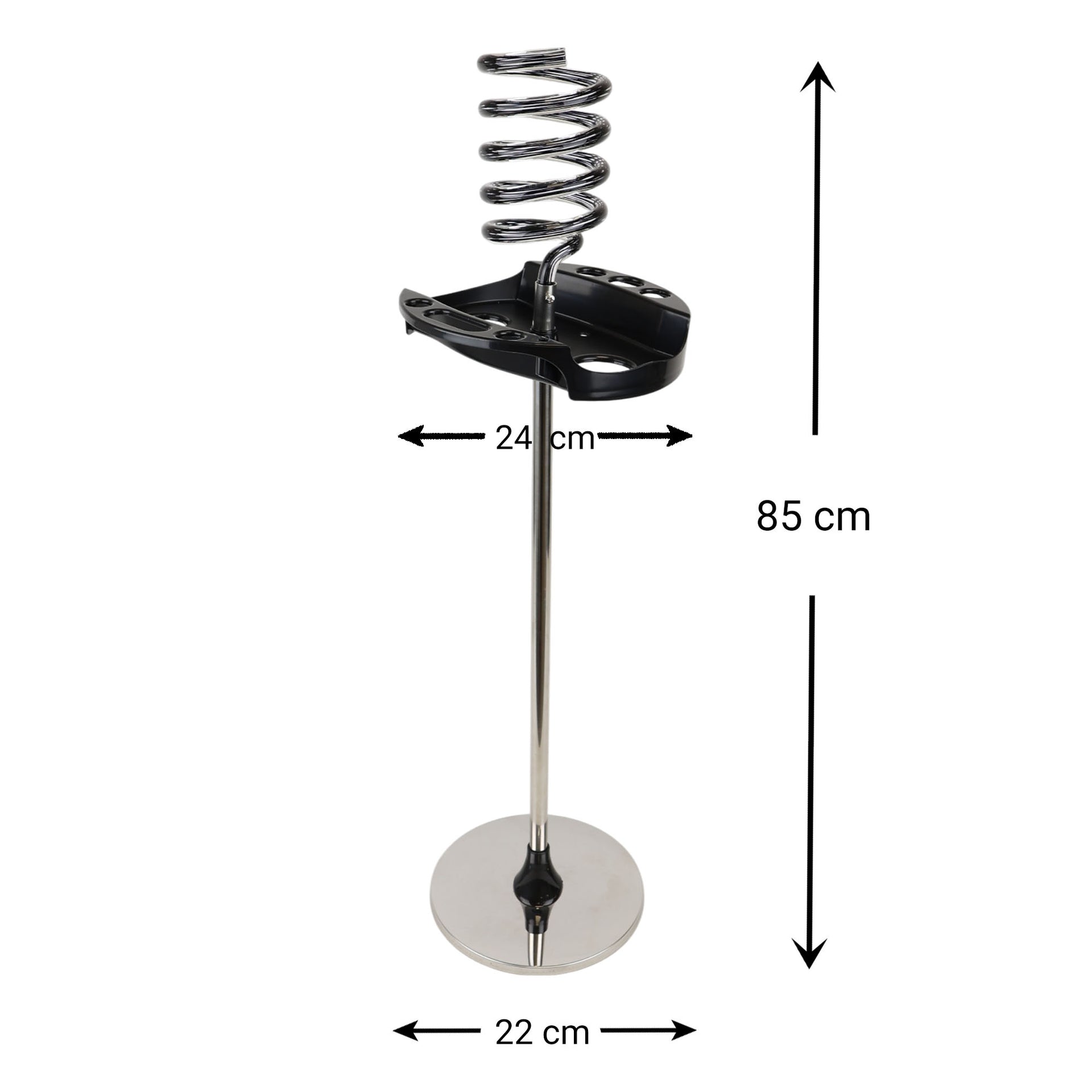 Elevate your styling workspace with the Eson Professional Floor Stand, a full-height solution that brings both functionality and sophistication to your salon environment. Available in varying heights from 83.5cm to 93cm, this premium stand features a professional-grade spiral holder mounted atop a sleek column design. The innovative multi-compartment tray system offers dedicated storage for styling essentials, while the robust construction ensures unwavering stability during use. Choose from luxurious finishes including gold, silver, and classic black to perfectly complement your salon's aesthetic.