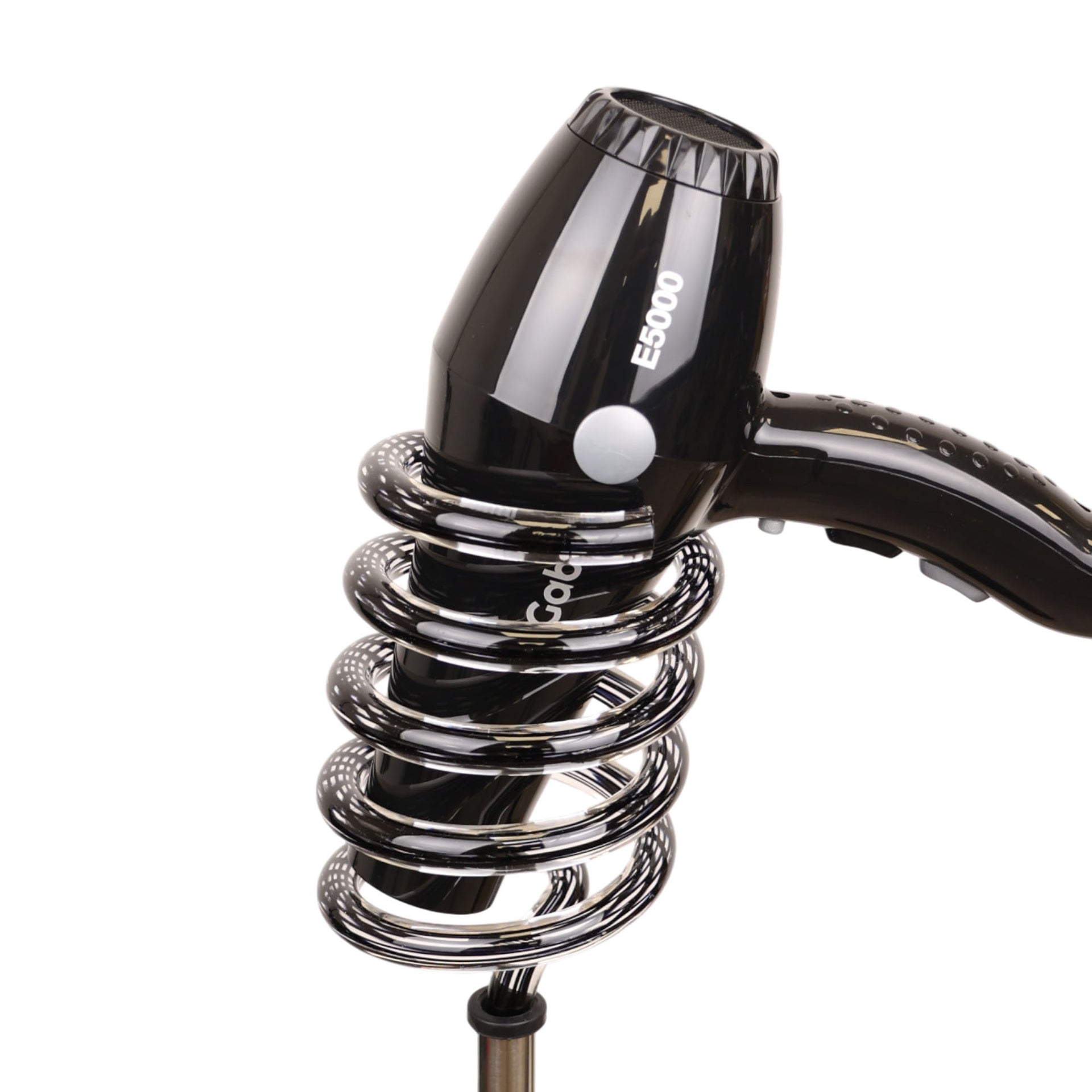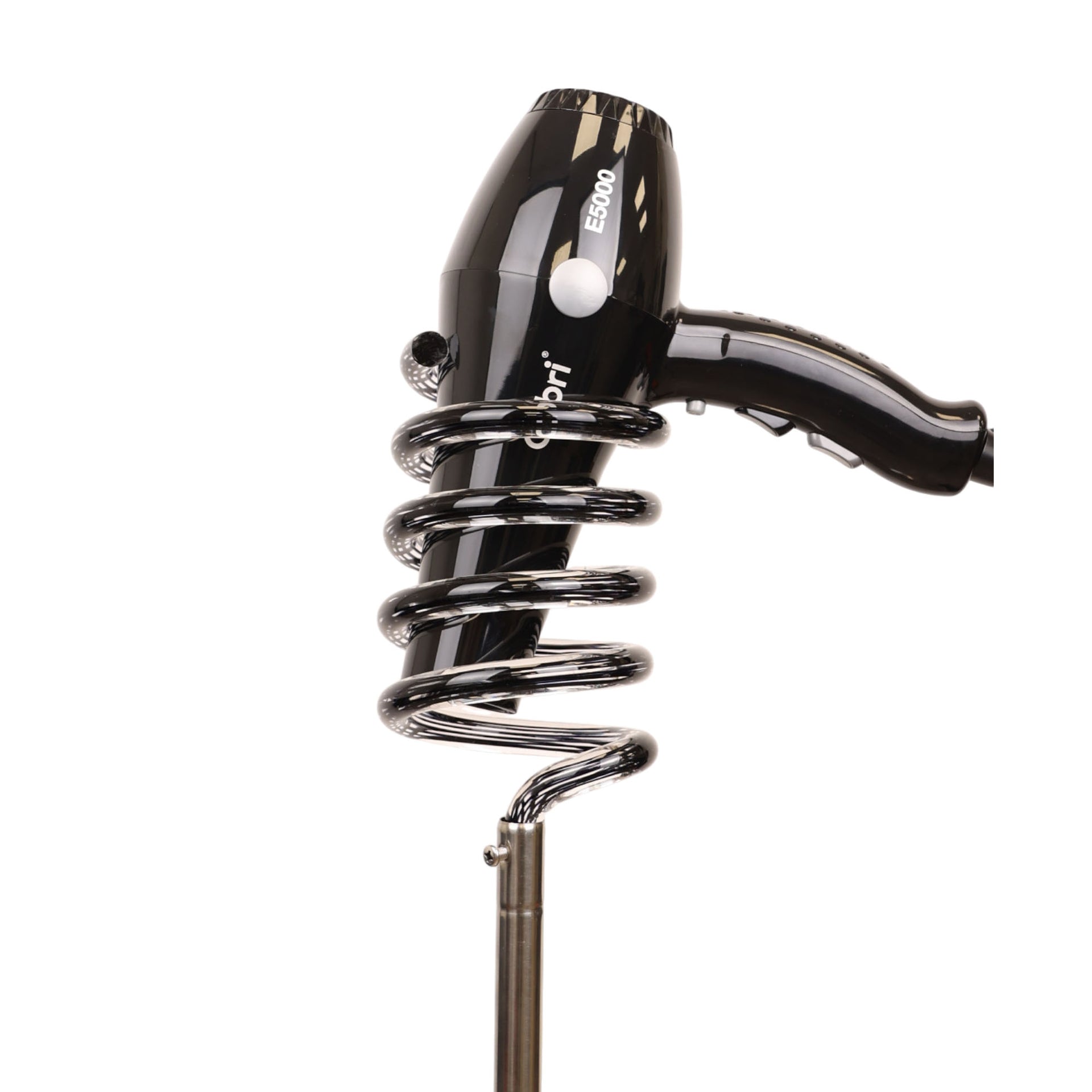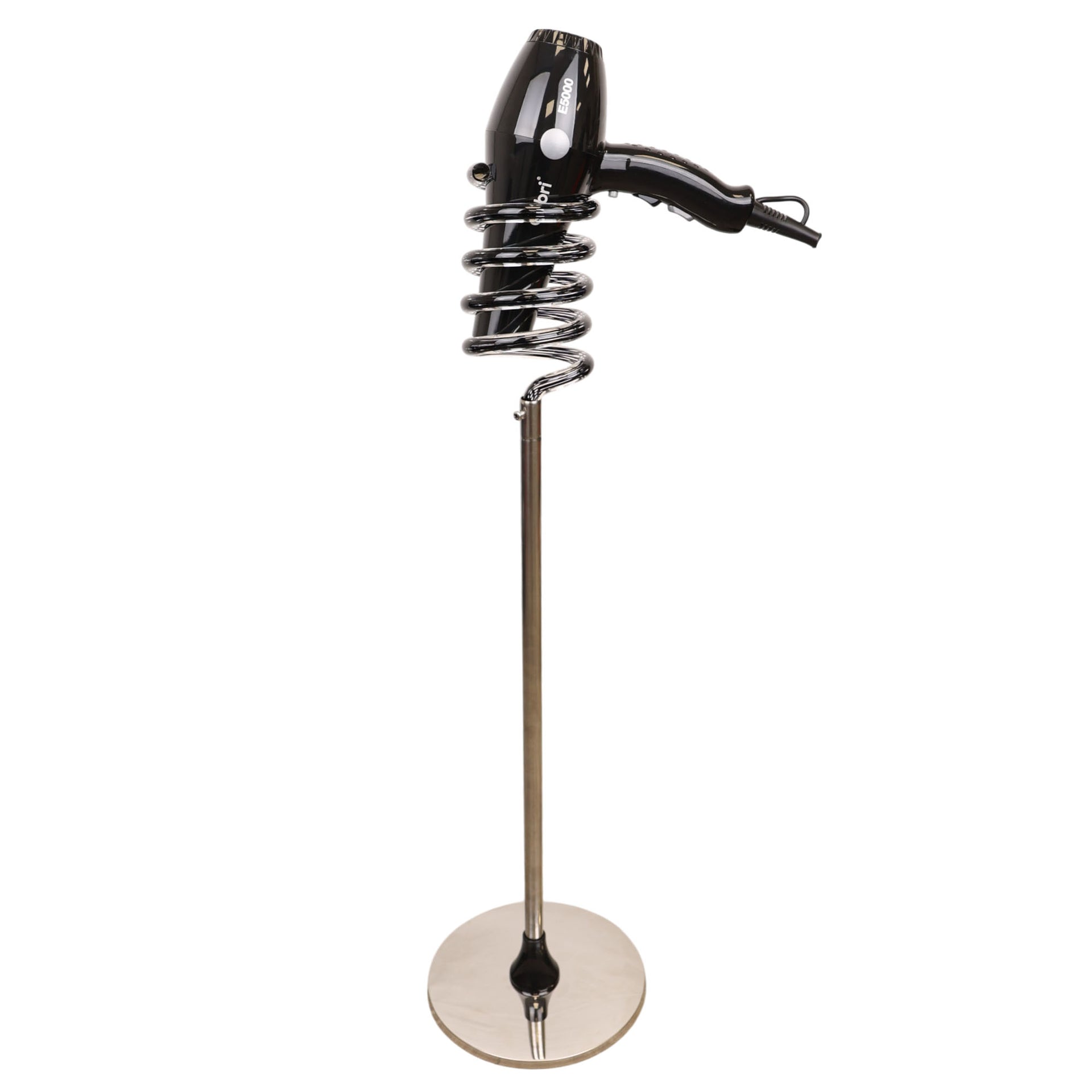 Revolutionise your styling space with this professional-grade Eson Floor-Standing Hair Dryer Stand, engineered for optimal stability and convenience. The robust construction features a one-piece stainless steel rod design, crowned with a precision-engineered acrylic spiral holder that securely accommodates most professional hair dryers. Available in both the sophisticated Silver Edition (22x80cm) and the classic Black Edition (24.5x83.5cm), these stands combine functionality with sleek aesthetics to enhance any professional environment.