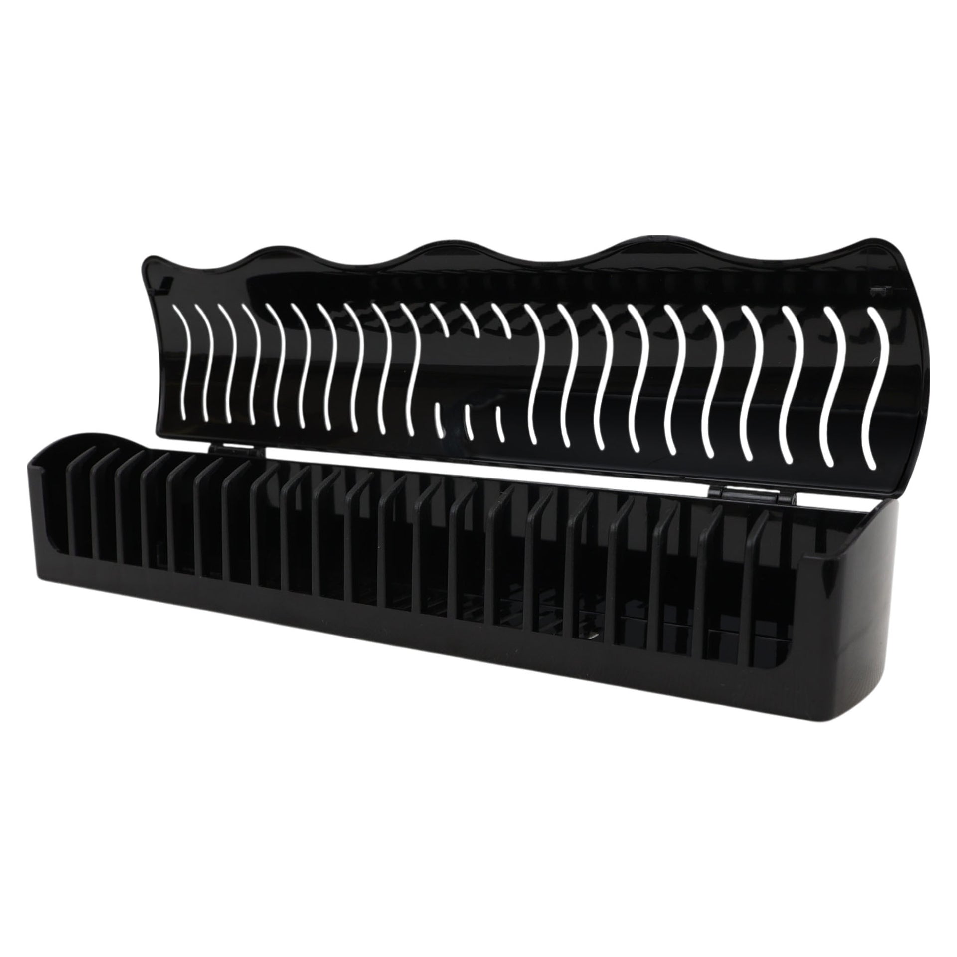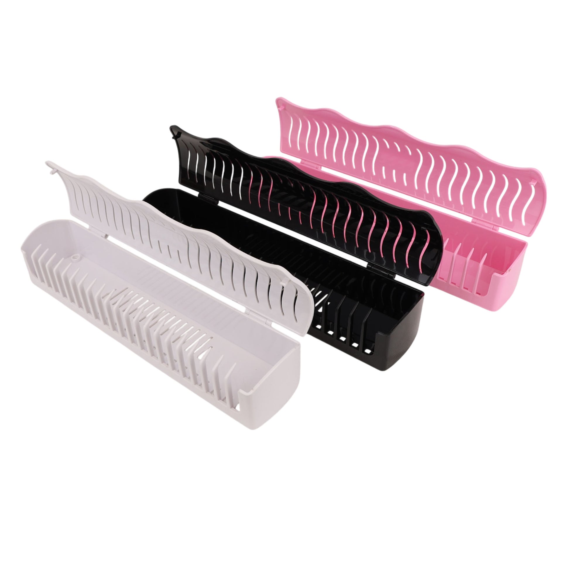 The Professional Extension Holder comes in sophisticated black, classic white, and stylish pink finishes to complement any salon environment. The Salon Display Stand incorporates ventilated slots for efficient drying and styling, while its robust ABS construction ensures long-lasting durability for professional use. Transform your extension styling workflow with this essential professional tool.