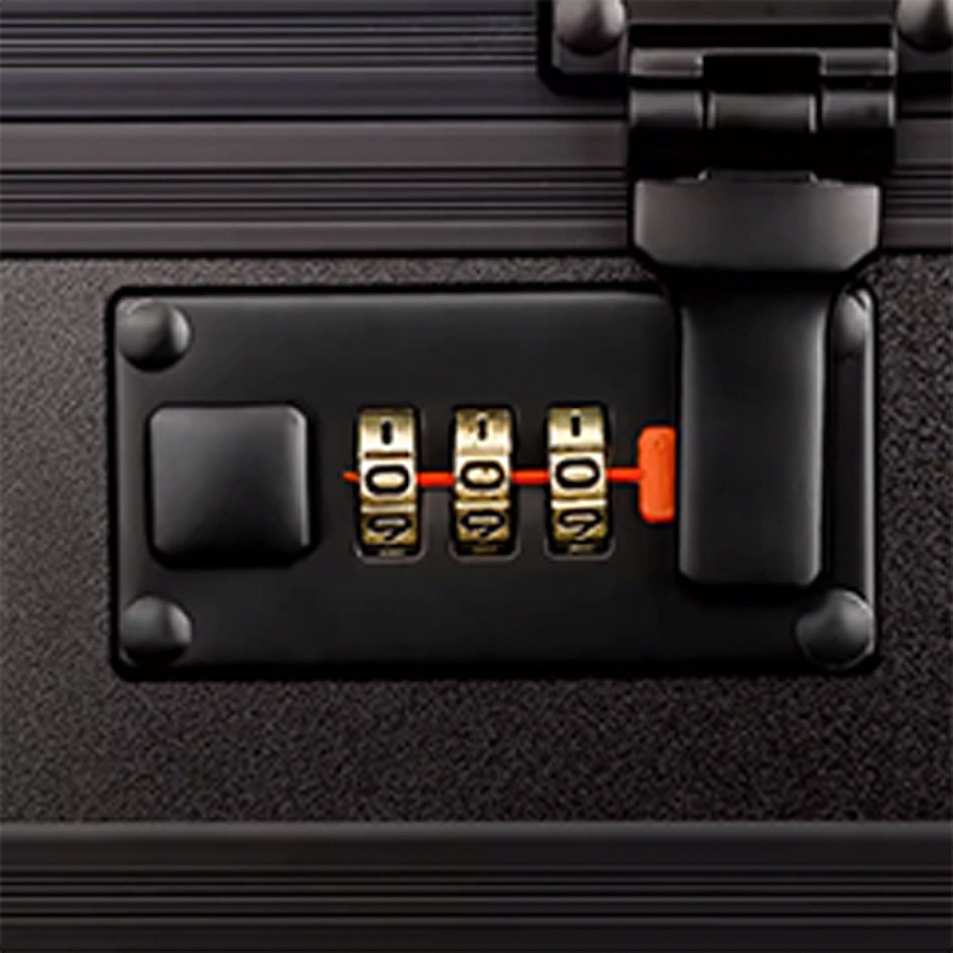 Set your desired combination on the lock. Open the case and meticulously place your clippers, trimmers, scissors, combs, and other tools into their designated compartments. Close and lock the case securely. Use the sturdy carry handle to transport your tools safely as required.