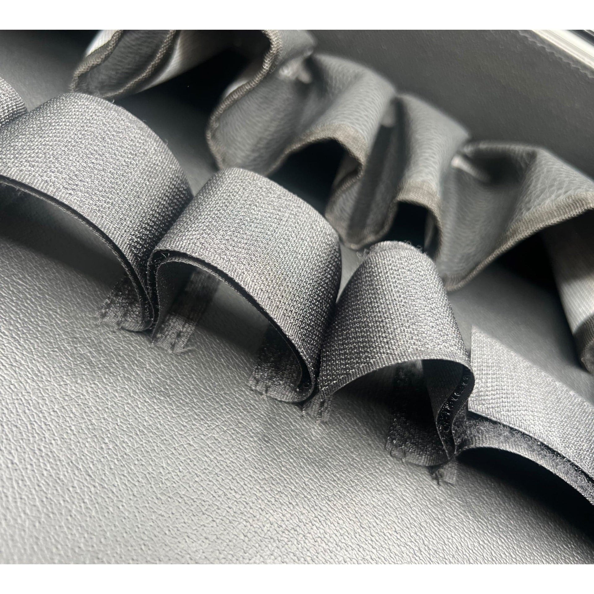 - Construction and Materials: Hard-shell case with hinged lid, internal elastic straps and dividers for organisation, and two combination locks.