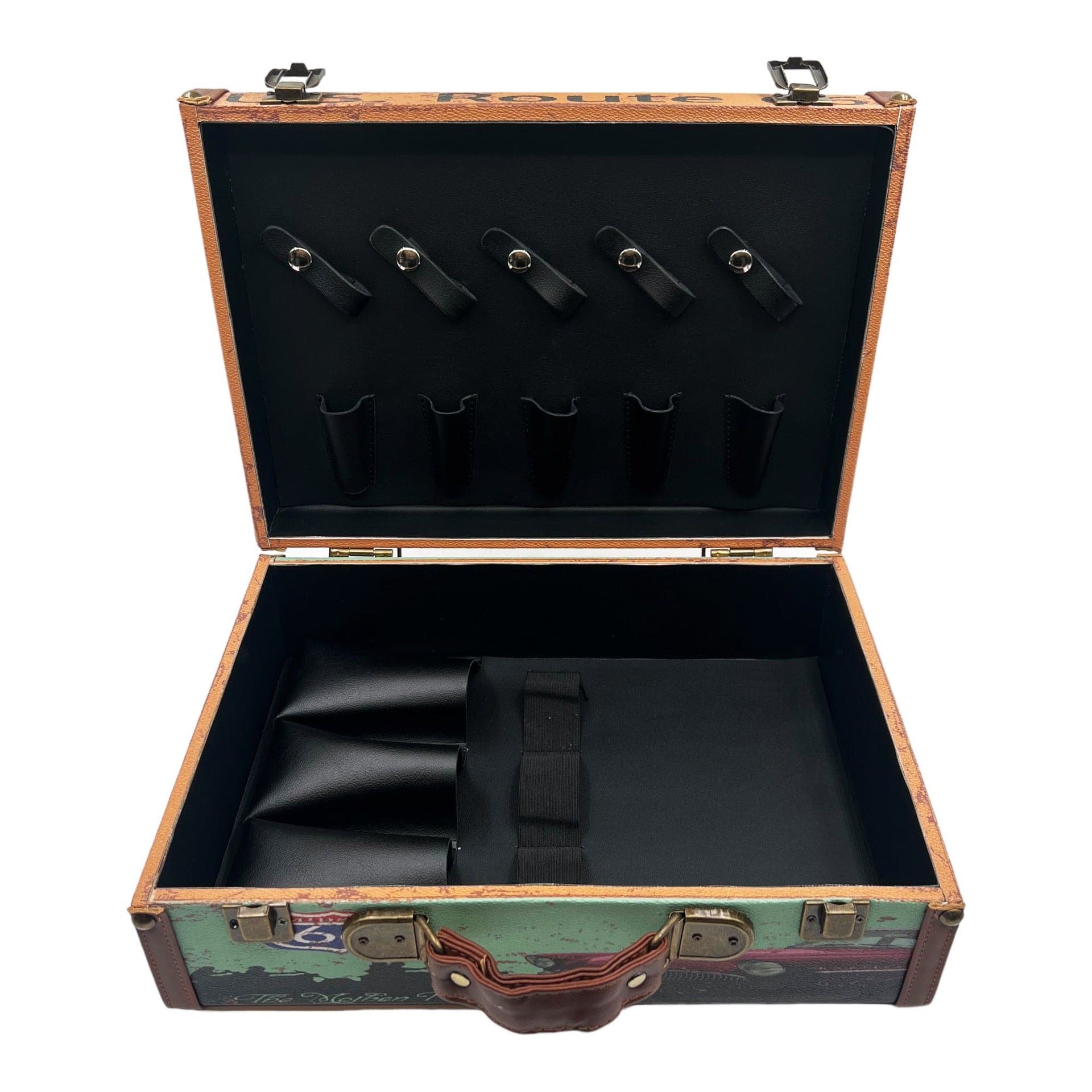 Invest in reliable organisation and significantly enhance your professional workflow with the Eson - Hair Stylist Bag Barber Tools Carry Case Authentic Model (U.S. Route66). The robust and durable construction of this case provides exceptional protection for your valuable tools, diligently safeguarding them from damage and keeping them perfectly secure whether in the bustling environment of a salon or whilst on the move for house calls. Its timeless aesthetic appeal and profoundly practical design make it an exceptionally astute investment for all hairdressers and stylists who unequivocally demand both sophisticated style and unwavering substance from their equipment. Elevate your professional presentation and streamline your daily operations with this elegant and highly functional barber tool carry case, a true nod to vintage Americana.