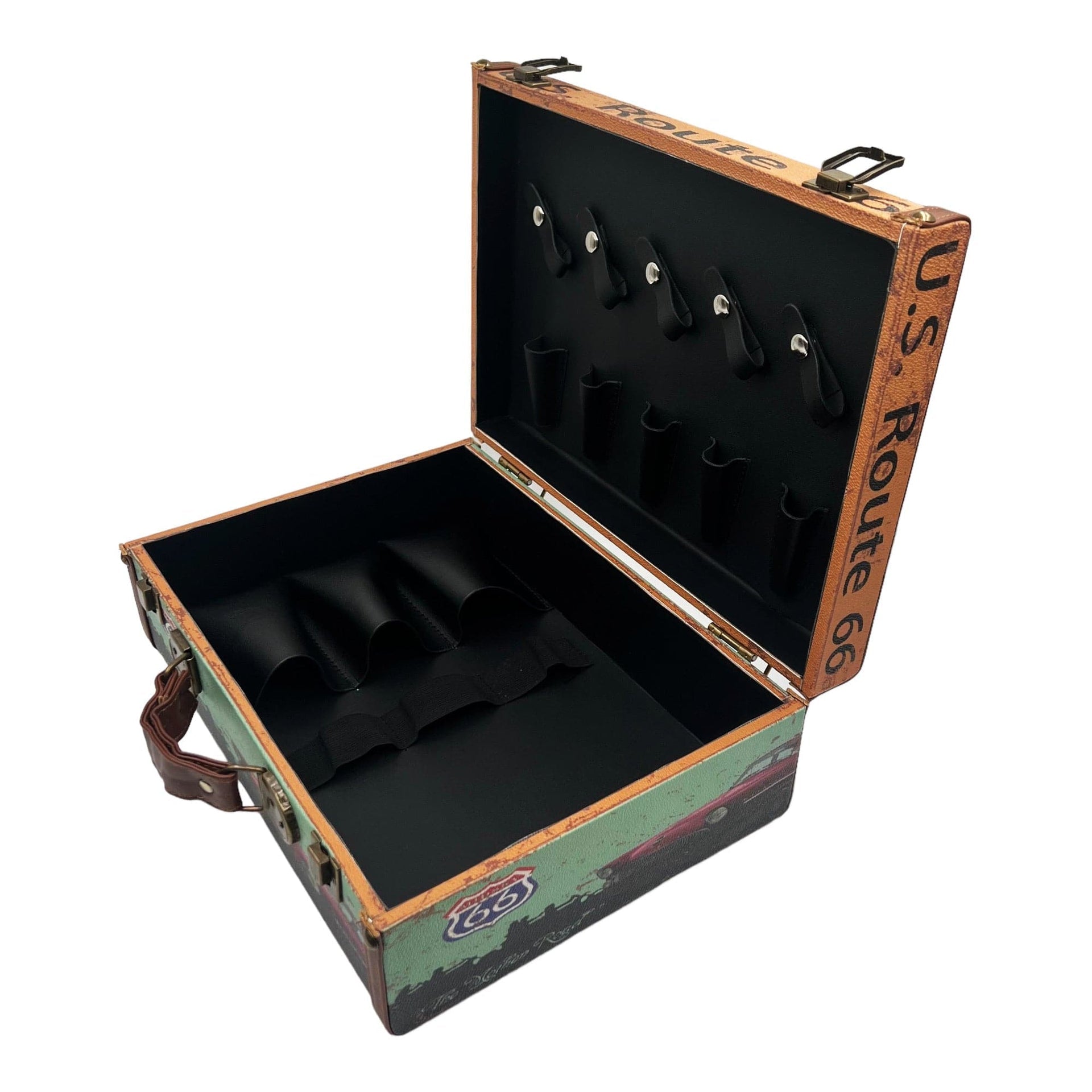 - Exhibits a classic vintage aesthetic with a distinctive U.S. Route 66 design, complementing professional style.
