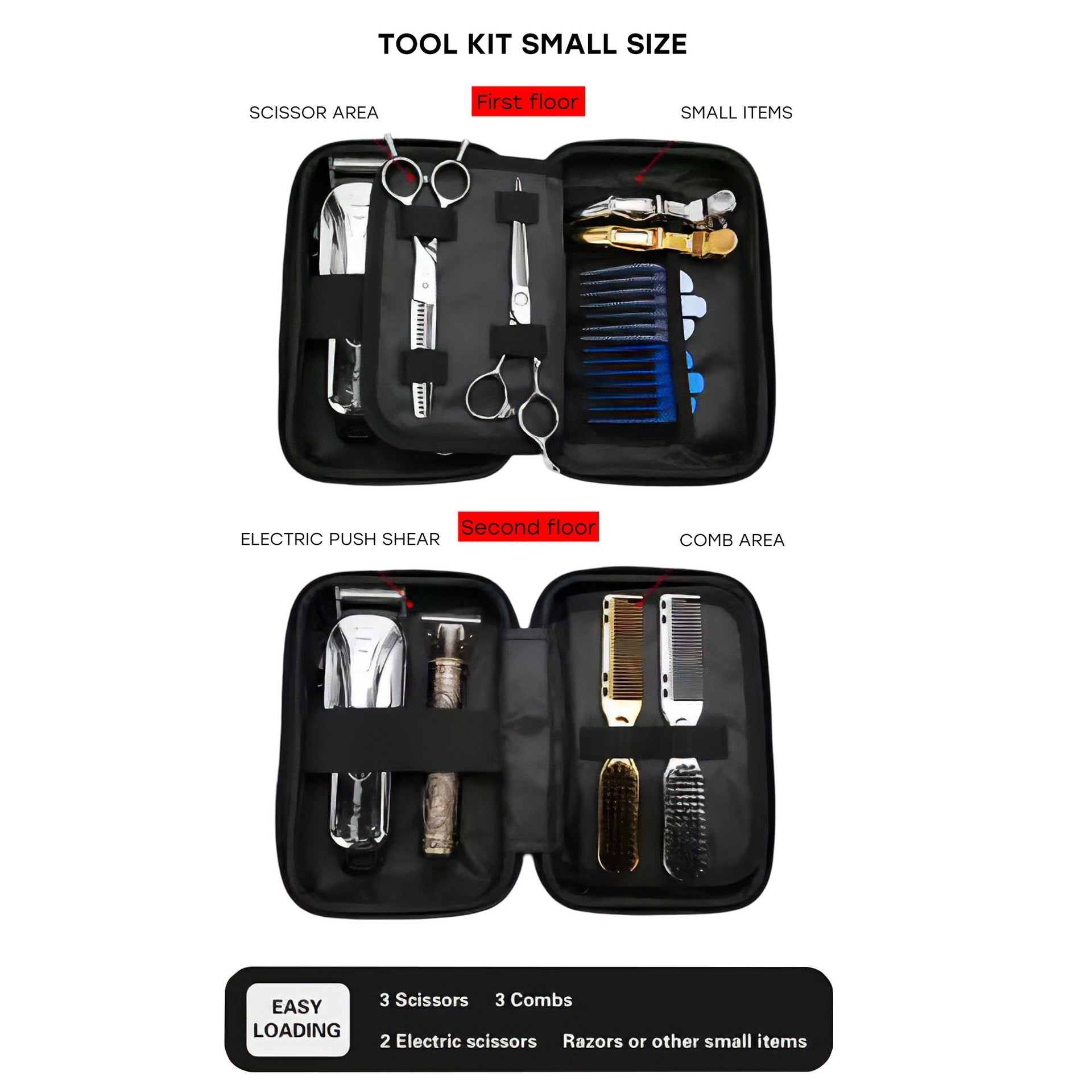 - Tool Capacity: 3 scissors, 2 electric tools, 3 combs, plus accessories
