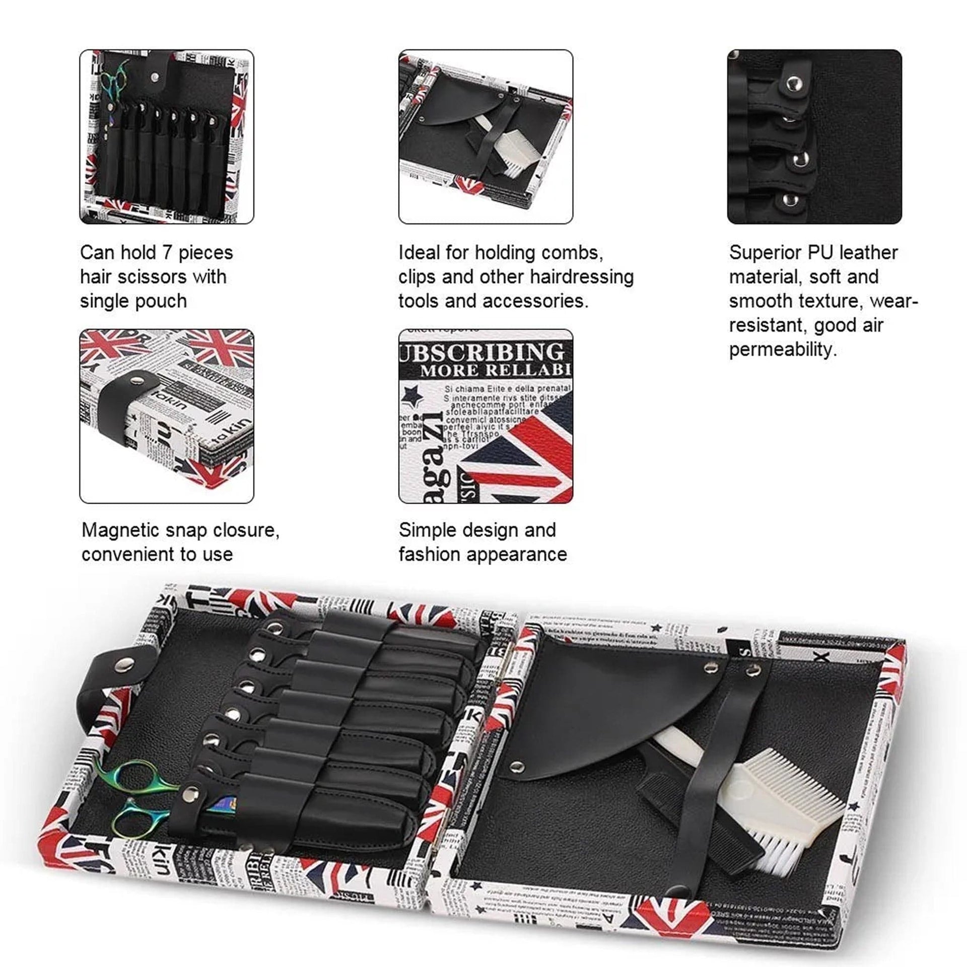 - Capacity: Holds 7 hair scissors, plus space for combs and clips.