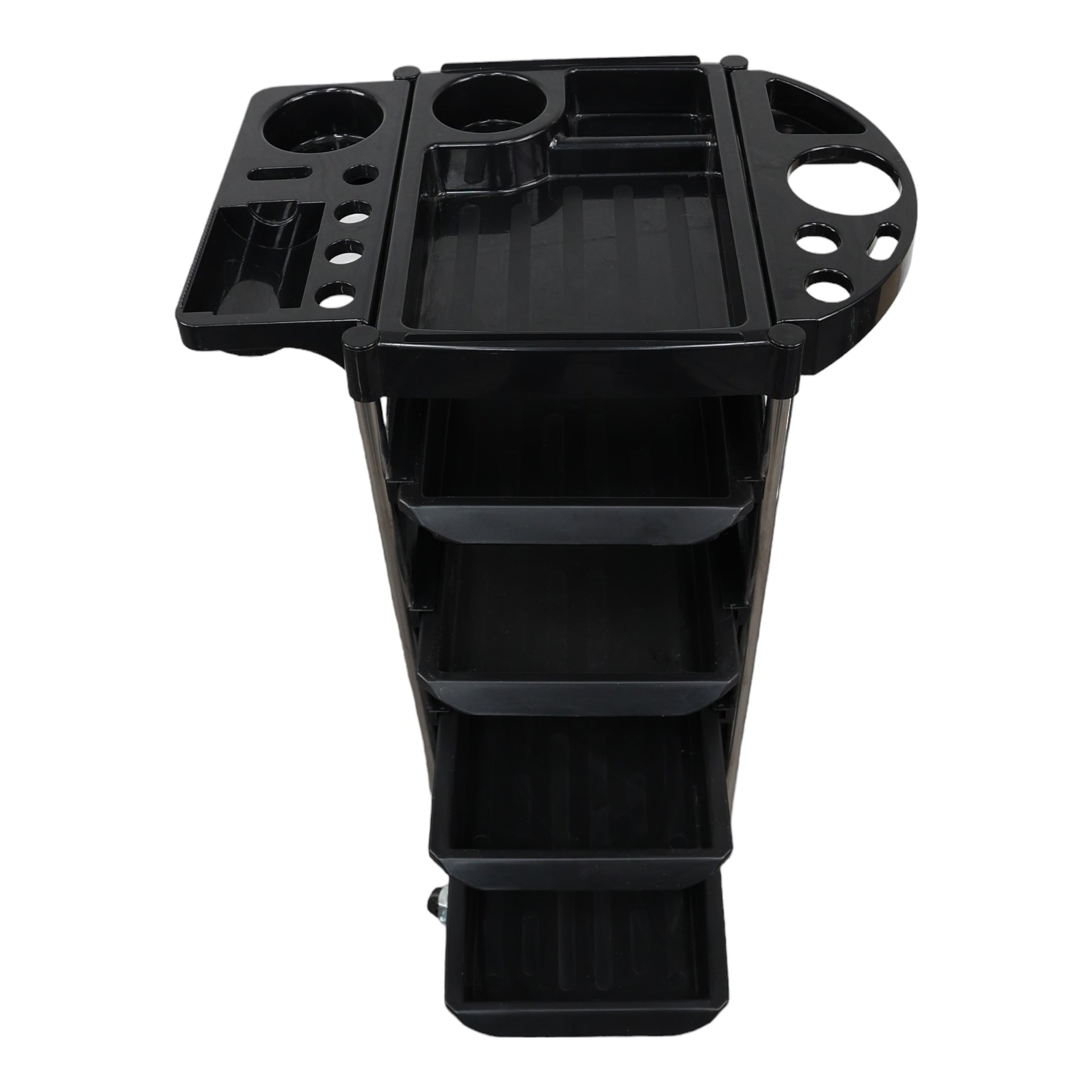 The Eson Professional Salon Trolley combines premium functionality with superior mobility through its smooth-gliding castors and 360-degree rotating mechanism. Four spacious removable trays provide flexible storage options for styling products and accessories, whilst the durable construction, featuring aluminium fibre side panels and a sleek black finish, delivers professional-grade durability. The Multi-Function Beauty Station seamlessly integrates practical storage solutions with elegant design, creating an indispensable workspace companion for the discerning salon professional.