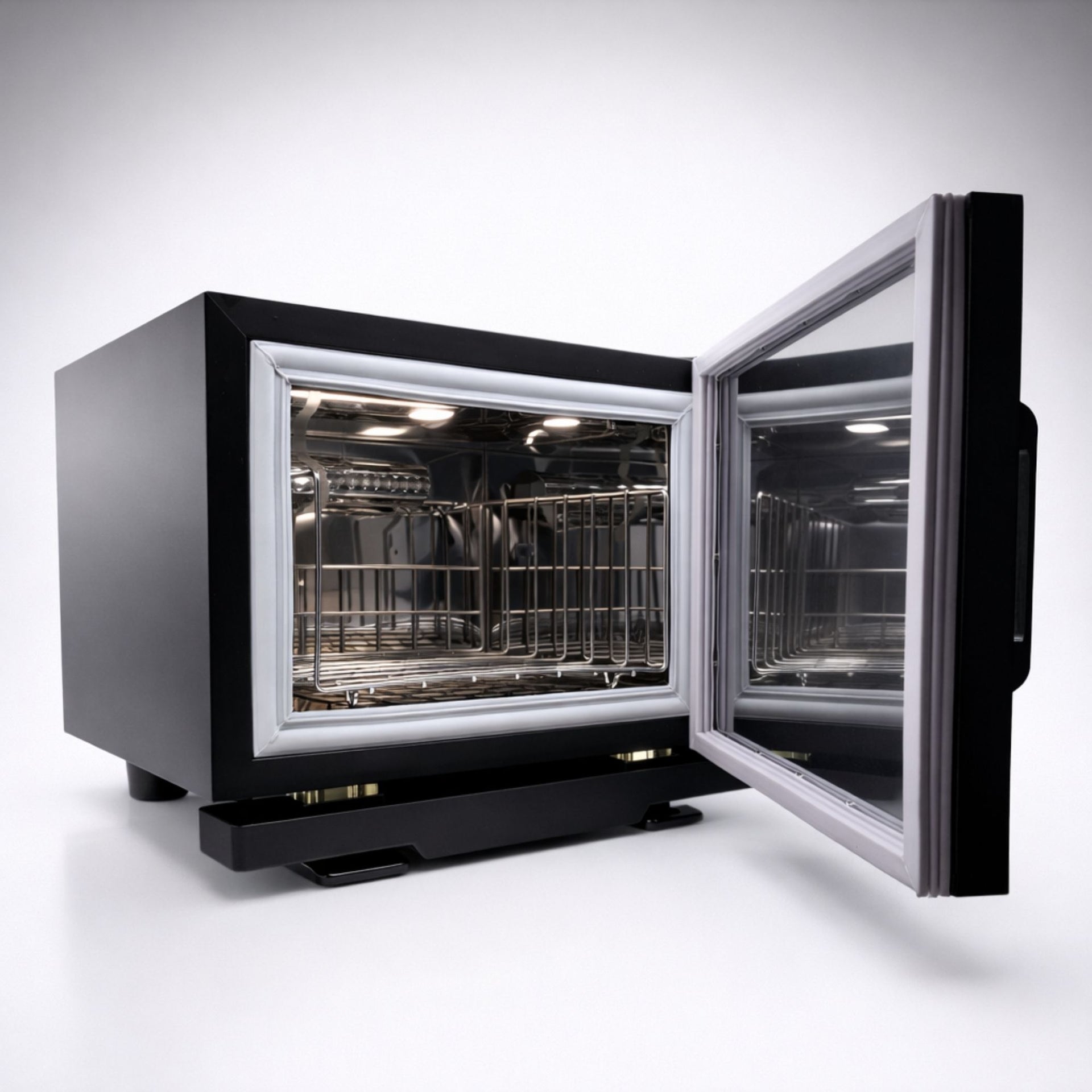Built for everyday commercial use, Eson - Hot Towel Warmer Cabinet with UV Steriliser - 6.5L - Matte Black features separate switches for the heating and UV functions, allowing easy operation throughout the day. The internal wire rack helps keep towels organised for more even warming, while the removable condensation drip tray supports cleaner day-to-day maintenance. Its metal construction provides good durability, and the magnetic door closure helps keep heat contained during use. This towel warmer is especially useful for professionals who need a reliable supply of warm towels without using a larger cabinet. Whether you are preparing towels for facial treatments, shaving services or spa rituals, it offers a practical way to improve the client experience. The compact design also makes it suitable for treatment rooms with limited space or mobile-style working setups. It is an excellent option for those looking to add a compact hot towel cabinet with UV steriliser to a professional setting.