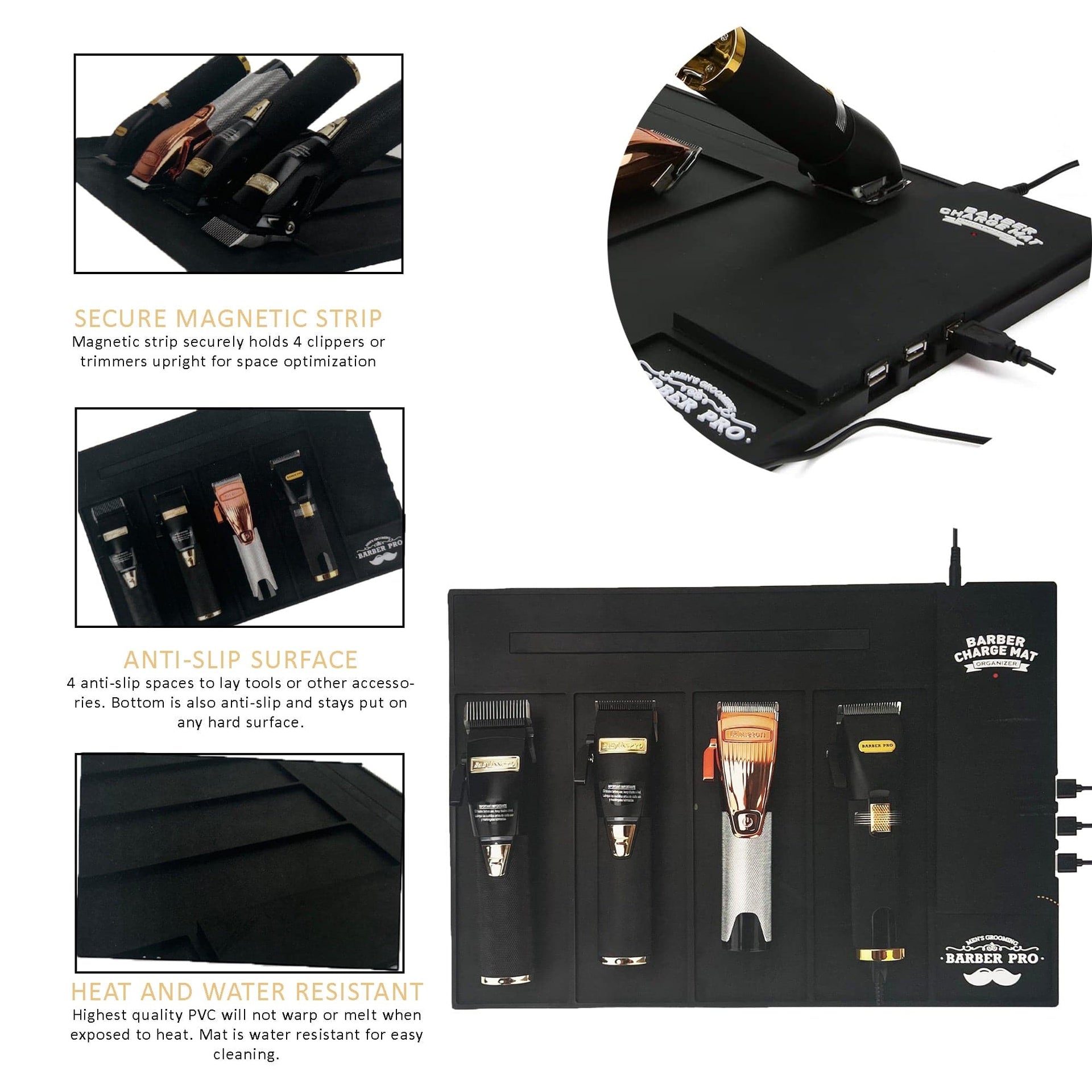 - Includes a built-in USB charging port, allowing for effortless and convenient charging of your clippers directly on the mat.
