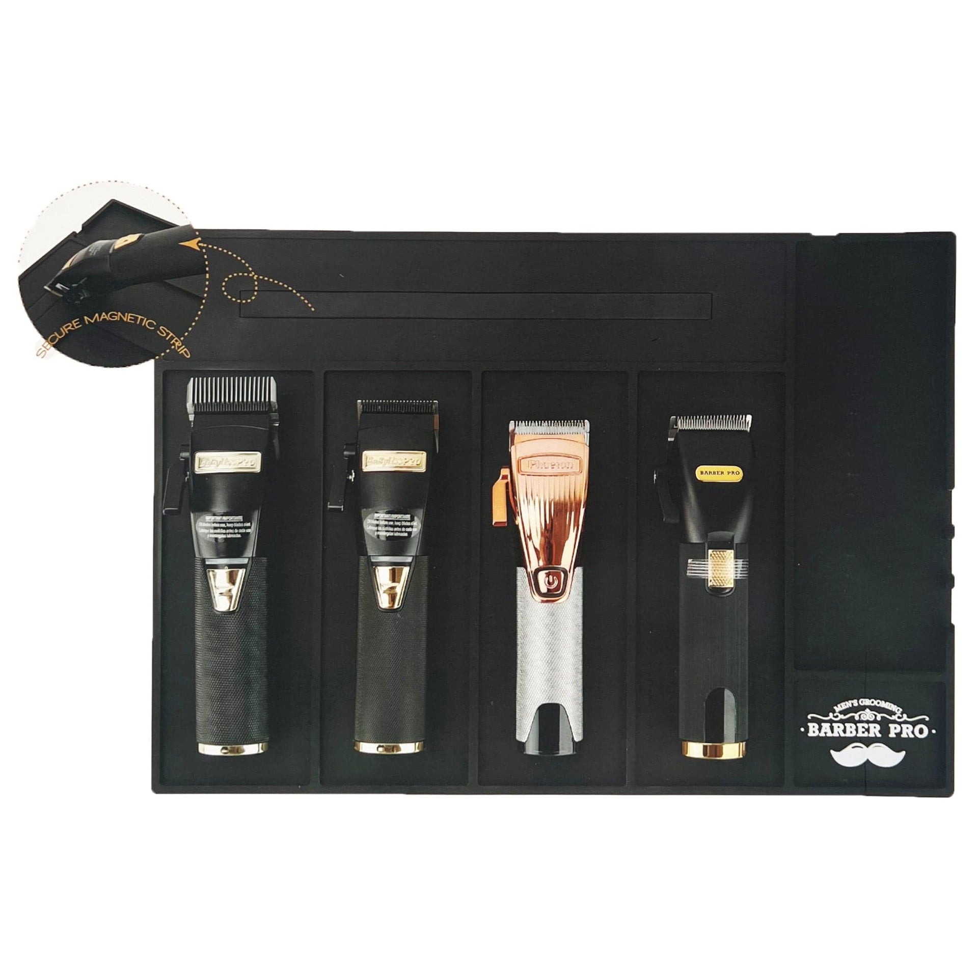 The Eson - Barber Pro Magnetic Barber Mat is ideal for professional barbers seeking a safe, organised, and efficient tool storage and charging solution. It is also perfect for salons looking to protect counters, streamline workflow, and enhance overall efficiency, and for hairdressers who desire a professional, hygienic, and comfortable workspace.