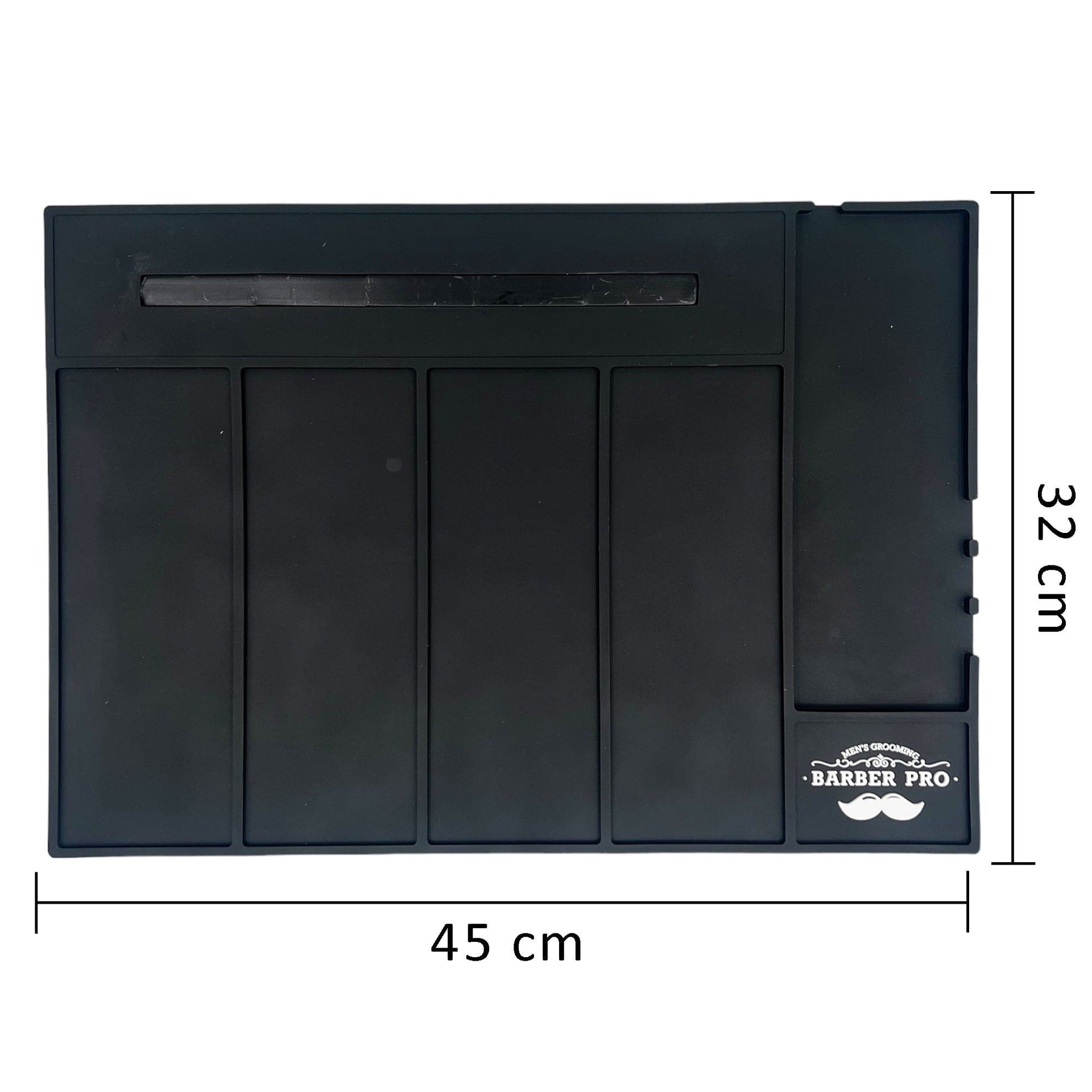 Crafted from remarkably durable, high-quality PVC, this non-slip mat presents a spacious and intuitively laid-out surface, complete with thoughtfully designated tool compartments to ensure your workspace remains impeccably organised and supremely efficient. The high-quality PVC material guarantees that the mat will not warp or melt, even when exposed to heat, providing a reliable and long-lasting surface. Maintaining a consistently hygienic and professional environment is effortless, thanks to its incredibly easy-to-clean design, which resists water and simply wipes clean. This mat is not merely an accessory; it is an essential investment for any barber or hairdresser committed to optimising their workflow, protecting their equipment, and upholding the highest standards of cleanliness and professionalism in their daily practice.