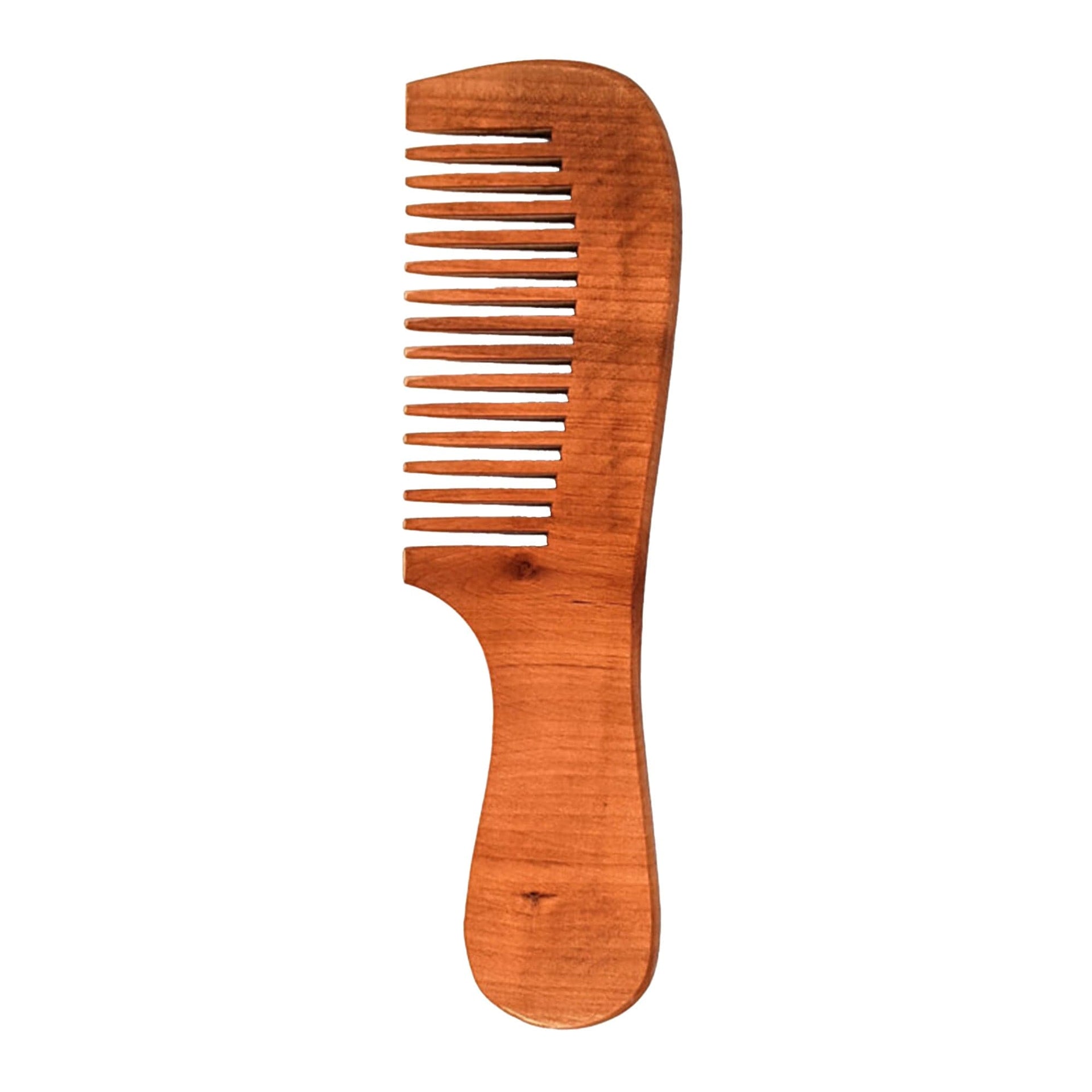 This comb is made from natural cherry wood. To preserve its quality, please avoid excessive exposure to water and heat. Clean regularly without the use of harsh chemicals.