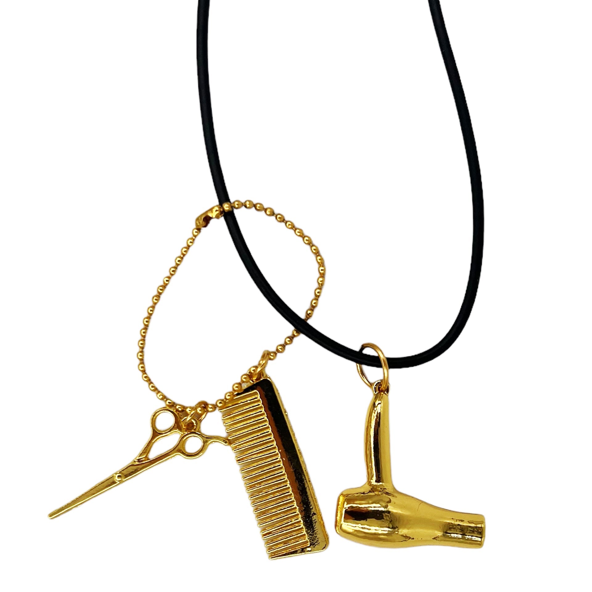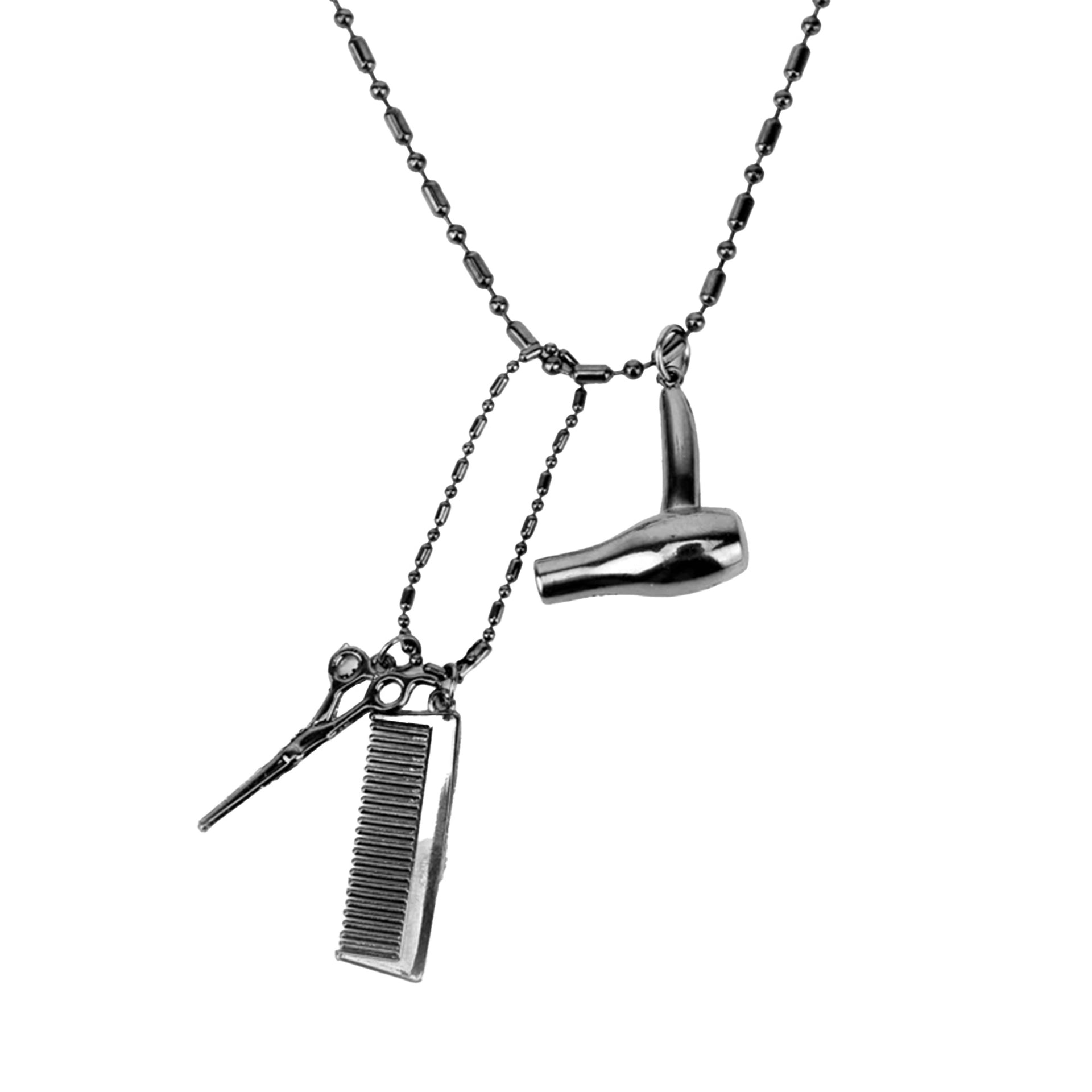 - A collection of unique necklaces designed for barbers, stylists, and hairdressing enthusiasts.