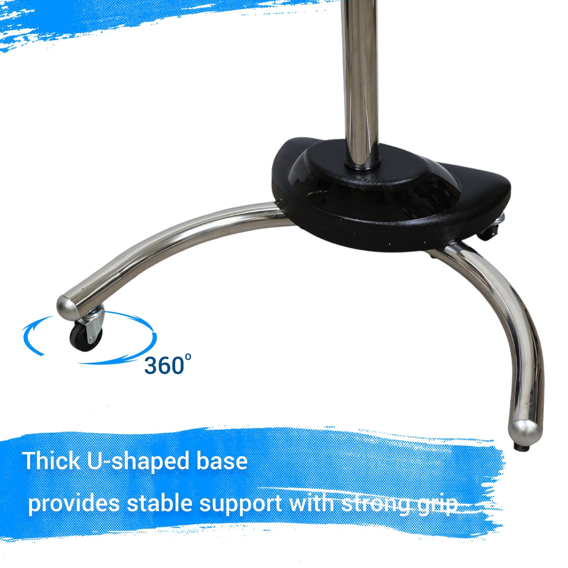 - Height-adjustable stand (142-168 cm) with stable U-shaped base and smooth-rolling castors for optimal positioning.