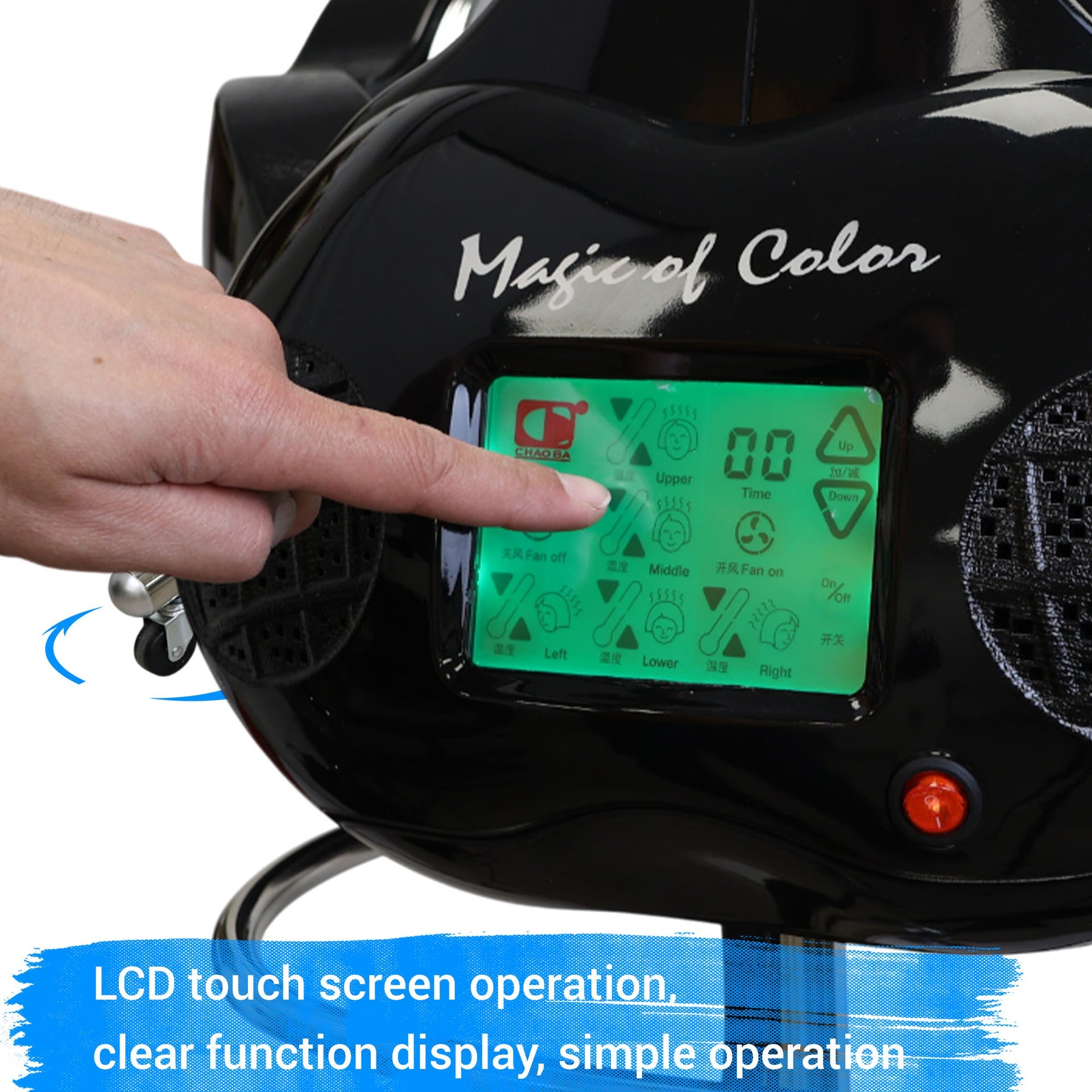 Crafted specifically for the demanding salon environment, the Eson - ProTouch 5-Zone Digital Hair Processor features a robust yet mobile construction with a stable U-shaped base and smooth-rolling castors for effortless positioning around styling stations. The thoughtfully designed adjustable height mechanism allows for perfect positioning regardless of client seating arrangements, whilst the articulated heating arms can be precisely positioned to ensure even heat distribution across all hair types and lengths. The premium LCD control panel provides clear visualisation of all functions, with dedicated touch controls for each heating zone, fan speed, and timer settings, making operation intuitive for all staff members. This professional-grade processor operates with remarkable energy efficiency despite its powerful performance, thanks to the advanced carbon fibre heating technology that delivers consistent, gentle heat without excessive power consumption. Beyond enhancing chemical processing, this versatile unit promotes overall hair health by improving blood circulation to the scalp, enhancing moisture retention, and creating visibly shinier, healthier-looking results that will build client loyalty and elevate your salon's reputation for exceptional service and cutting-edge treatments.