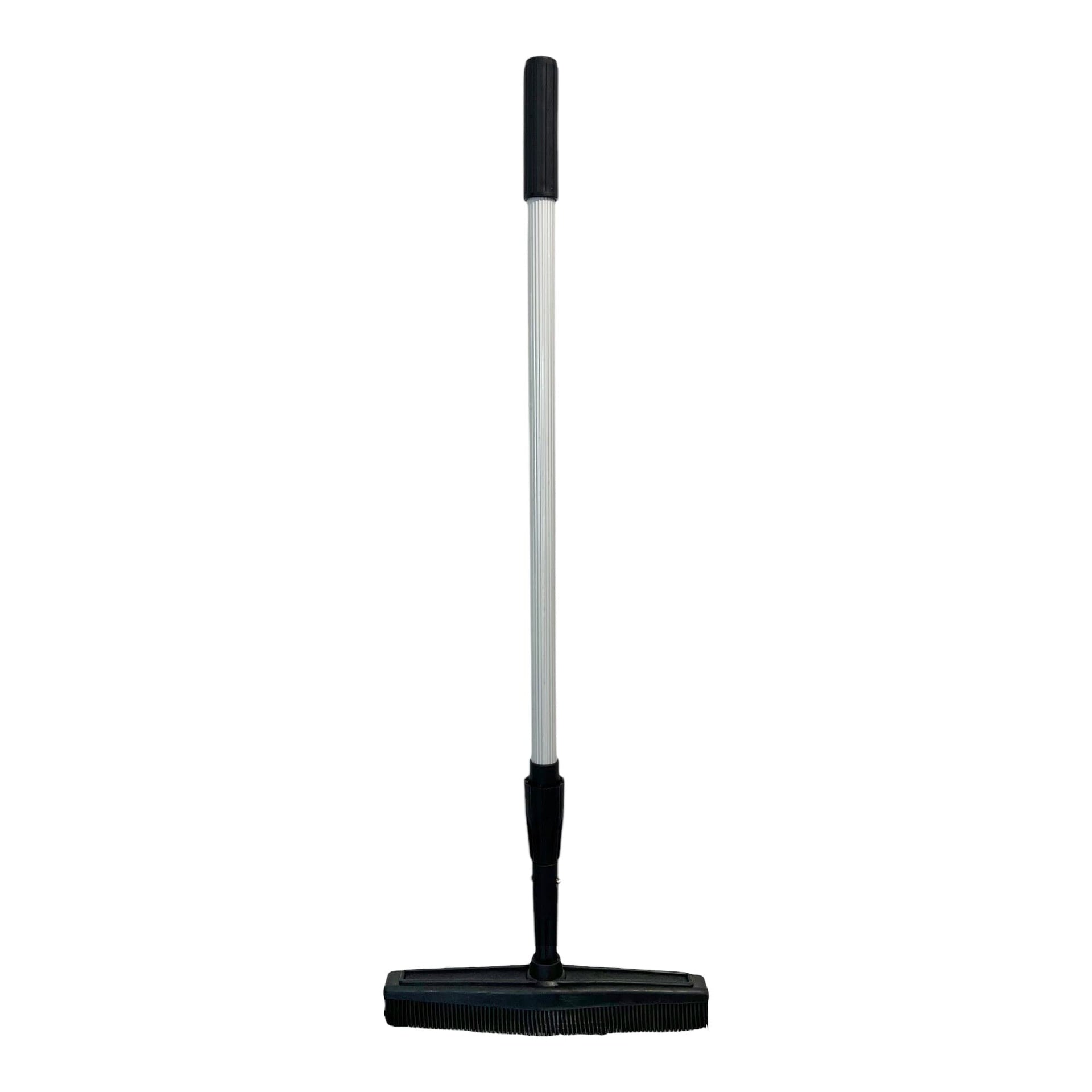 Extend the telescopic handle to your desired length and lock it in place. Use short, sharp strokes to gather hair and dust. The rubber head can be easily rinsed with water for maintenance.