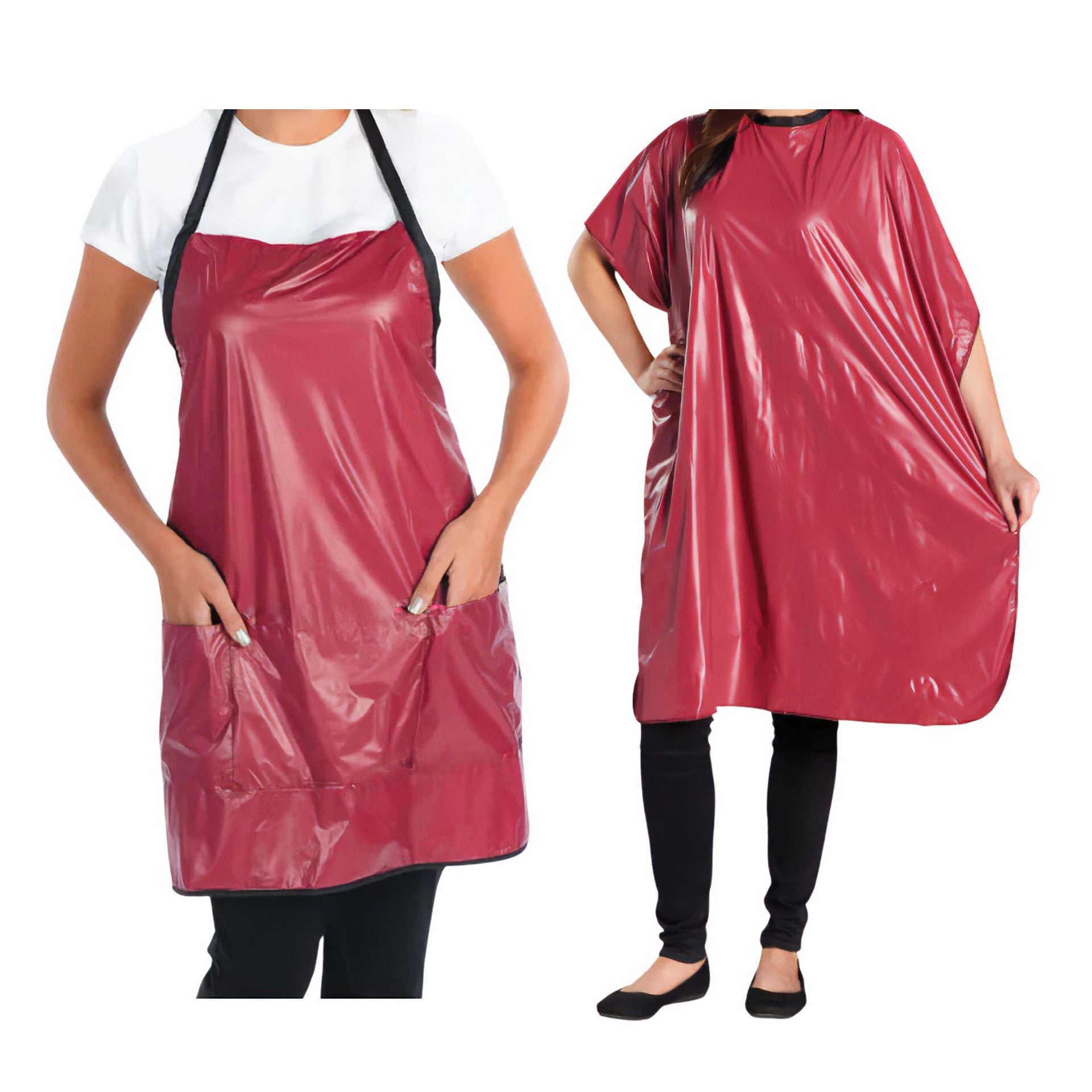 Discover professional-grade protection with the Eson Salon Tint Collection, featuring both a versatile apron and comprehensive cape design. The [Apron] boasts three spacious pockets for essential tools and accessories, while maintaining complete protection against colour stains and chemical splashes. The [Cape] delivers full-coverage protection with its generous dimensions and secure velcro neck closure, ensuring clients remain completely protected during all styling procedures. Both pieces are crafted from premium soft vinyl material that offers superior resistance to hair dyes and chemical treatments.