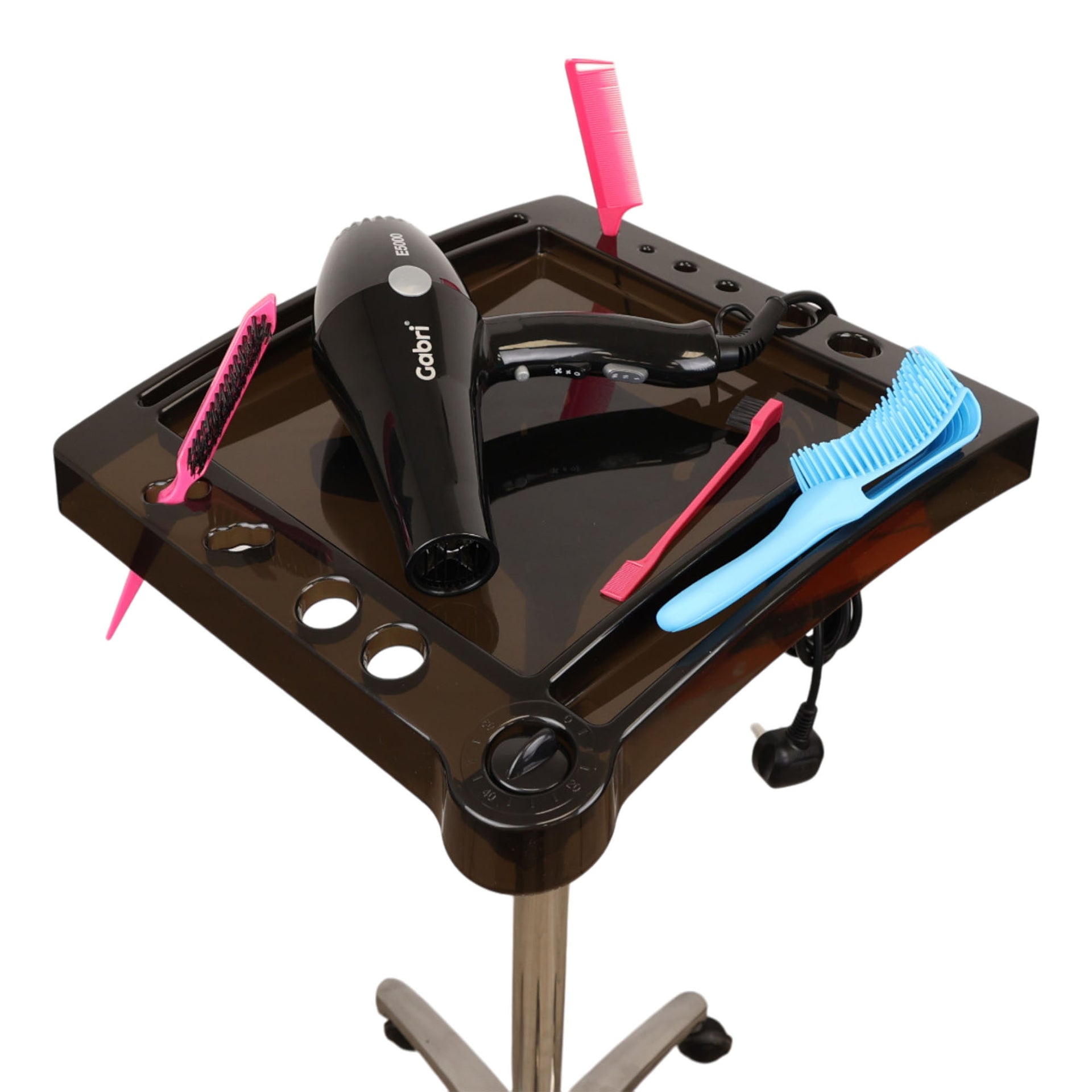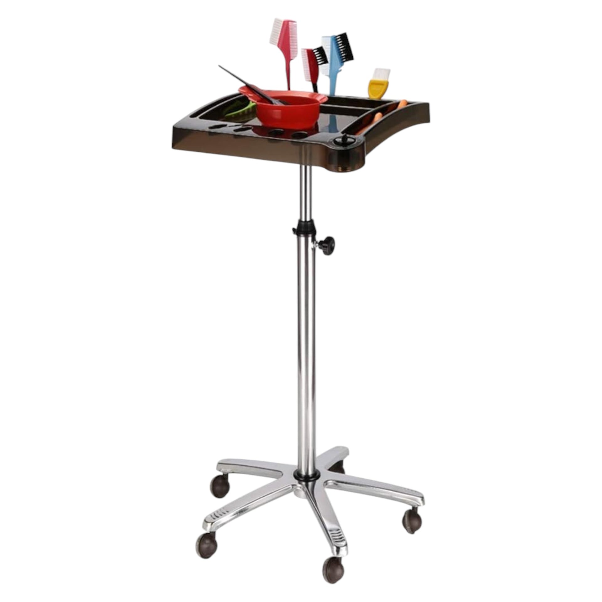 The Eson Timer Tint Cart exemplifies professional-grade construction, featuring a robust aluminium alloy frame and stainless steel support pole that deliver outstanding stability and durability. The precision height-adjustment mechanism allows customisation to each stylist's preferred working position, whilst the premium five-star base with smooth-rolling castors ensures effortless mobility. The Professional Colour Station seamlessly integrates timing accuracy with ergonomic design, making it an essential tool for precision colour services.