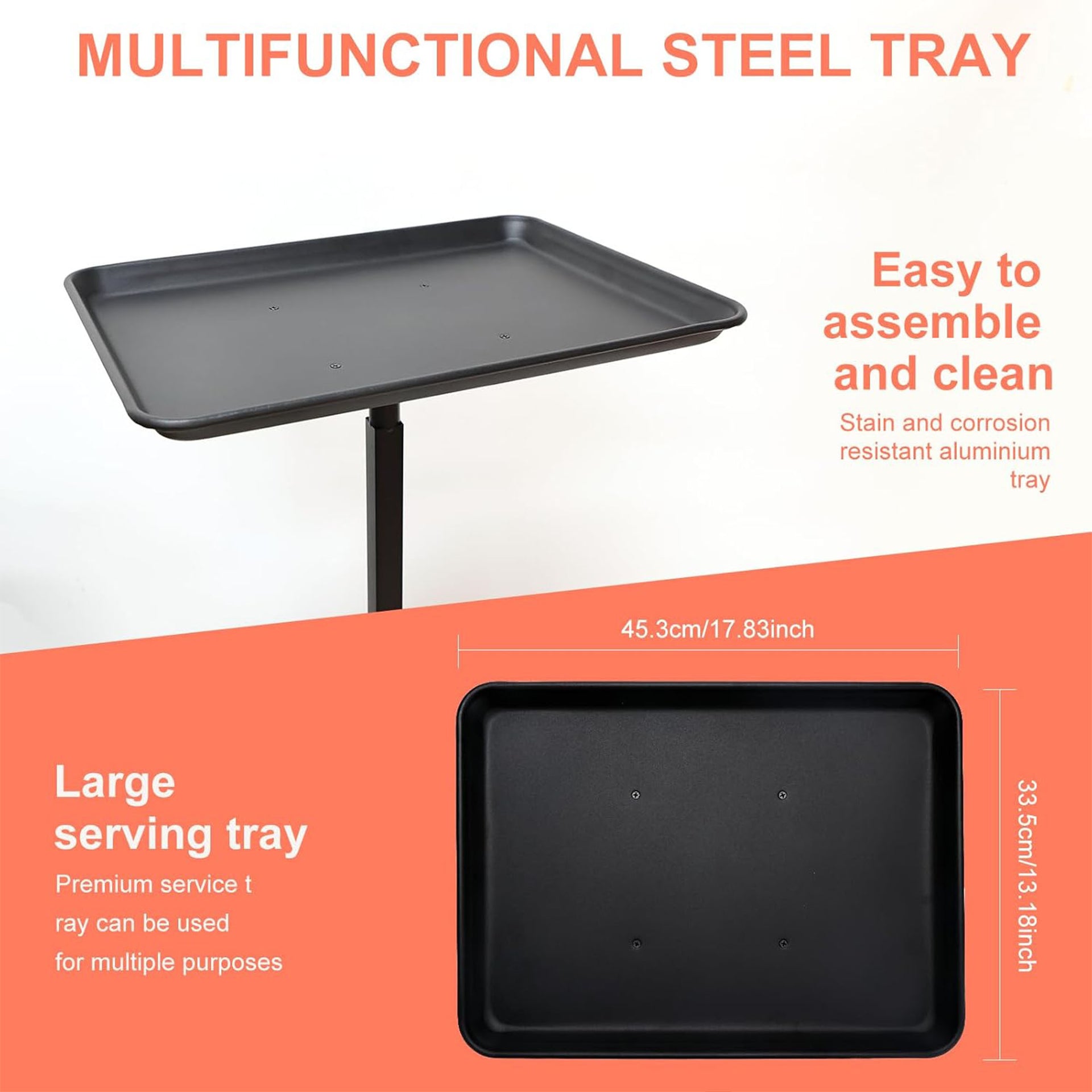 The Eson Chair-Mounted Tray exemplifies professional-grade functionality with its precision height adjustment mechanism and secure locking system. The generous 45.3 x 33.5cm surface area provides ample space for all essential tools, whilst the durable steel construction ensures long-lasting performance in busy salon environments. The Professional Styling Station seamlessly integrates with existing salon chairs, creating an efficient and organised workspace that enhances service delivery and professional presentation.
