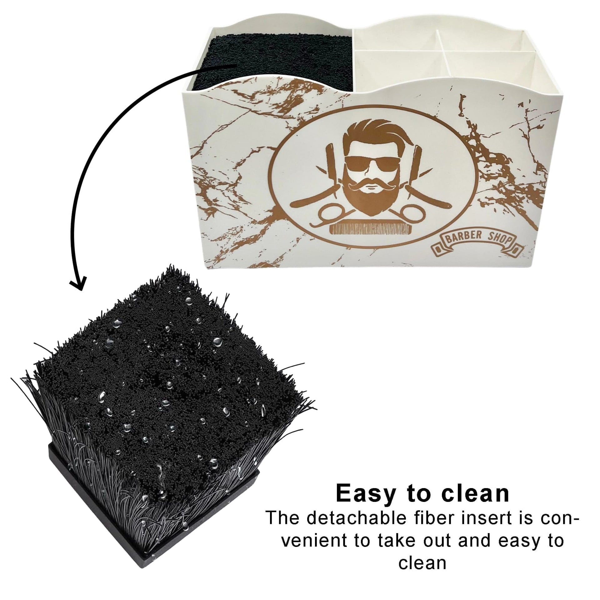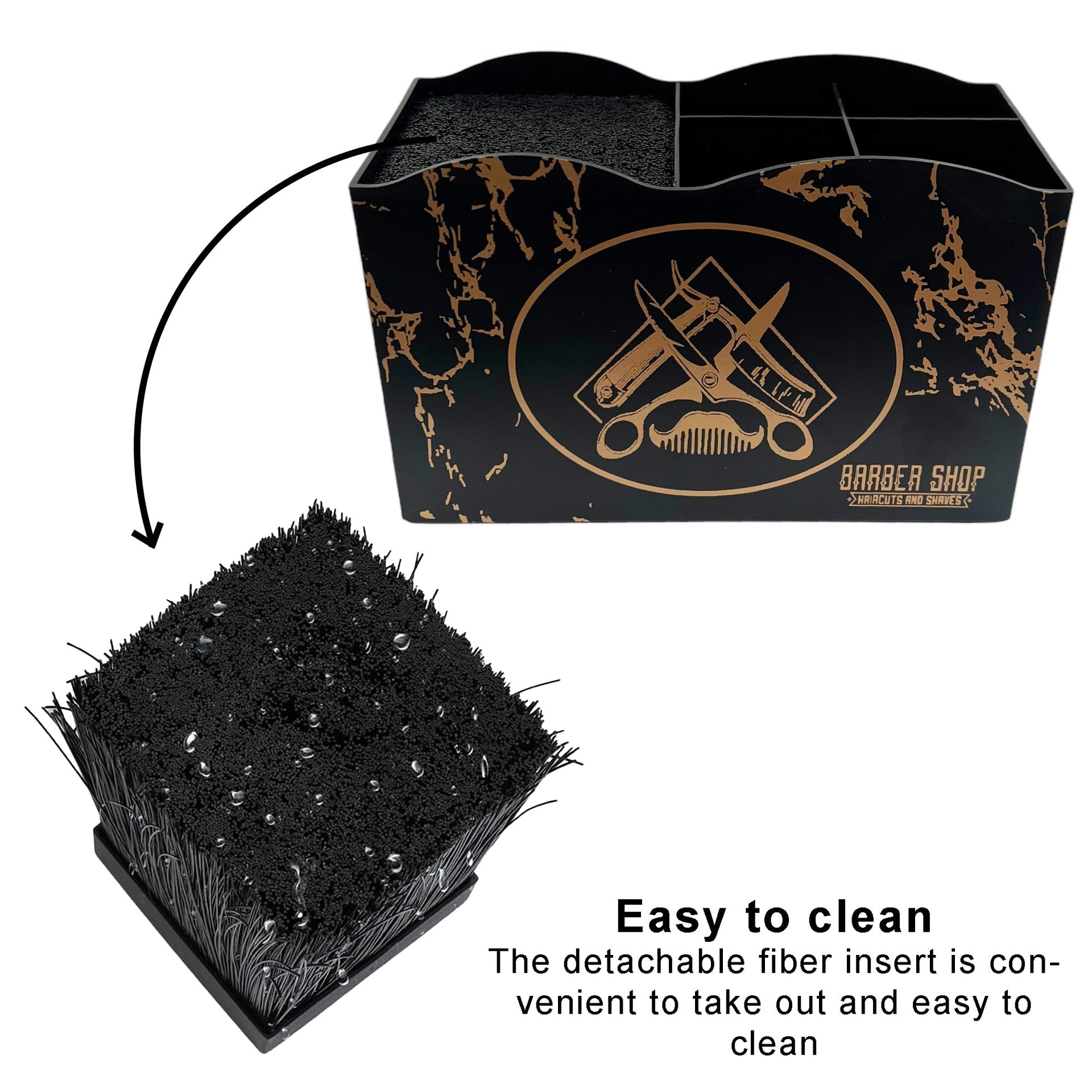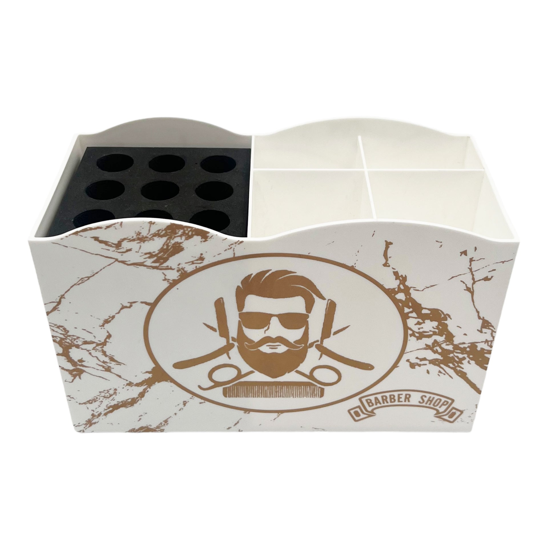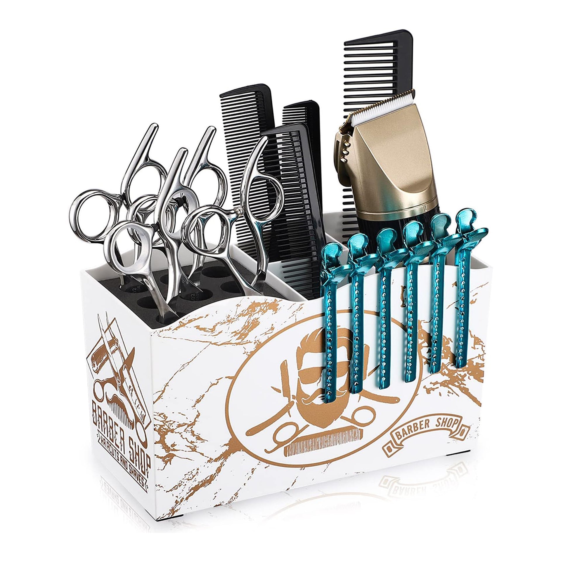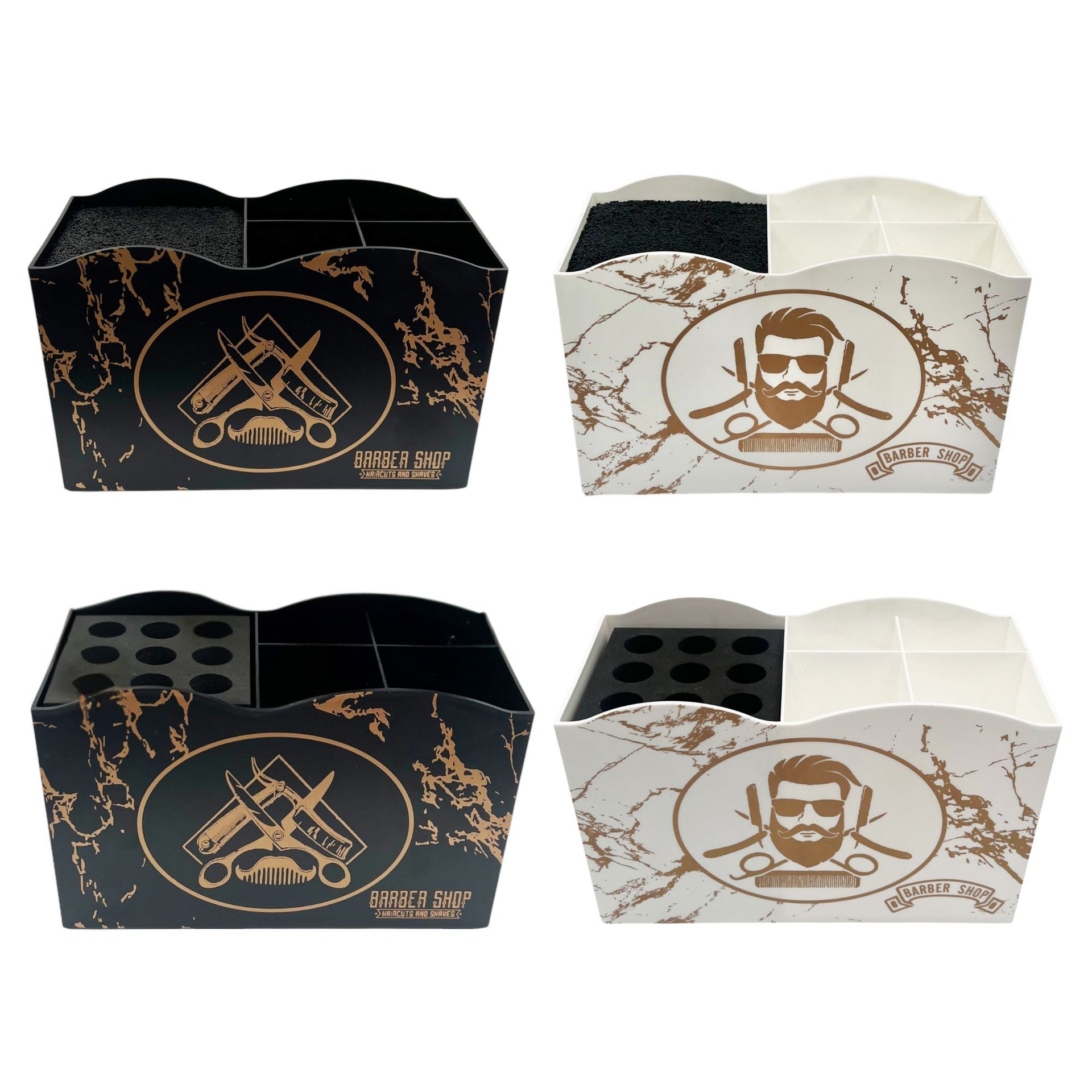 Enhance your salon or barbershop with the Eson - Scissor & Brush Holder Non-Slip collection, a range of stylish and functional solutions for storing your essential styling tools. These organisers provide a sturdy and chic solution for keeping your scissors, clippers, combs, and brushes neatly stored and always within easy reach. Crafted from high-quality, durable materials, each holder features a beautiful marble-effect gold pattern that complements any professional décor. The thoughtful design ensures your valuable tools stay safely in place, even in busy environments.
