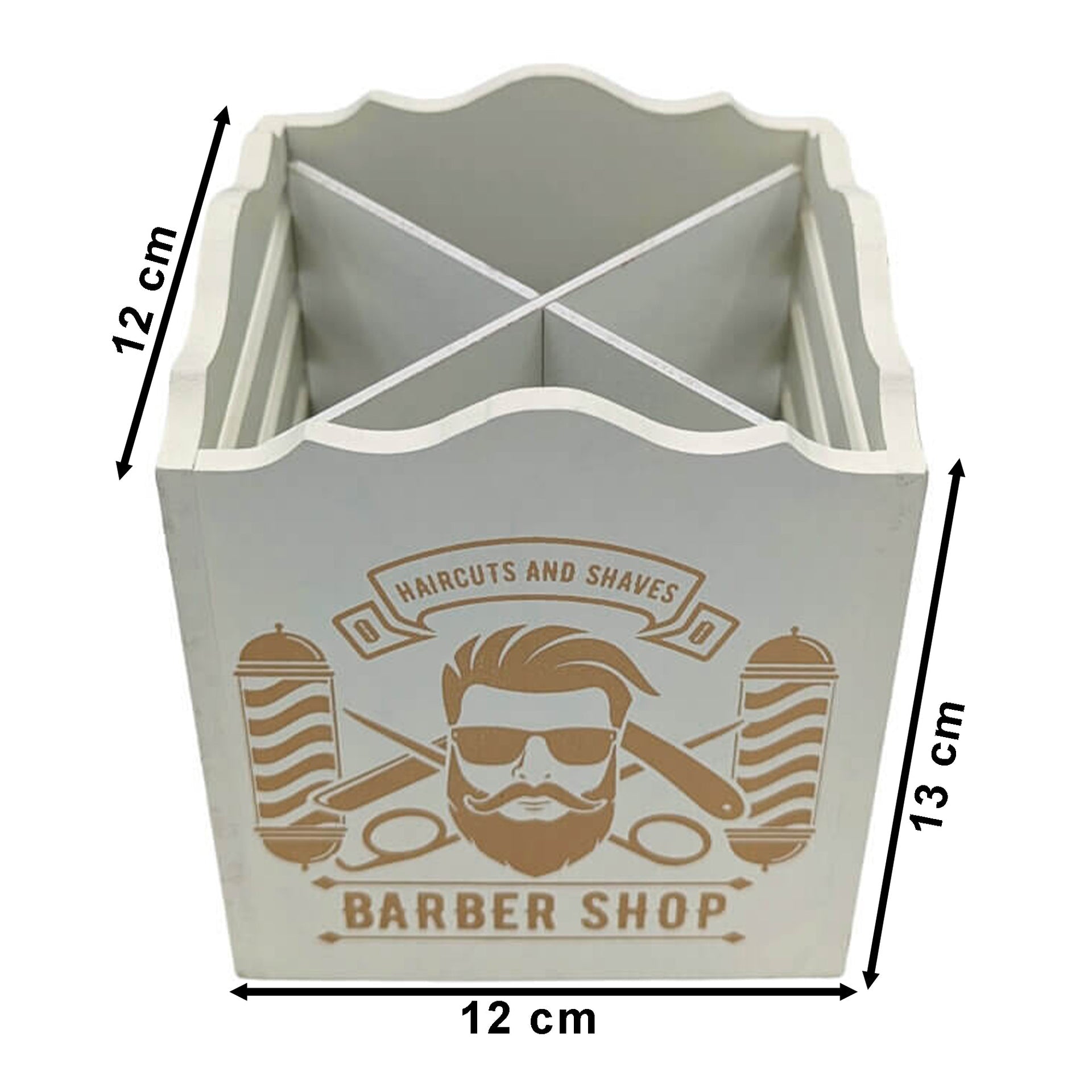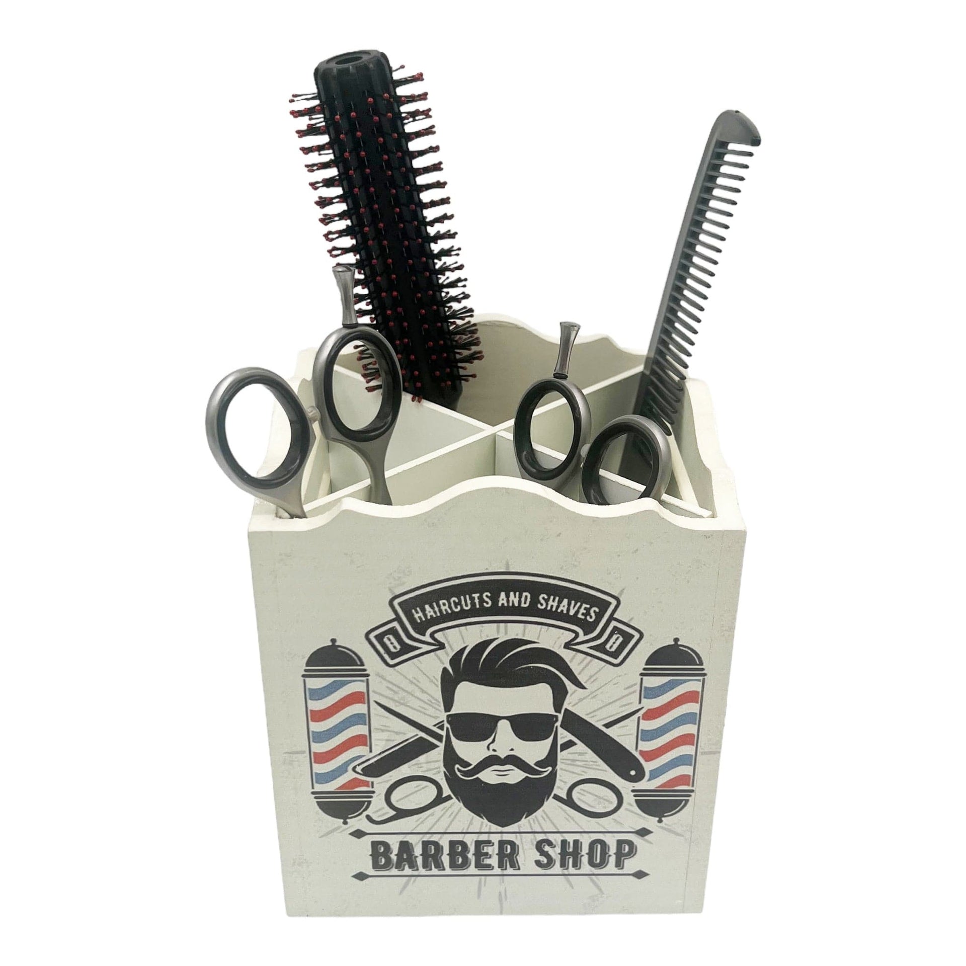 Enhance your salon or barbershop with the Eson - Scissor & Brush Holder Wooden Storage Box, an essential tool for any hairdressing enthusiast or professional. This organiser provides a sturdy and stylish solution for keeping your scissors, clippers, combs, and brushes neatly stored and always within easy reach. Crafted from high-quality, durable wood, it is built to withstand the demands of a busy professional environment. The smart design with multiple compartments ensures your tools stay safely in place and beautifully displayed.