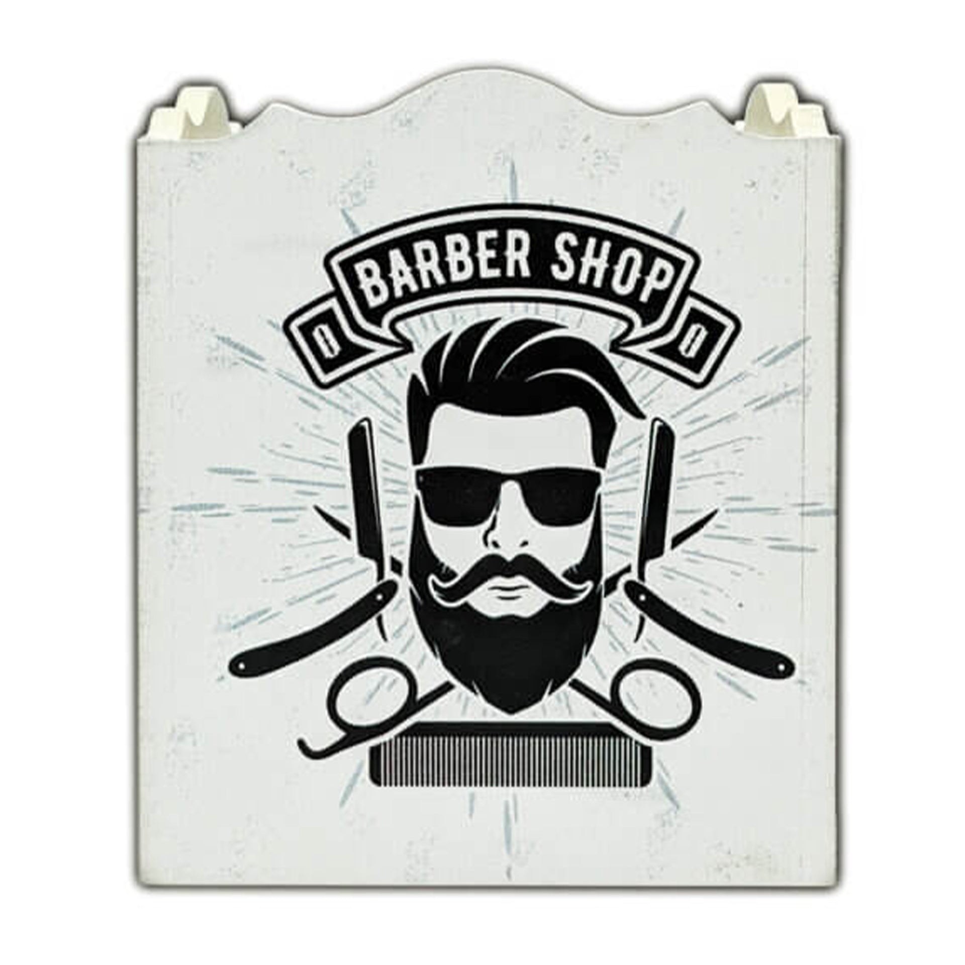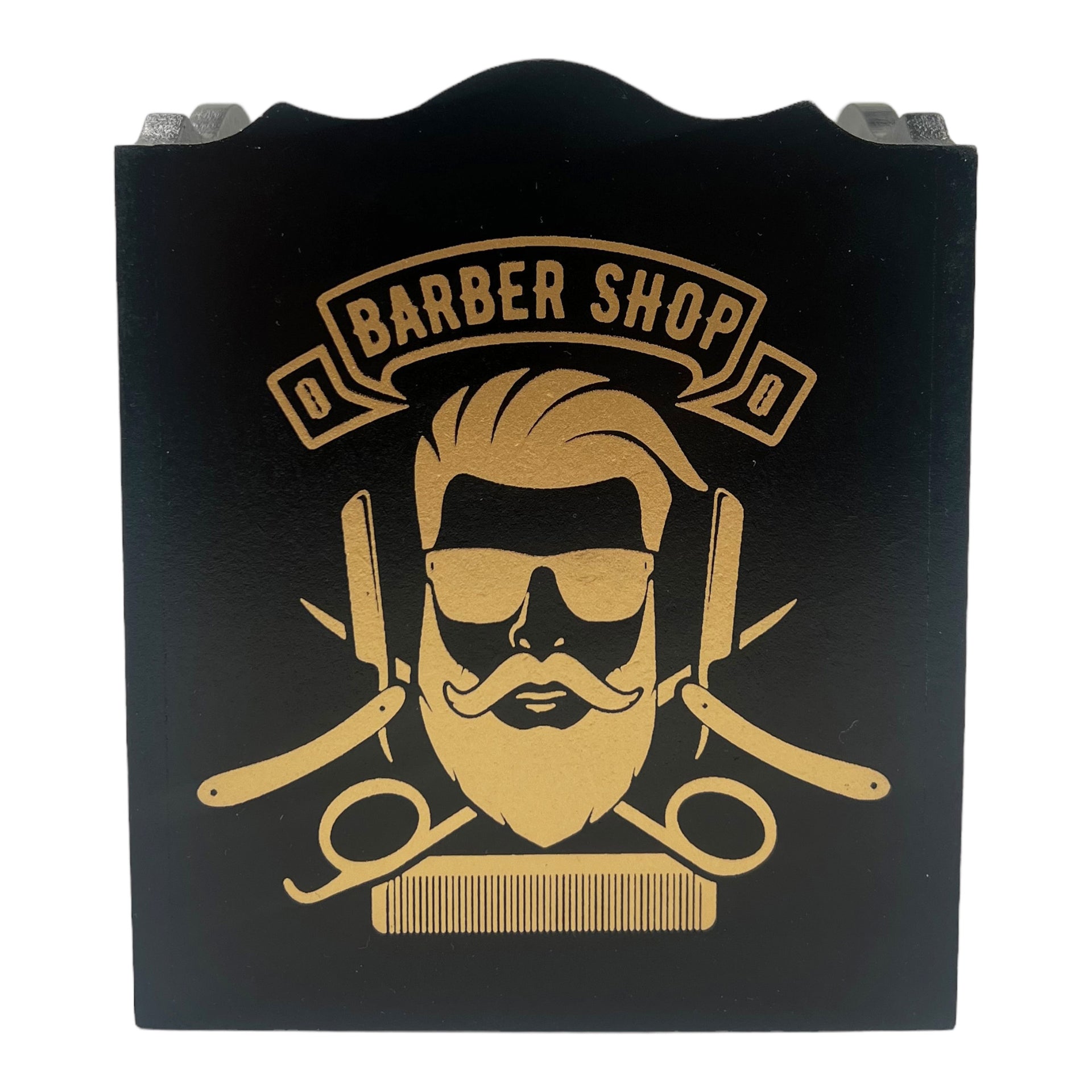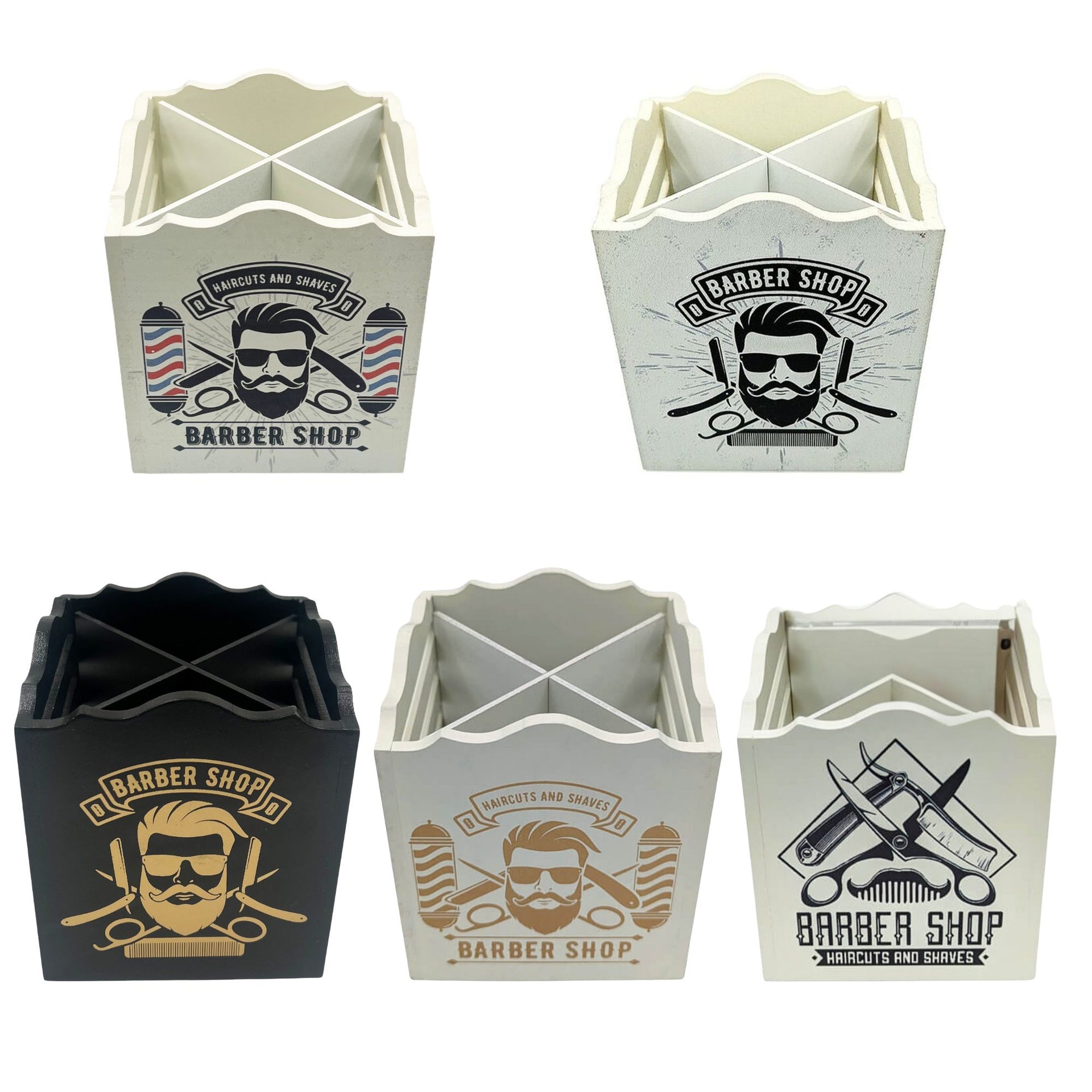 This versatile holder is available in a range of authentic barbershop designs to perfectly match your shop's unique aesthetic. Choose the classic full-colour Pole Pattern on a white distressed box for a timeless look. For a more modern edge, the Blades Pattern (Black) features a striking gold graphic on a sleek black box. Other stylish options include the white box with a black Scissor Pattern and a sophisticated cream box with a Gold Pole Pattern, ensuring a design for every taste.