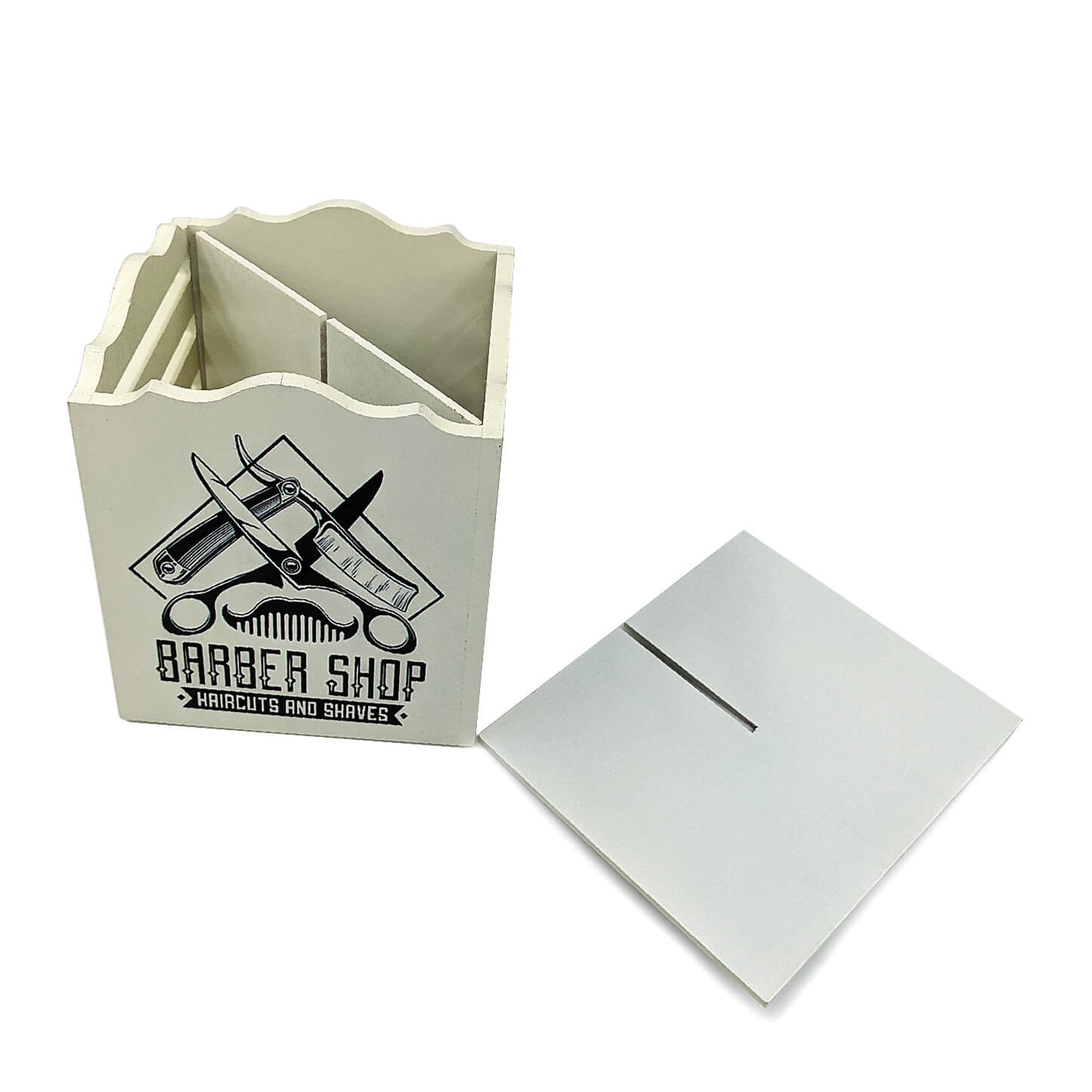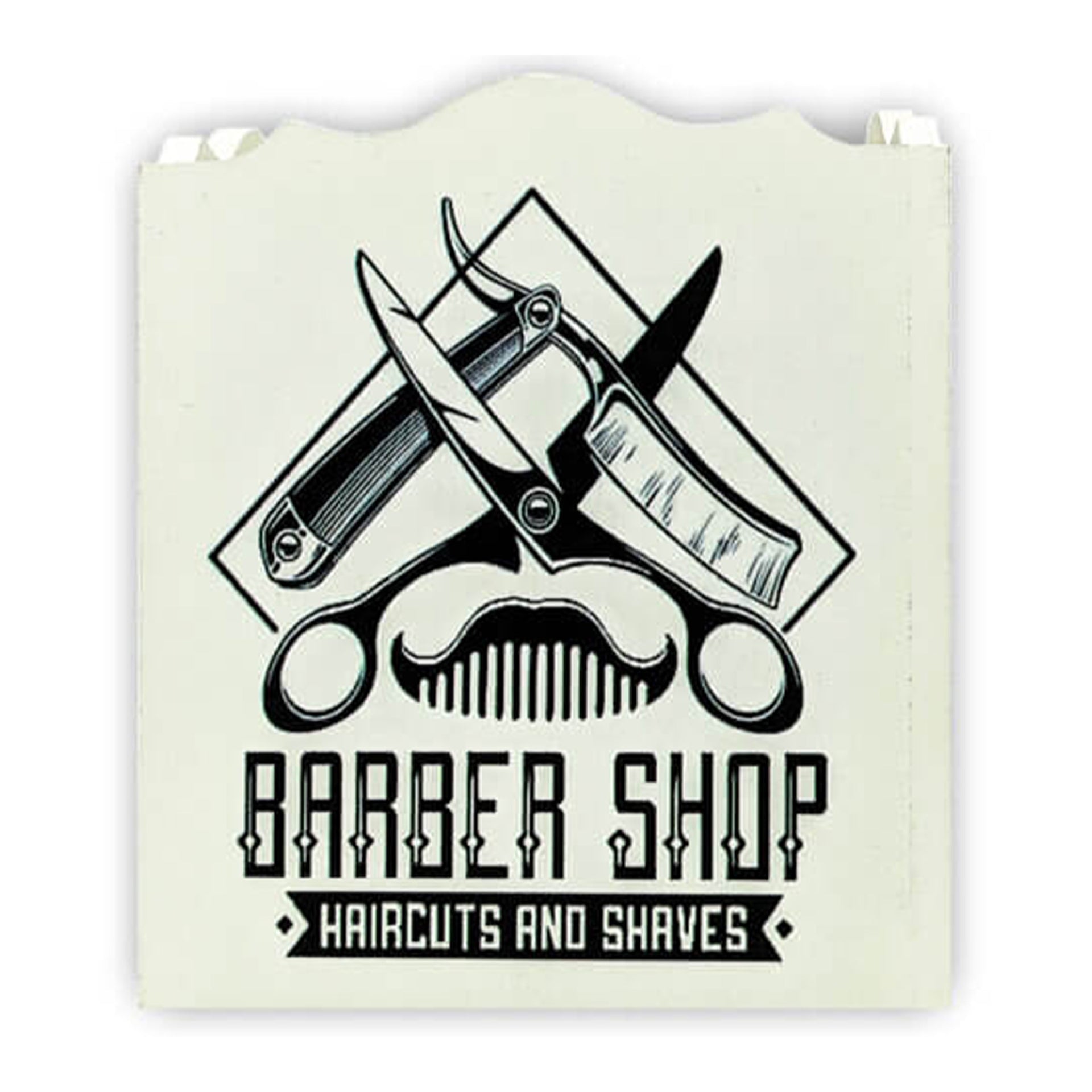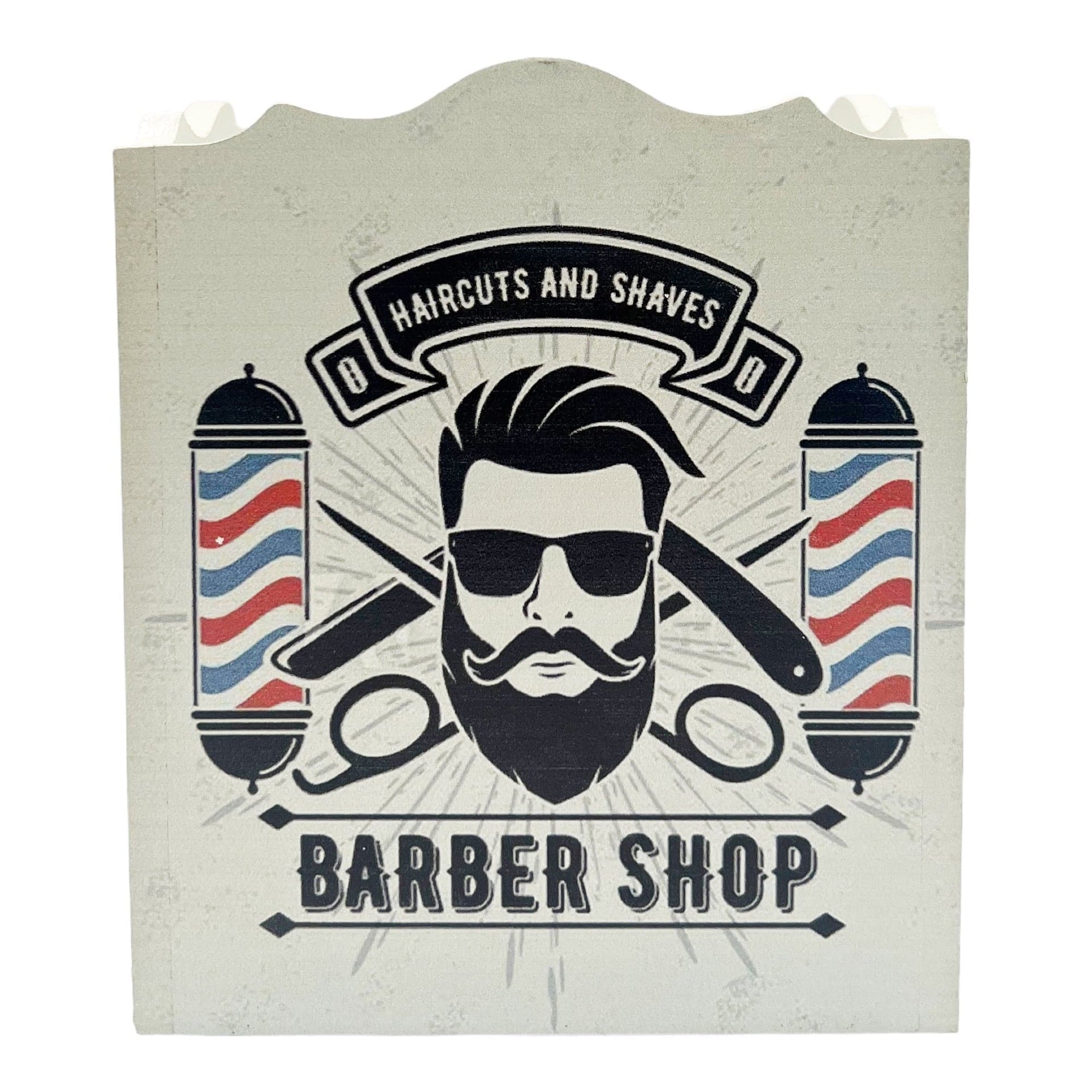 This versatile holder is available in a range of authentic barbershop designs to perfectly match your shop's unique aesthetic. Choose the classic full-colour Pole Pattern on a white distressed box for a timeless look. For a more modern edge, the Blades Pattern (Black) features a striking gold graphic on a sleek black box. Other stylish options include the white box with a black Scissor Pattern and a sophisticated cream box with a Gold Pole Pattern, ensuring a design for every taste.