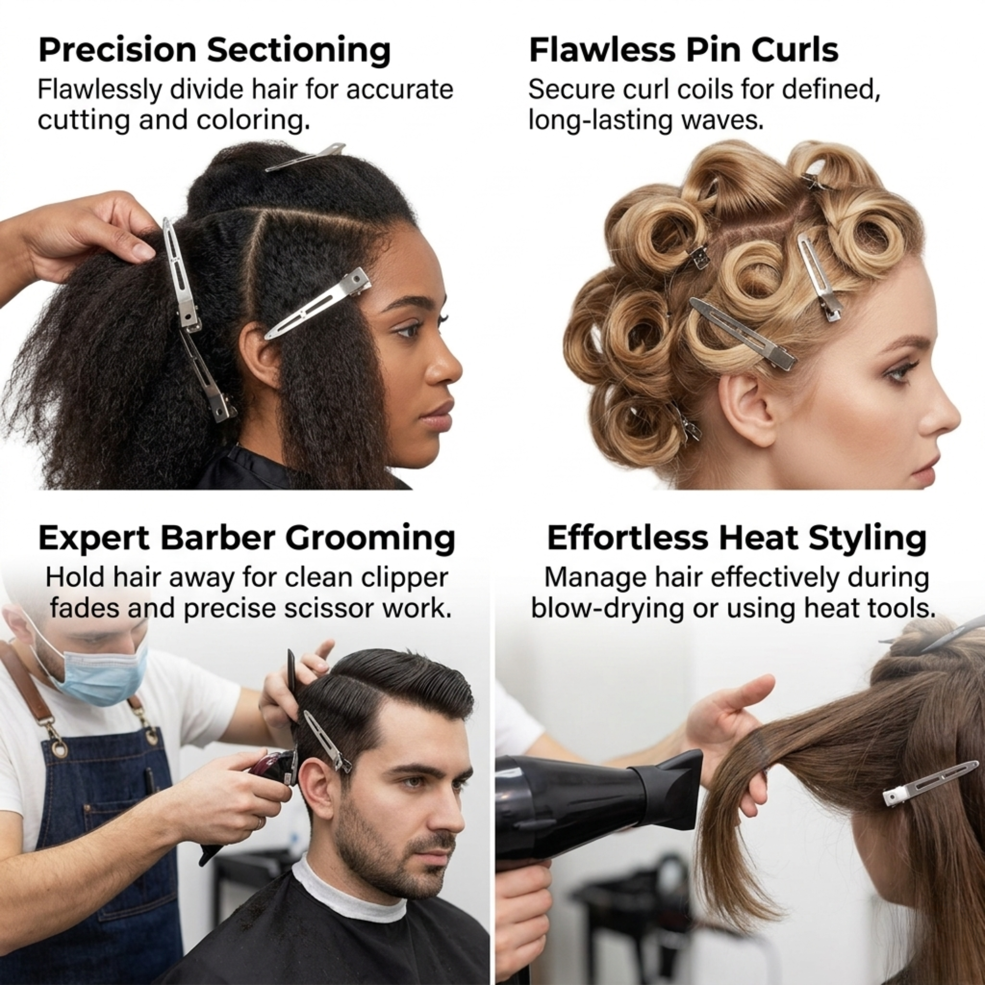 - Delivers highly streamlined sectioning, making it perfect for fast heat styling, colouring, and expert barber grooming.