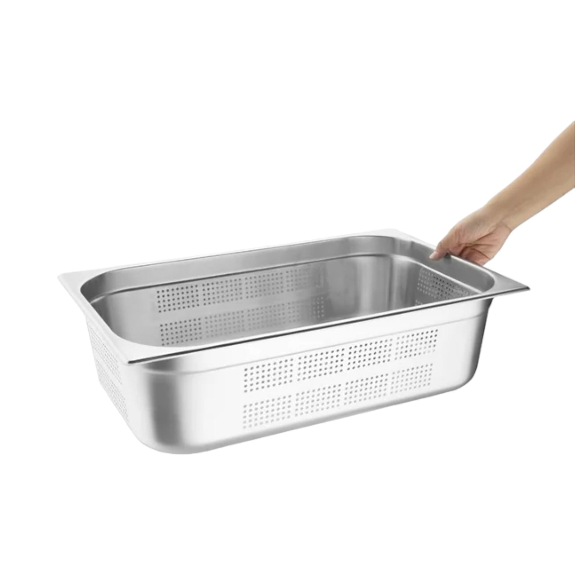 This collection offers several sizes and styles to perfectly match your professional equipment and specific needs. Choose from two solid tray sizes, including the versatile 33x27x15cm tray or the larger standard 53x32.5x15cm tray. For tasks that require efficient drainage, such as thoroughly rinsing instruments or for steaming applications, the Perforated 53x32.5x15cm tray is the ideal choice. All trays are designed to standard Gastronorm dimensions for compatibility with a wide range of professional equipment.
