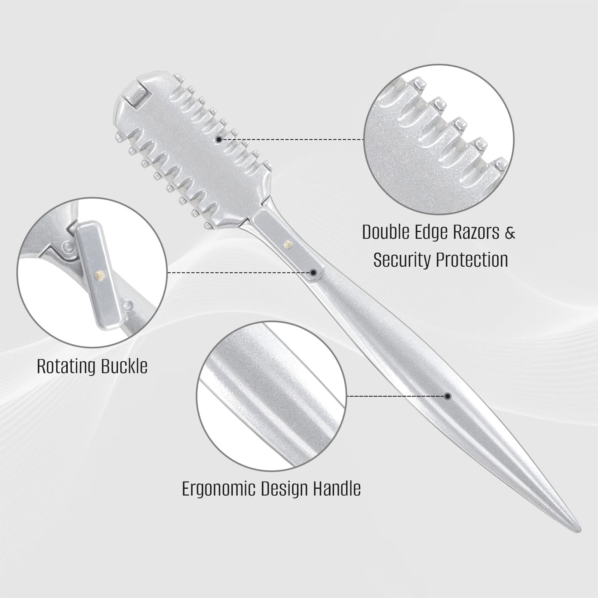 Unleash professional styling precision with the Eson Thinning Razor Series, featuring advanced double-edge blade technology for superior control and versatility. Available in both 17cm with frosted steel and 18cm with premium aluminium alloy handles, the Professional Series delivers exceptional performance for all hair texturing needs. The innovative rotating buckle mechanism ensures secure blade placement while allowing quick and safe blade changes, making it perfect for continuous professional use.