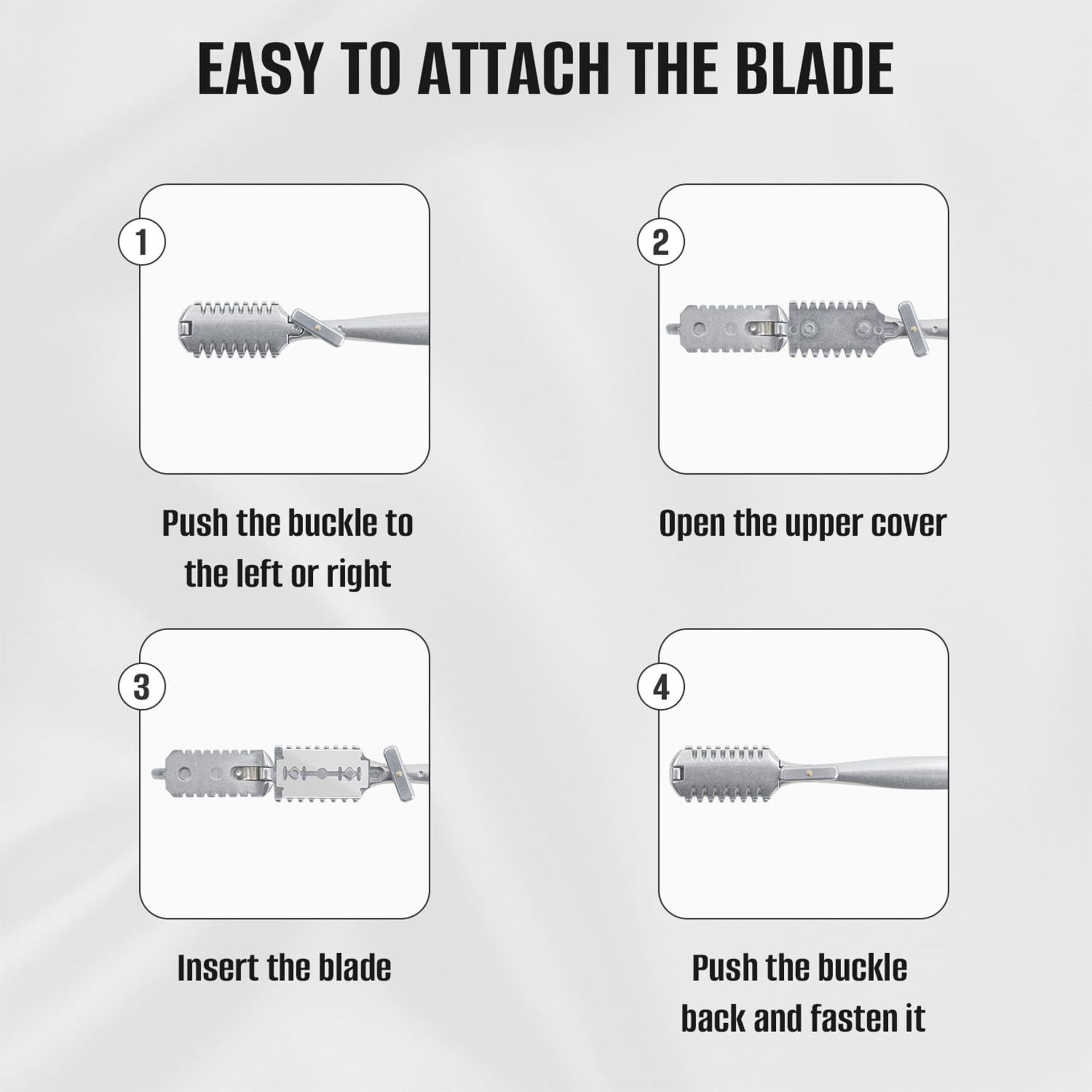 Hold at a 45-degree angle against the hair for texturing, or use parallel to the hair shaft for thinning. Replace blades regularly to maintain optimal cutting performance.