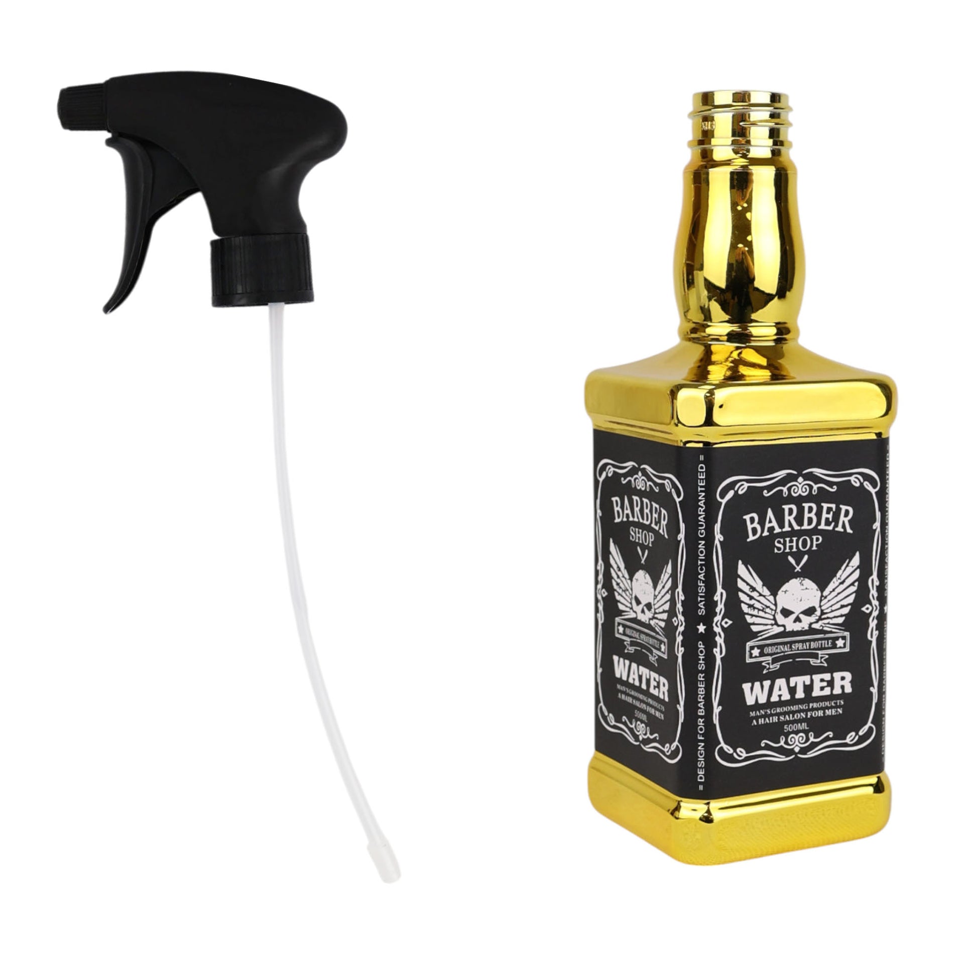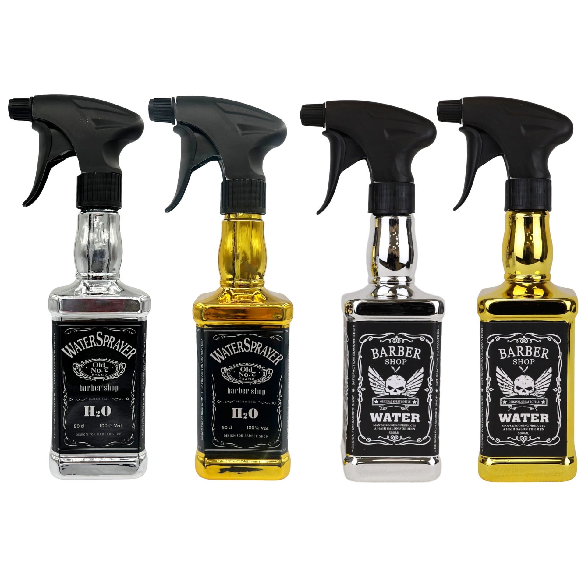 Discover professional-grade styling precision with the Eson Ultra-Fine Mist Sprayer, crafted in the distinctive silhouette of a classic whiskey bottle. Each variant in the Professional Series combines vintage aesthetics with modern functionality, featuring a sophisticated misting system that delivers perfect water distribution. The Premium Collection includes both classic barber shop skull designs and elegant H2O variants, each finished in either radiant gold or sleek silver metallic finishes.