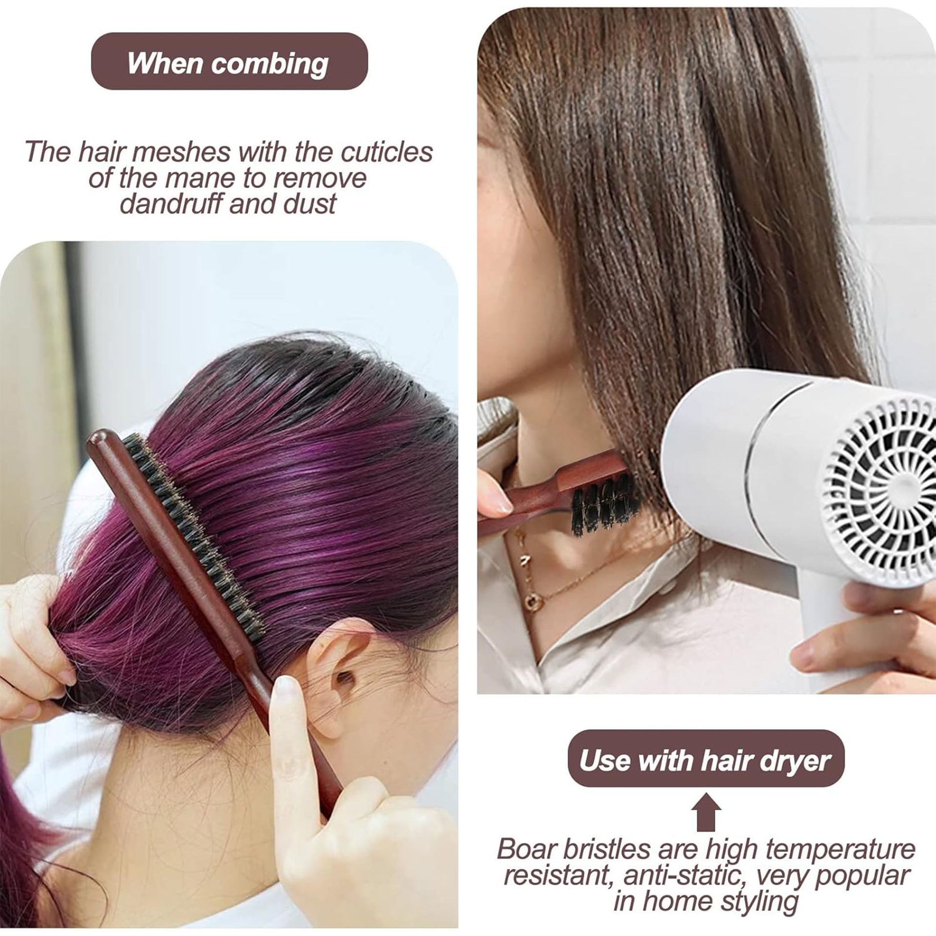 Begin brushing from the ends of the hair, working gradually upward to prevent tangles. Use gentle strokes to stimulate the scalp and distribute natural oils throughout the hair.