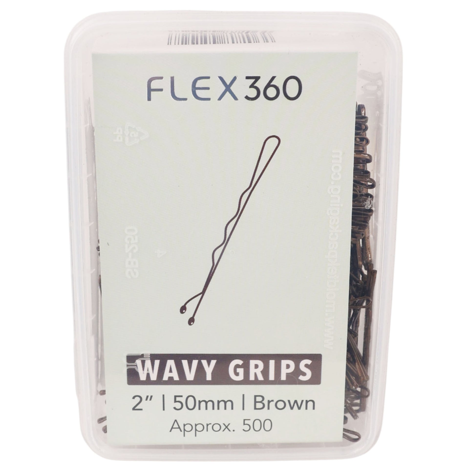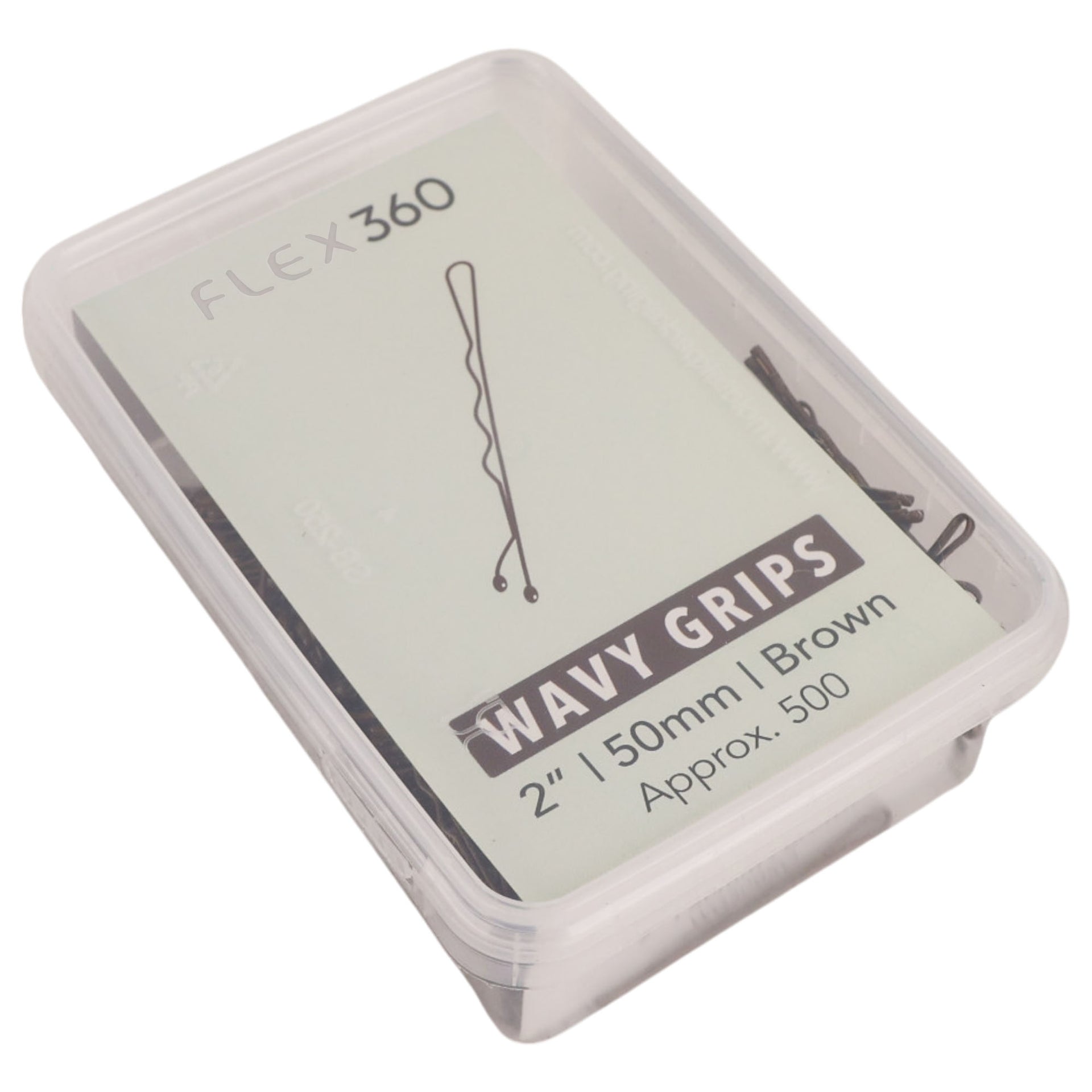 Achieve secure and discreet hairstyling with these essential **Flex360 - Wavy Grips 2” 50mm Brown 500pcs**. Designed specifically for professional use yet perfect for everyday styling at home, these grips feature a classic wavy shape that provides enhanced hold compared to straight pins. The durable construction ensures high tension and exceptional grip, keeping even intricate updos firmly in place throughout the day. Their rich brown gloss finish blends seamlessly with brunette hair shades, offering an invisible hold for a flawless look.