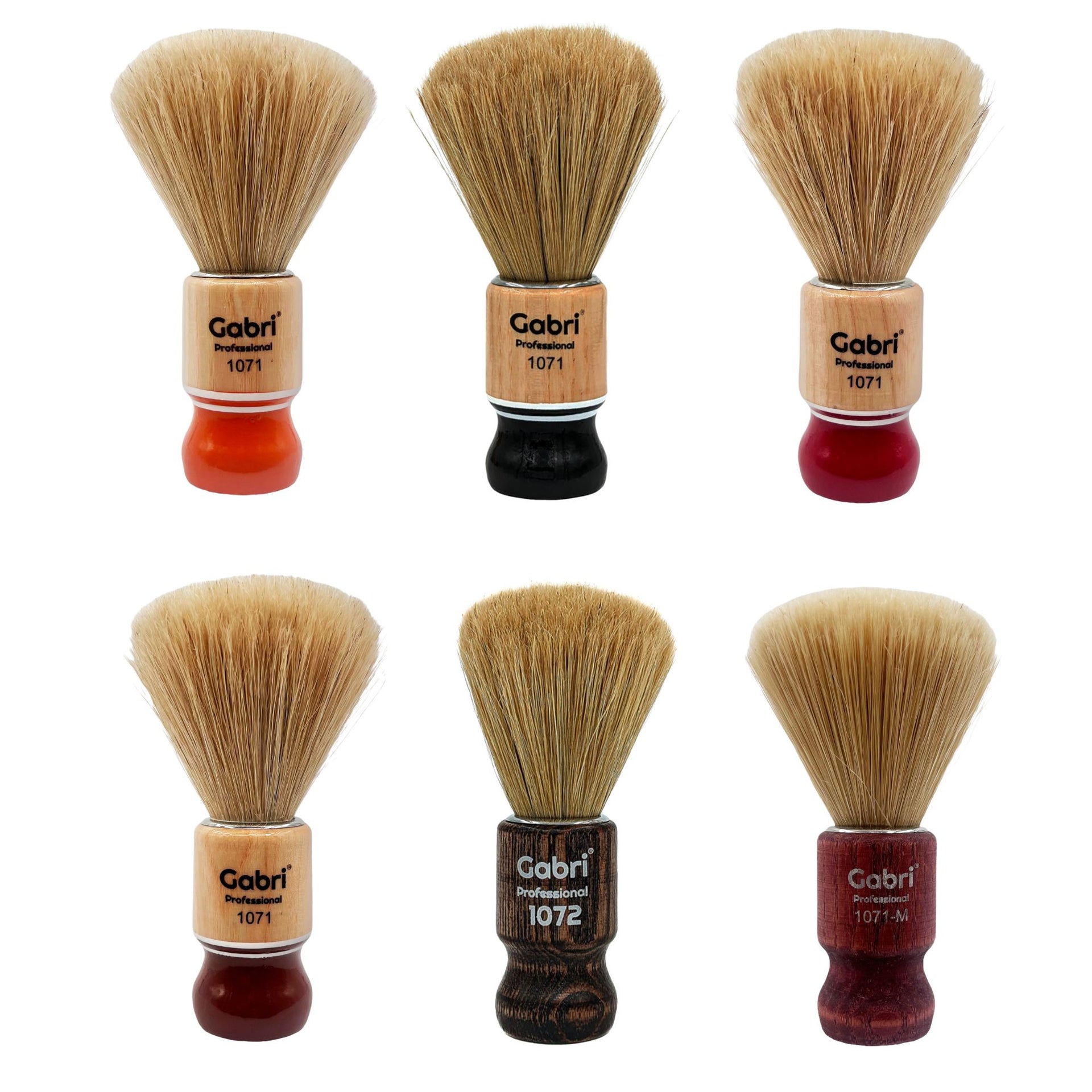 Elevate your daily shaving ritual with these premium hand-crafted brushes that combine traditional craftsmanship with distinctive contemporary styling. The Gabri Authentic Brushes are available in multiple striking variants—the versatile 1071 featuring a natural wooden handle with vibrant coloured bases (Orange, Black, Brown, or Red), the sophisticated 1072 with its distinguished dark ash wood construction, and the luxurious 1071M showcasing rich cherry wood tones. Each brush has been meticulously crafted to provide the perfect balance between aesthetics and functionality, with carefully selected natural bristles that hold an ideal amount of water to transform ordinary shaving soap into a luxuriously rich, warm lather. The substantial 13.5cm design (12.5cm for the 1072 model) offers perfect weight distribution and ergonomic grip, ensuring precise control during application whilst adding a touch of traditional sophistication to your grooming station.