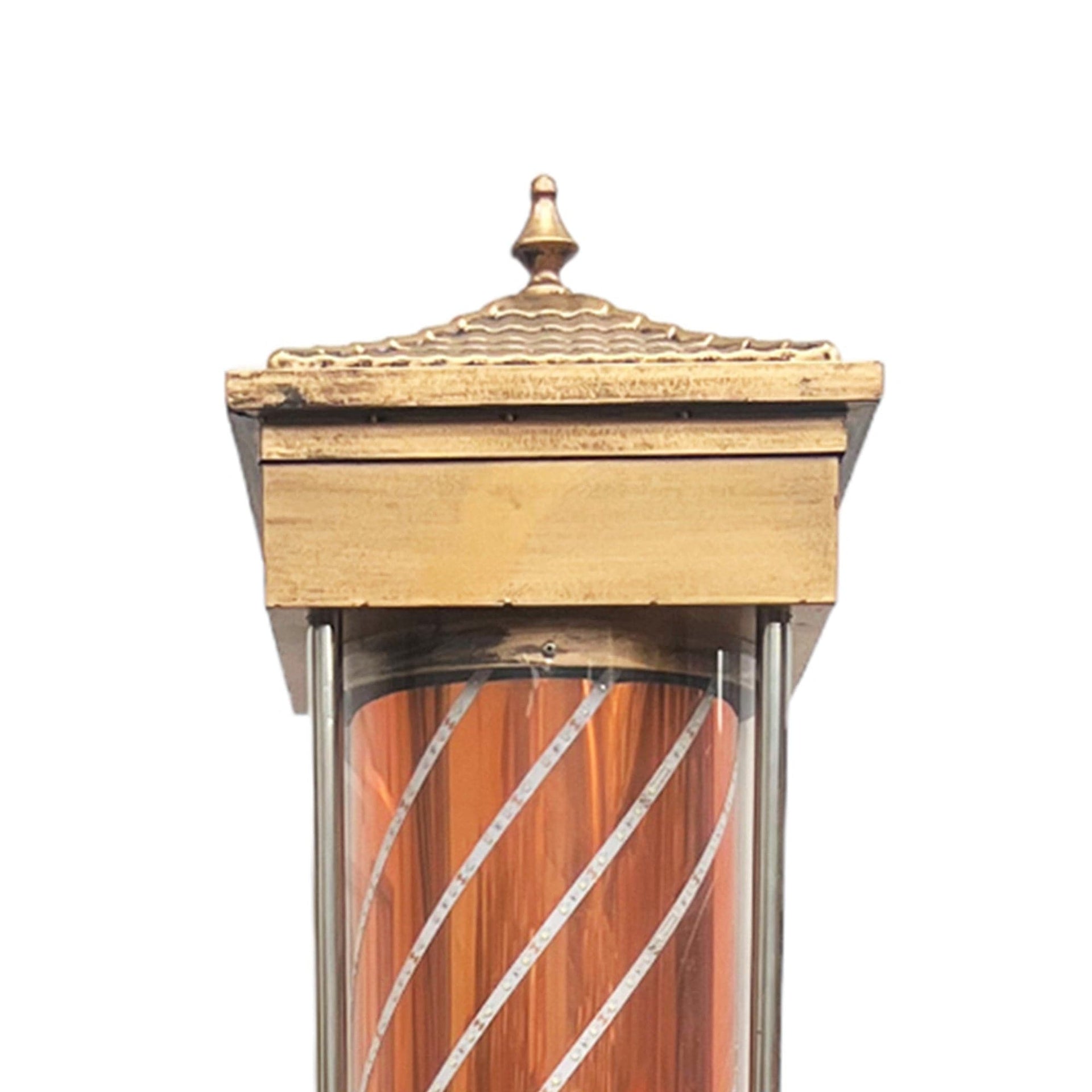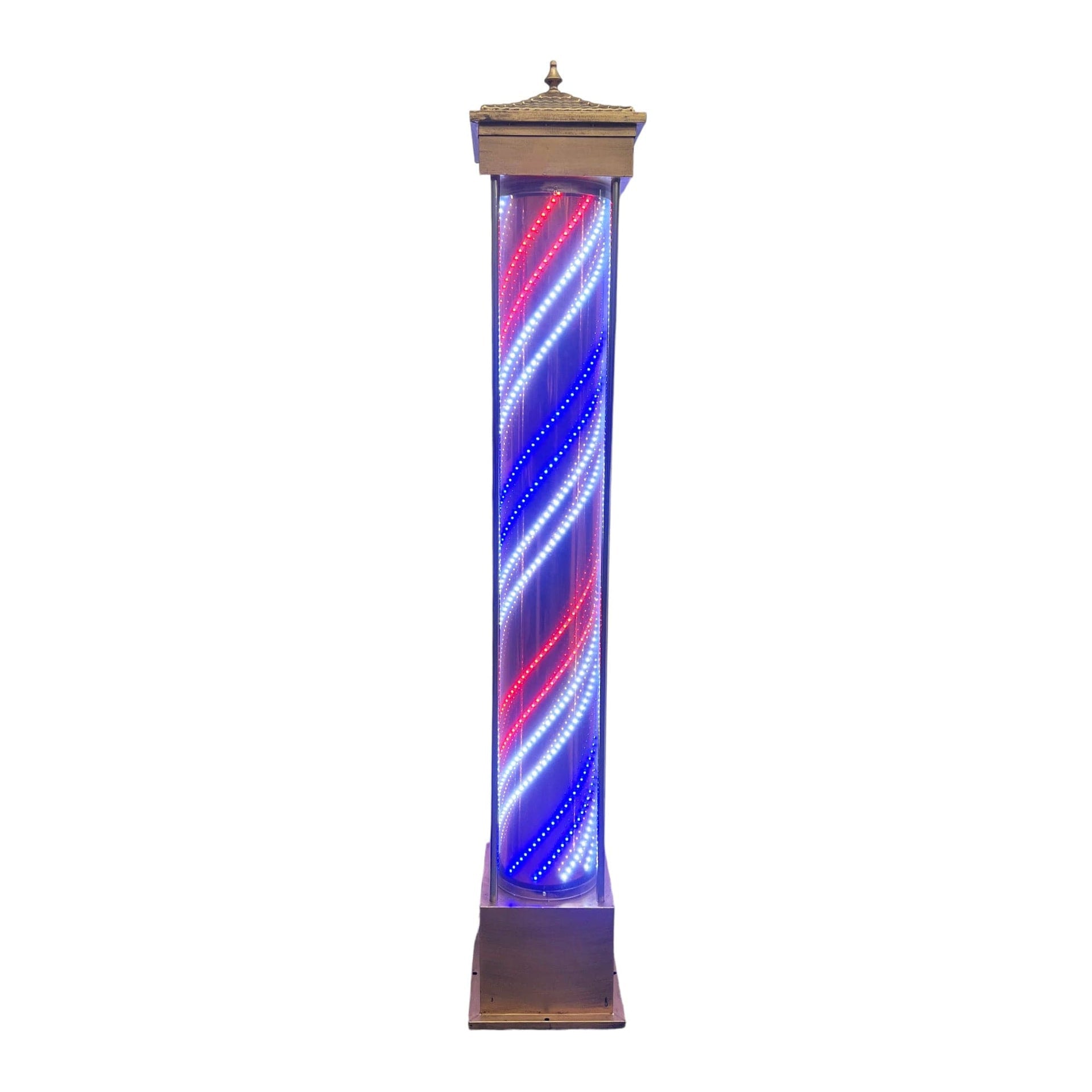 Elevate your establishment's presence with the Gabri Lantern Style Classic Barber Pole Floor Digital LED Light, a magnificent 2.1-metre beacon of professional excellence. This innovative floor-standing design masterfully combines traditional barbering symbolism with contemporary LED technology, creating an unmistakable landmark that commands attention. The striking bronze and copper rotating stripes are brilliantly illuminated through state-of-the-art LED lighting, whilst the classic lantern-style design pays homage to time-honoured barbering traditions. The impressive stature and sophisticated finish ensure your business stands out both day and night, attracting clientele with its distinguished presence.