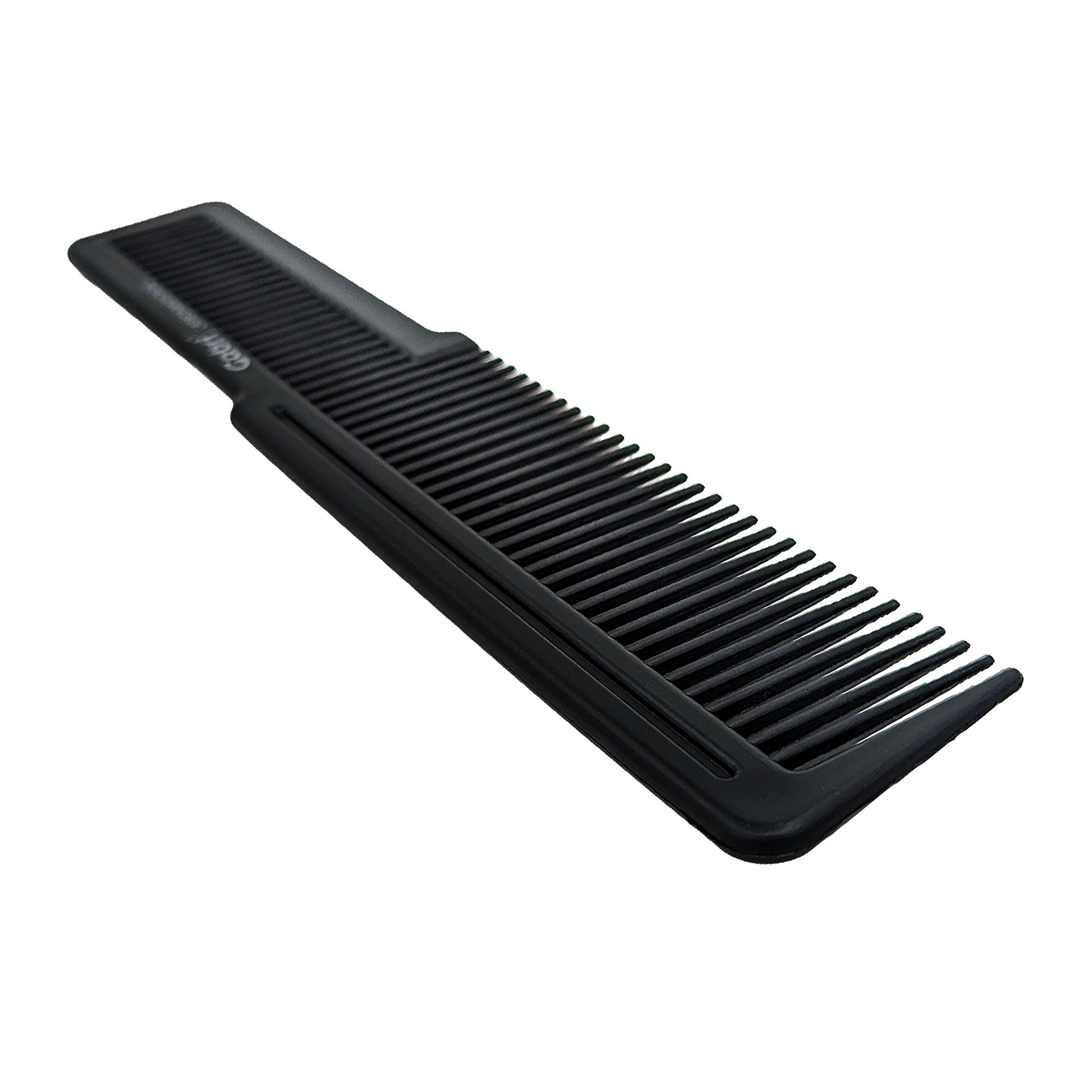 For flat tops and precision cuts, use the comb to section and hold hair at the desired length whilst cutting with clippers or scissors, maintaining consistent elevation and tension throughout. For general styling, use to detangle, section, and distribute styling products evenly through the hair; the flat design also makes these combs perfect for creating clean partings and precise sectioning during complex styling procedures.