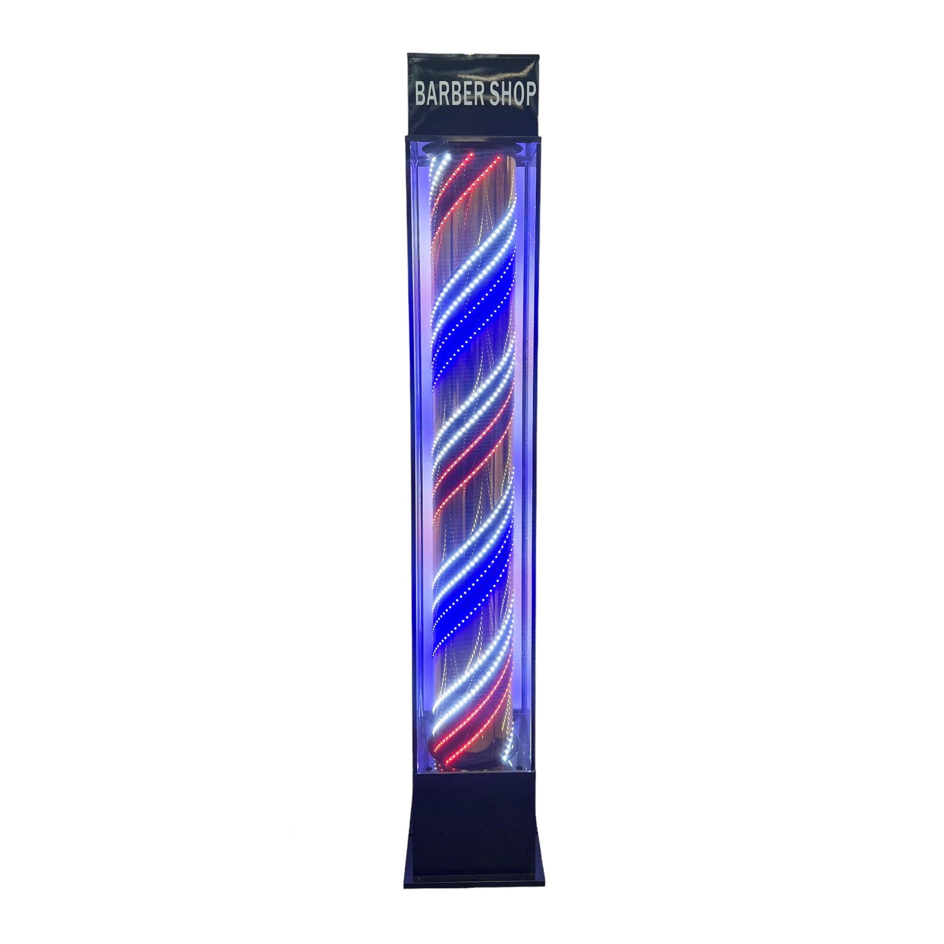 Perfect for professional barbershops and hair salons seeking maximum visibility with a premium-quality display. Particularly effective for establishments in high-traffic areas or where building regulations restrict wall-mounted signs.